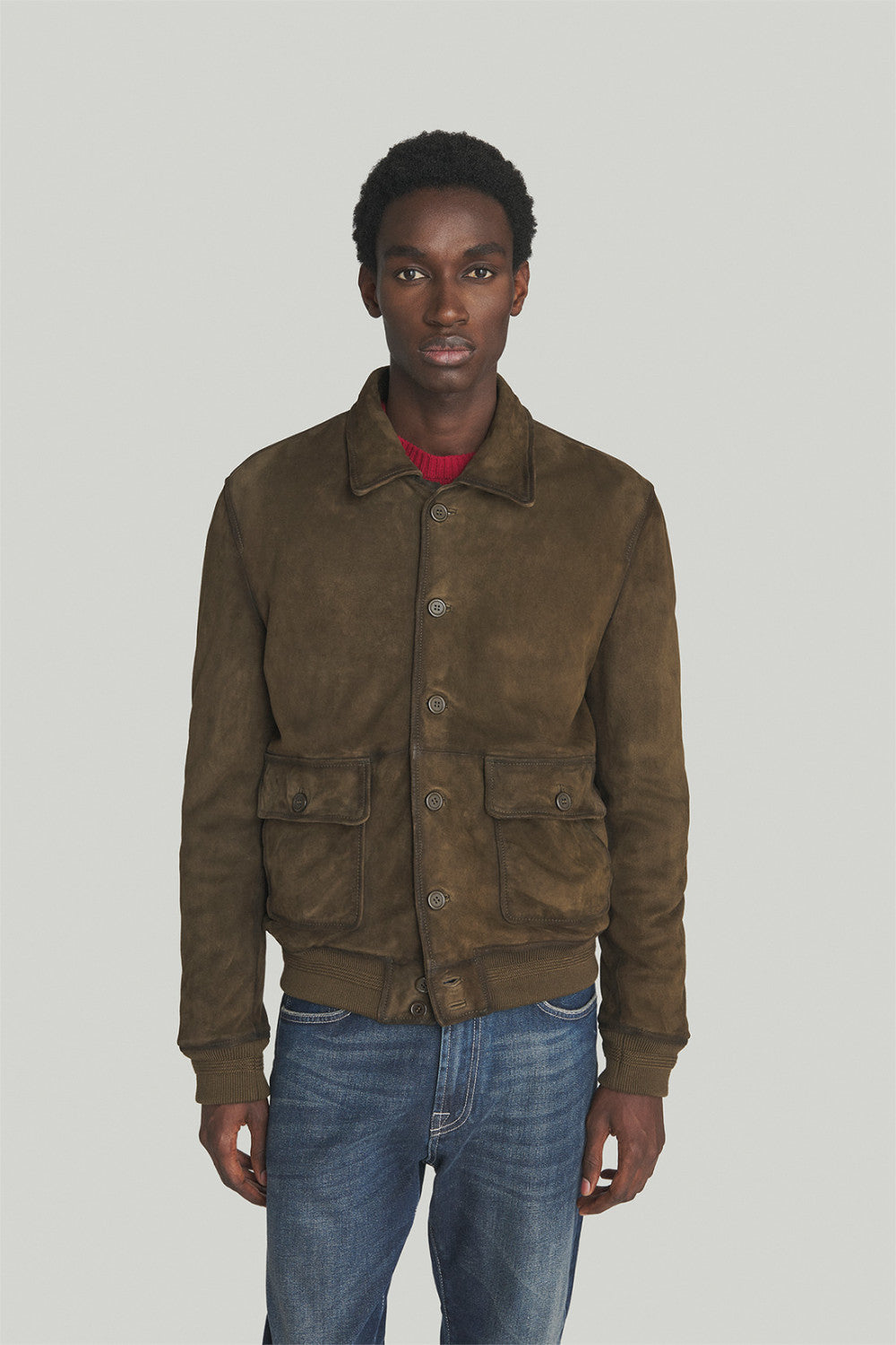 FW25 BOB COMPANY GIUBBOTTO IN PELLE SCAMOSCIATA CON DETTAGLI IN MAGLIA - MORO