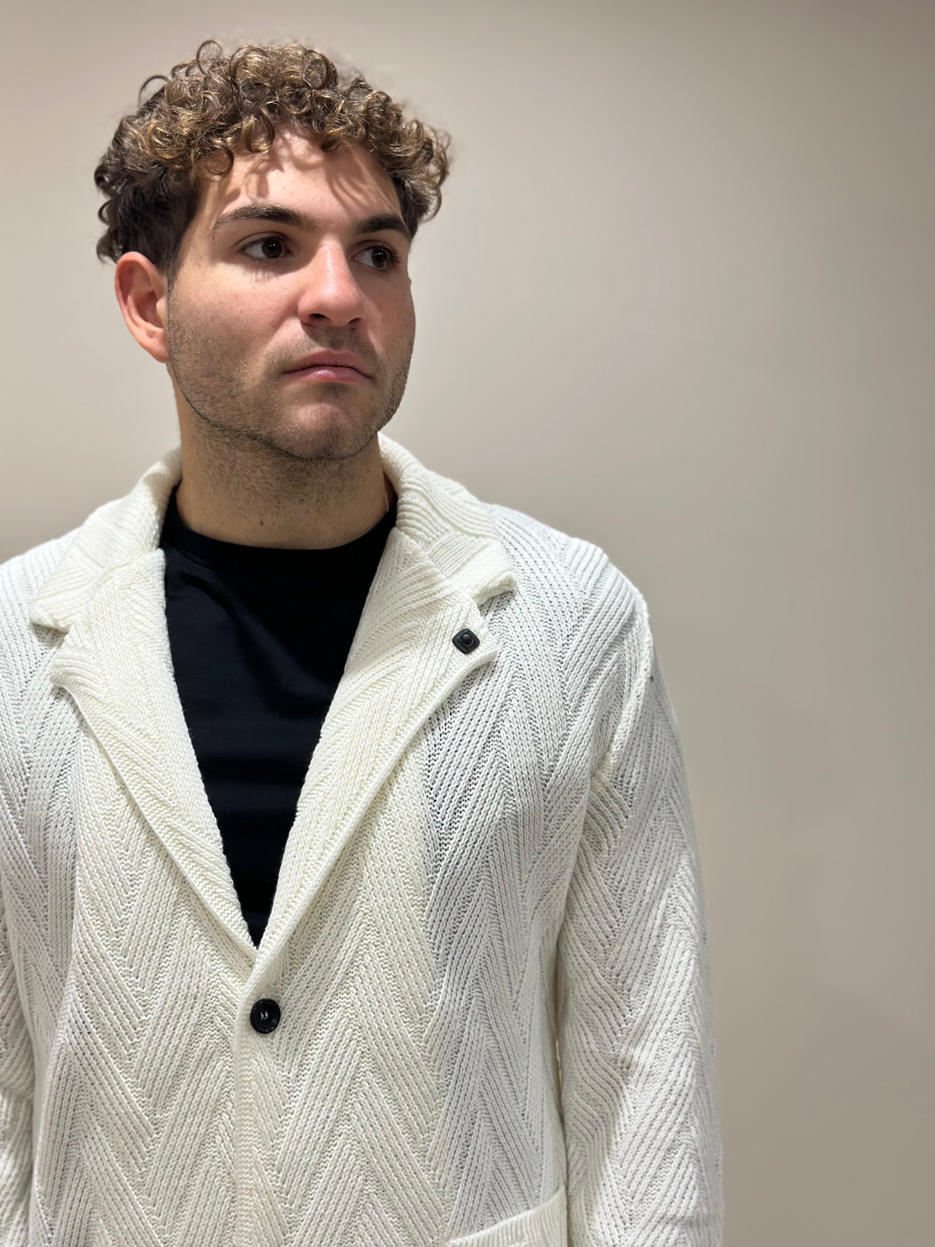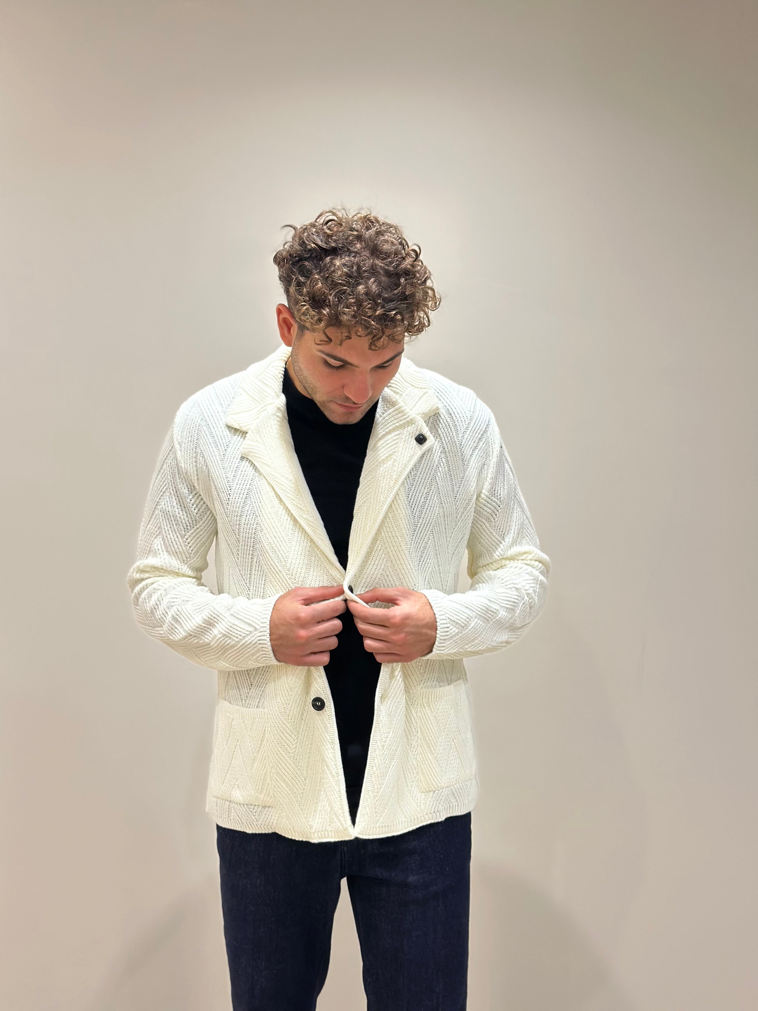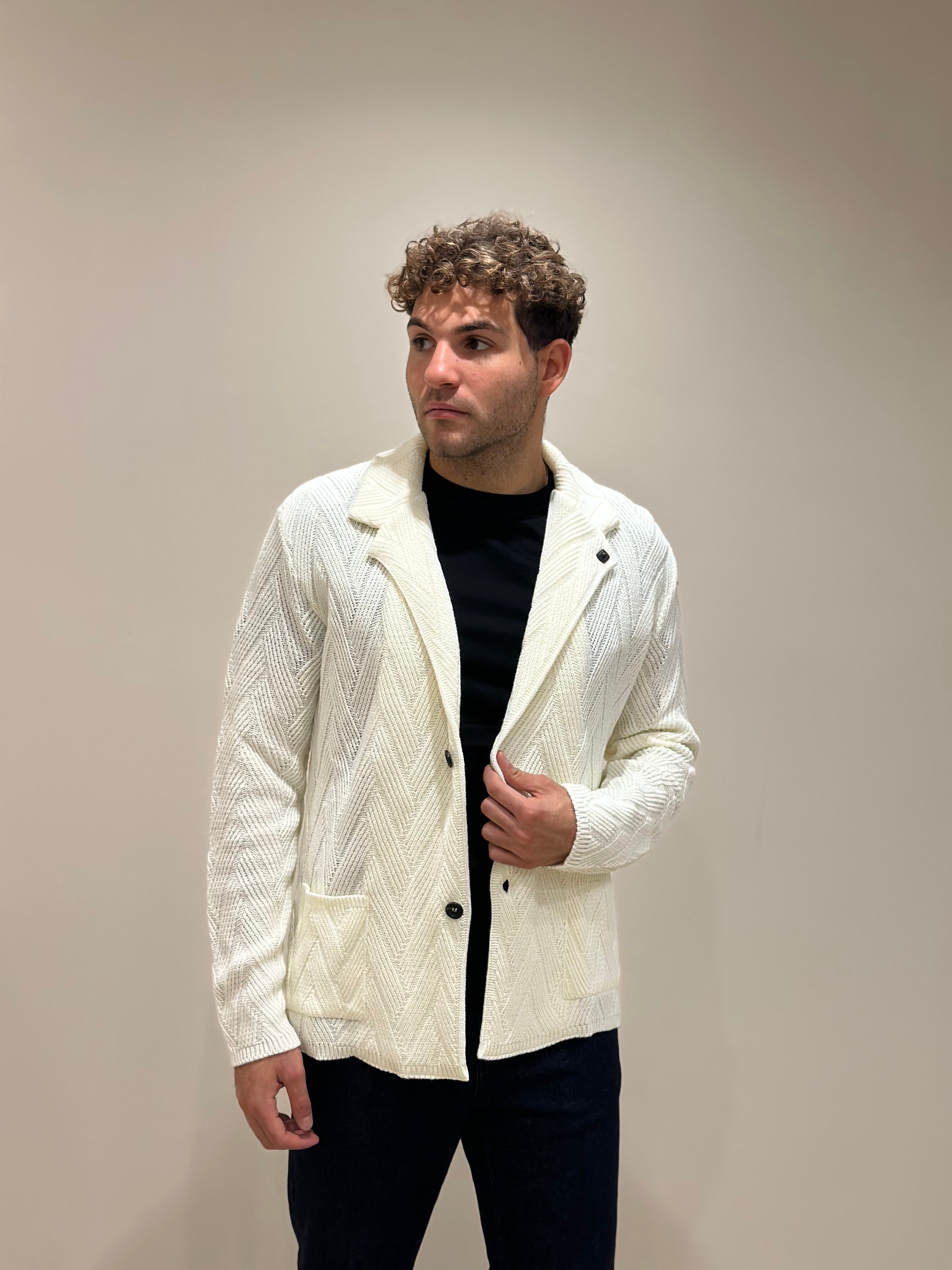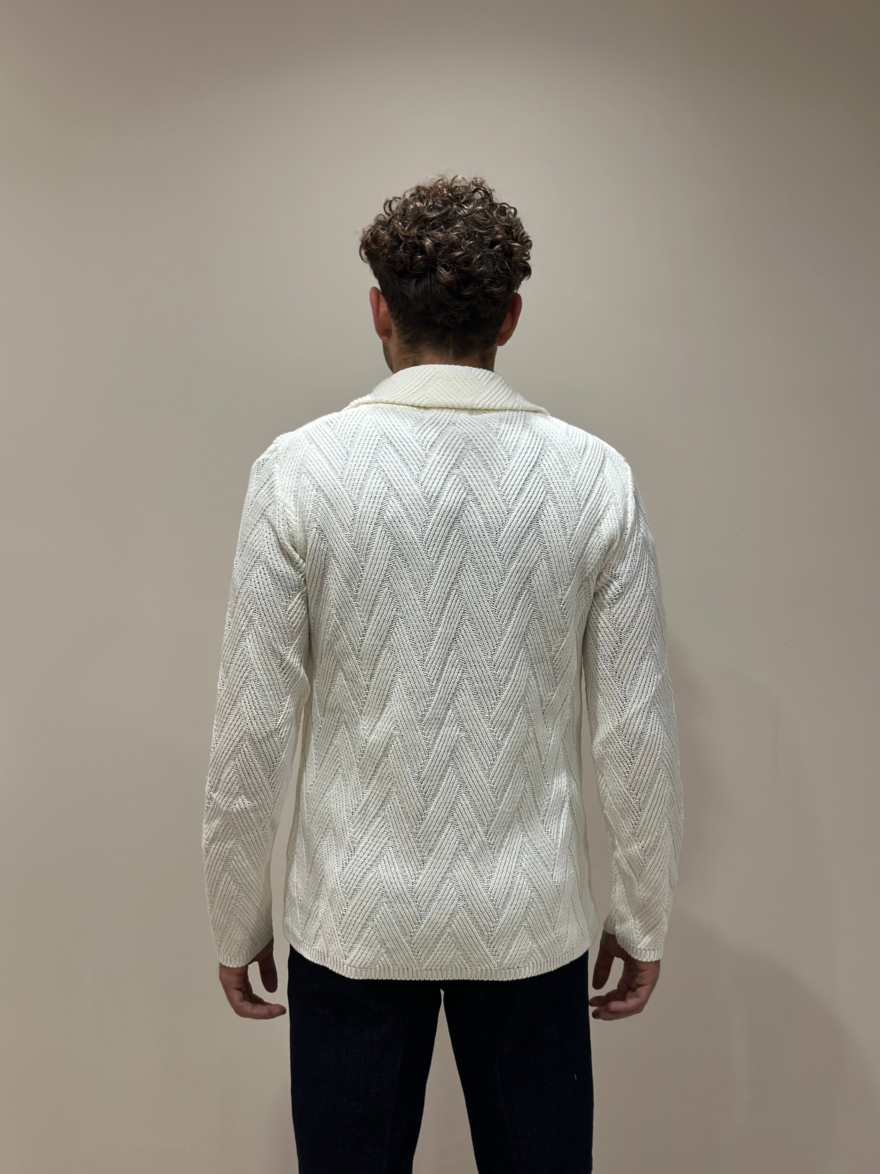CARDIGAN GIACCA IN MAGLIA TRAMATA DI MISTO LANA OFF WHITE - OUTFIT ITALY