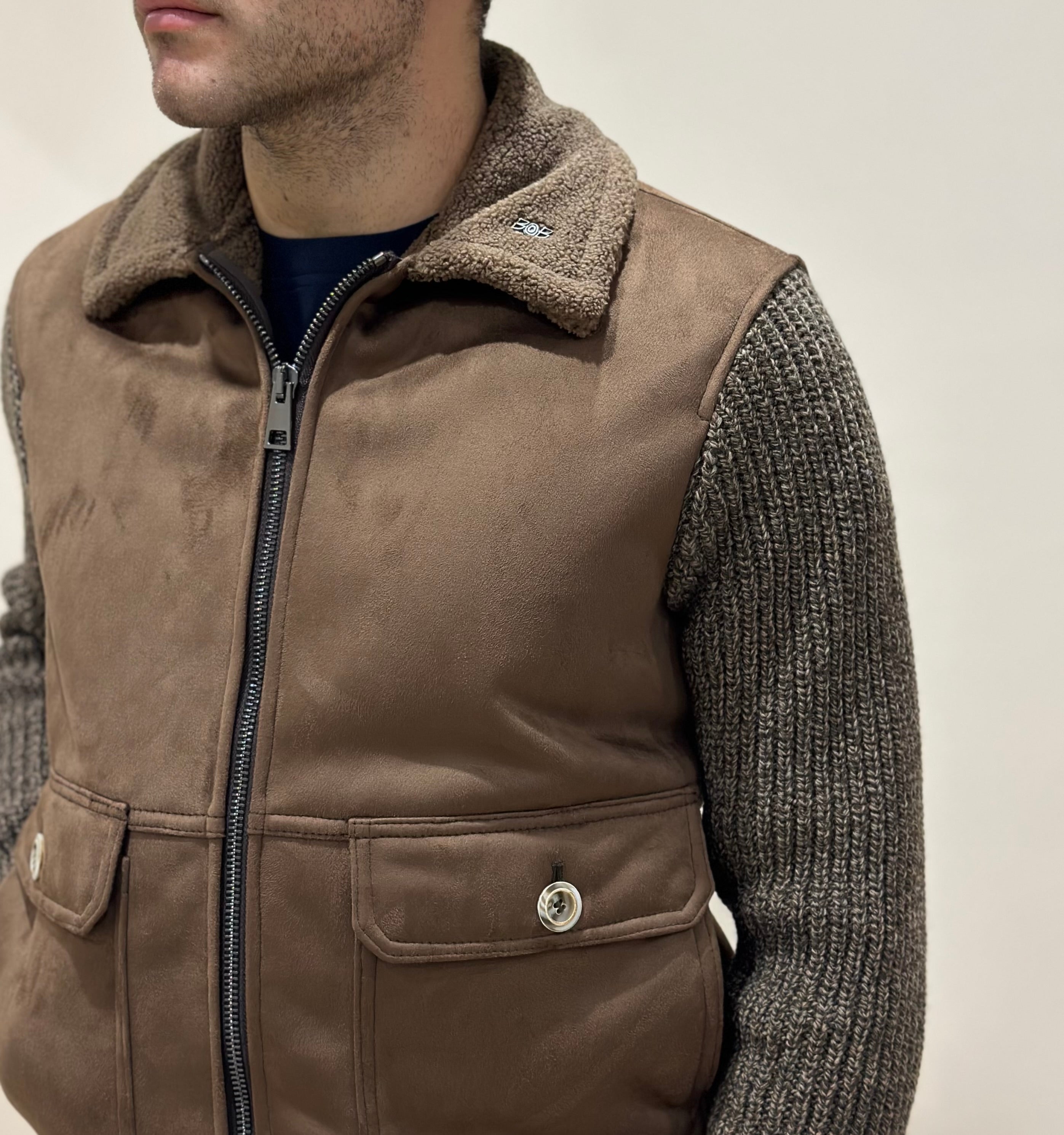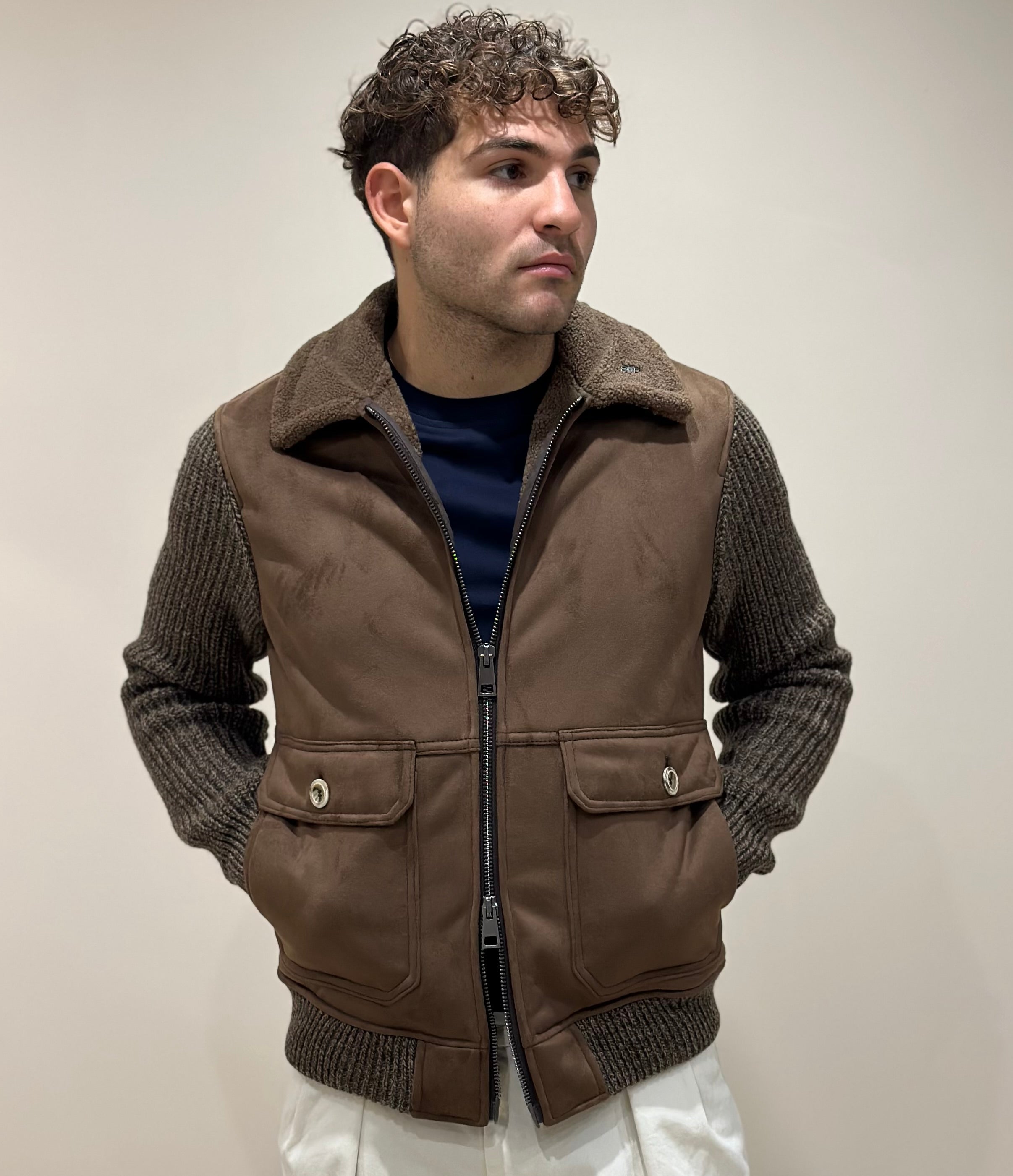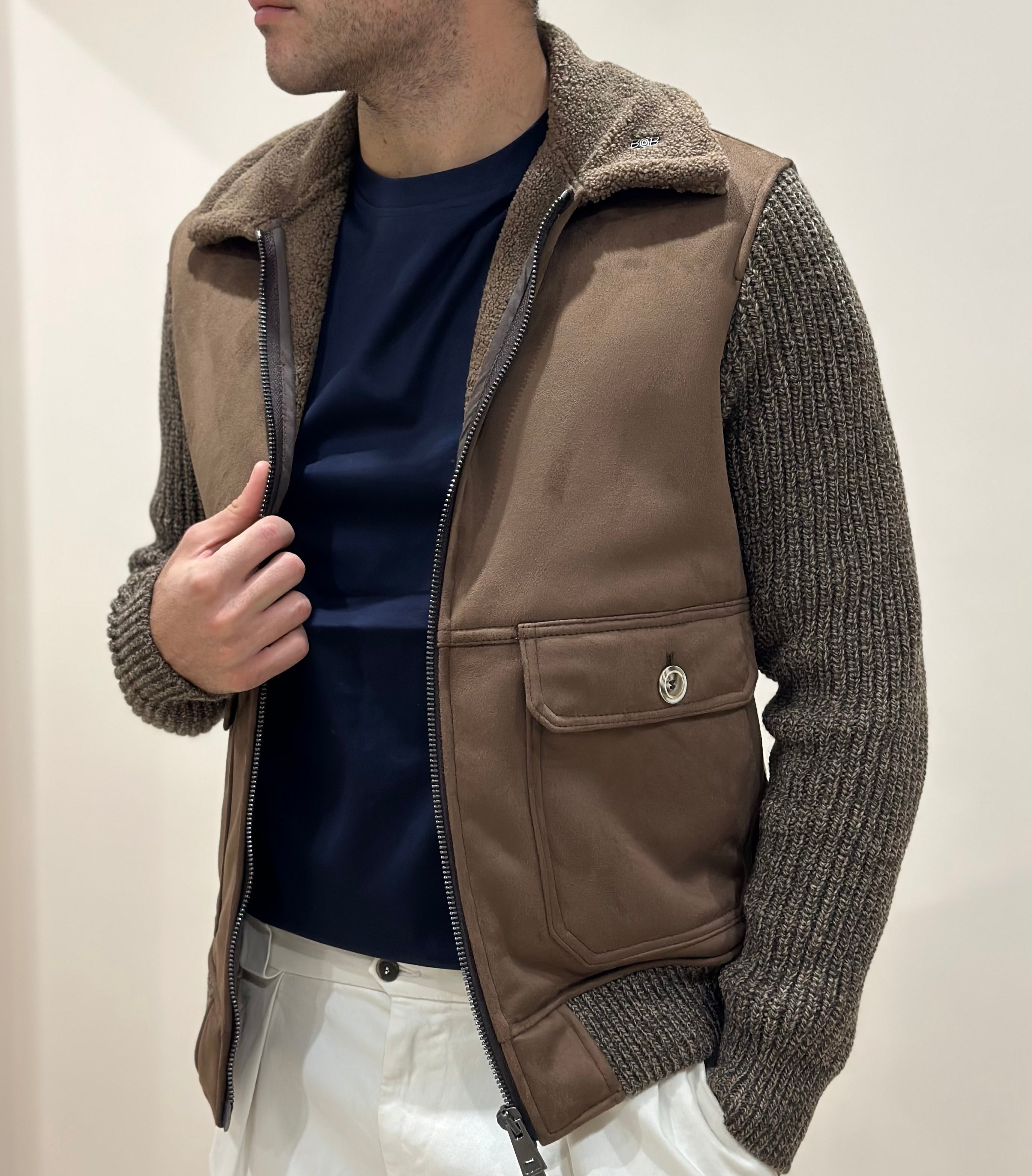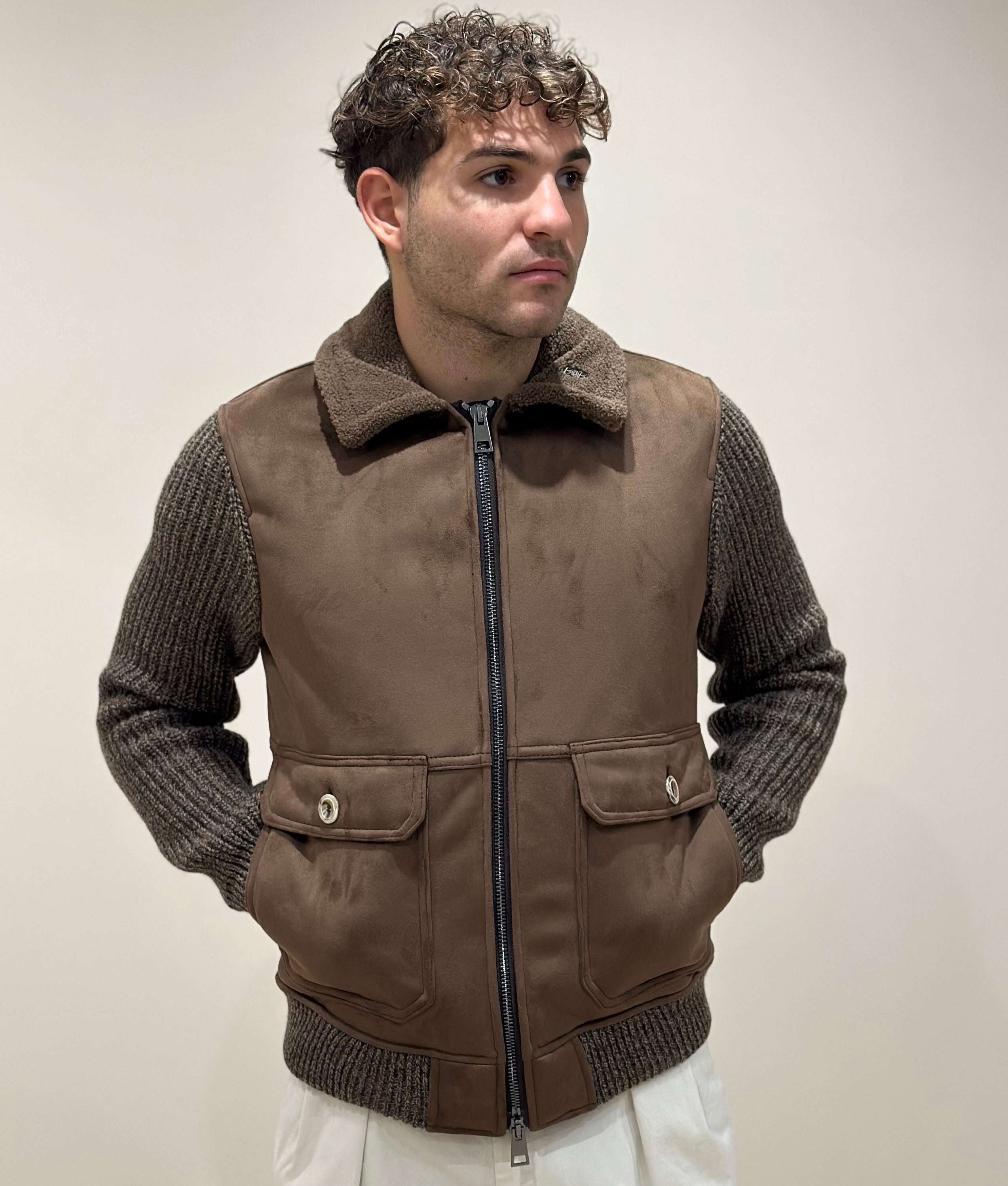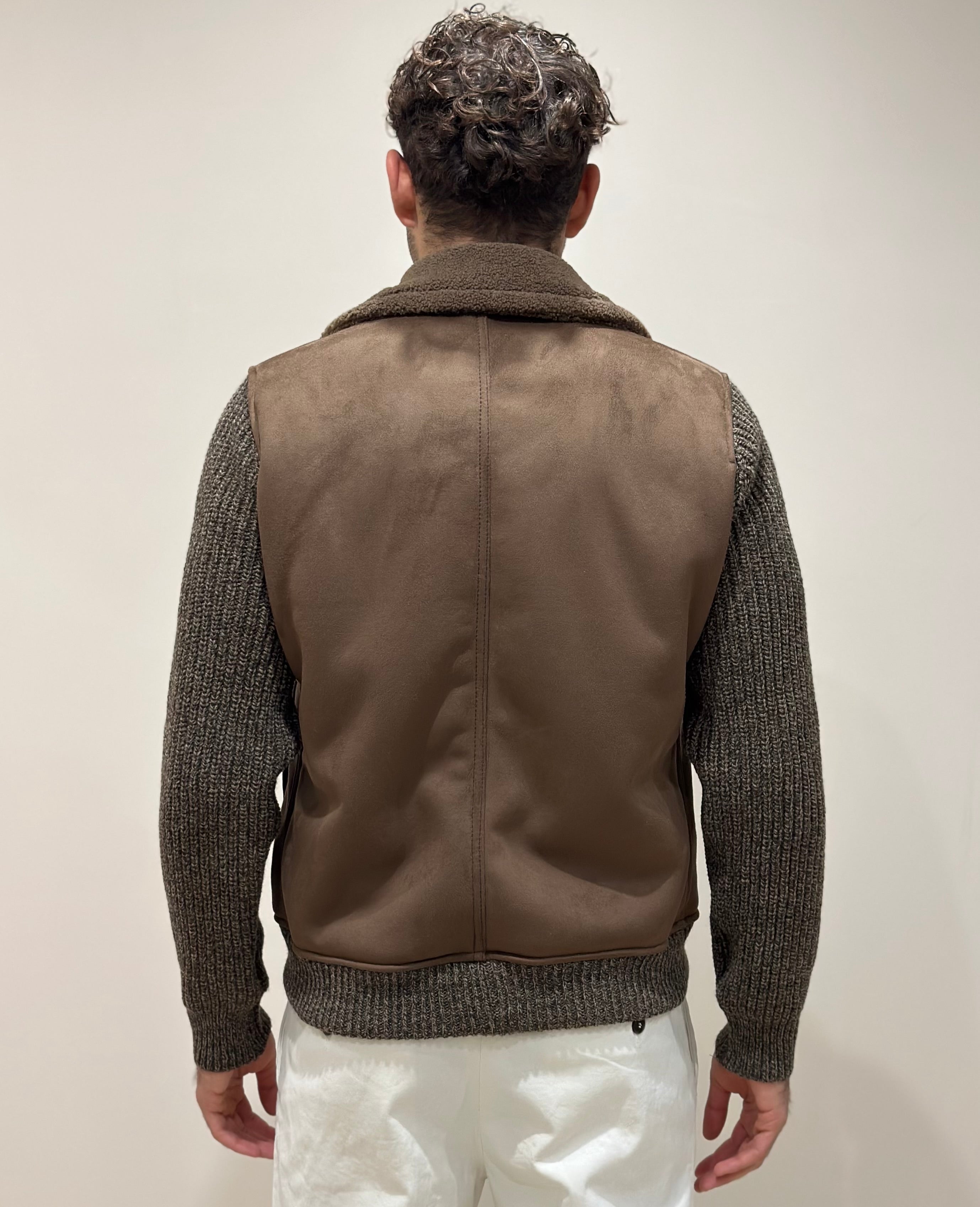 FW25 BOB COMPANY GIUBBOTTO IN PELLE SCAMOSCIATA CON DETTAGLI IN MAGLIA - MORO