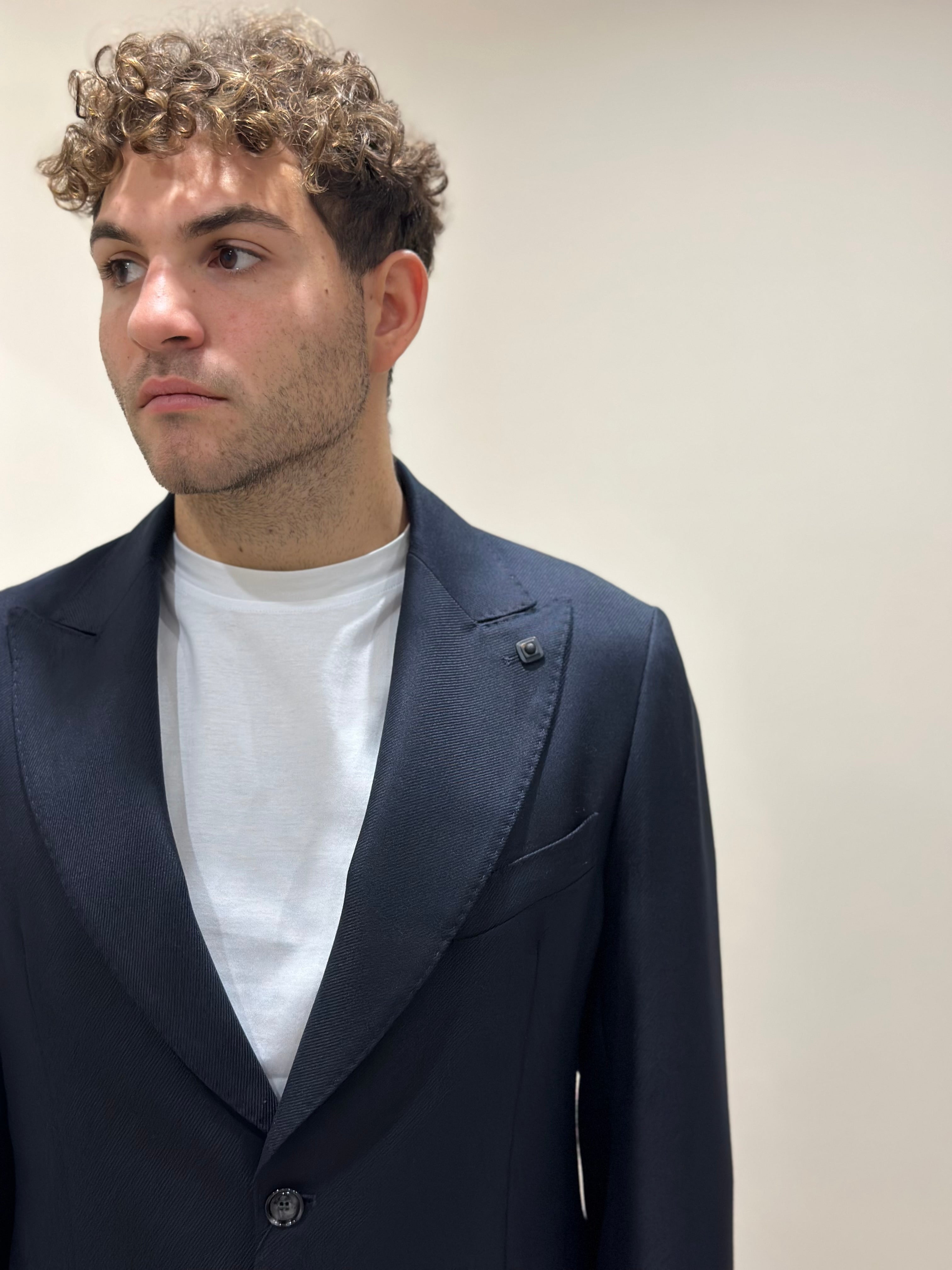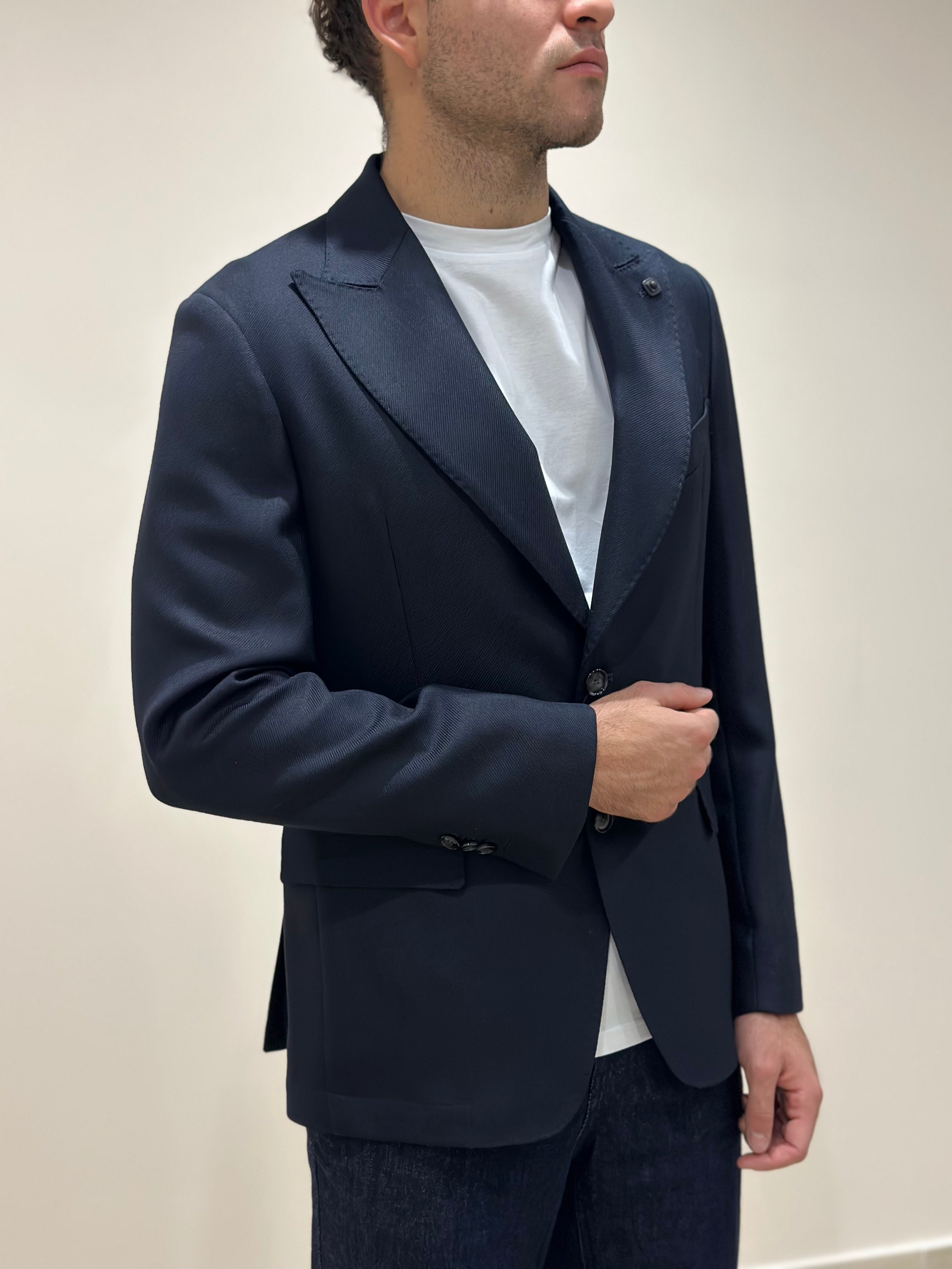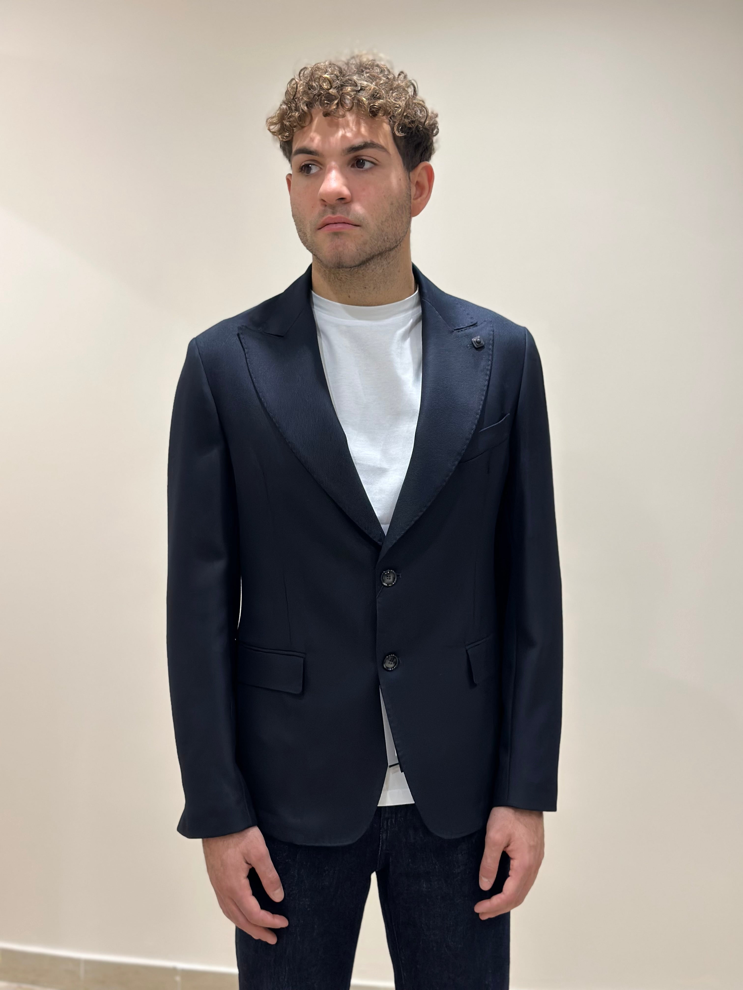 GIACCA MONOPETTO CON REVER A LANCIA IN MISTO LANA BLU NAVY - OUTFIT ITALY