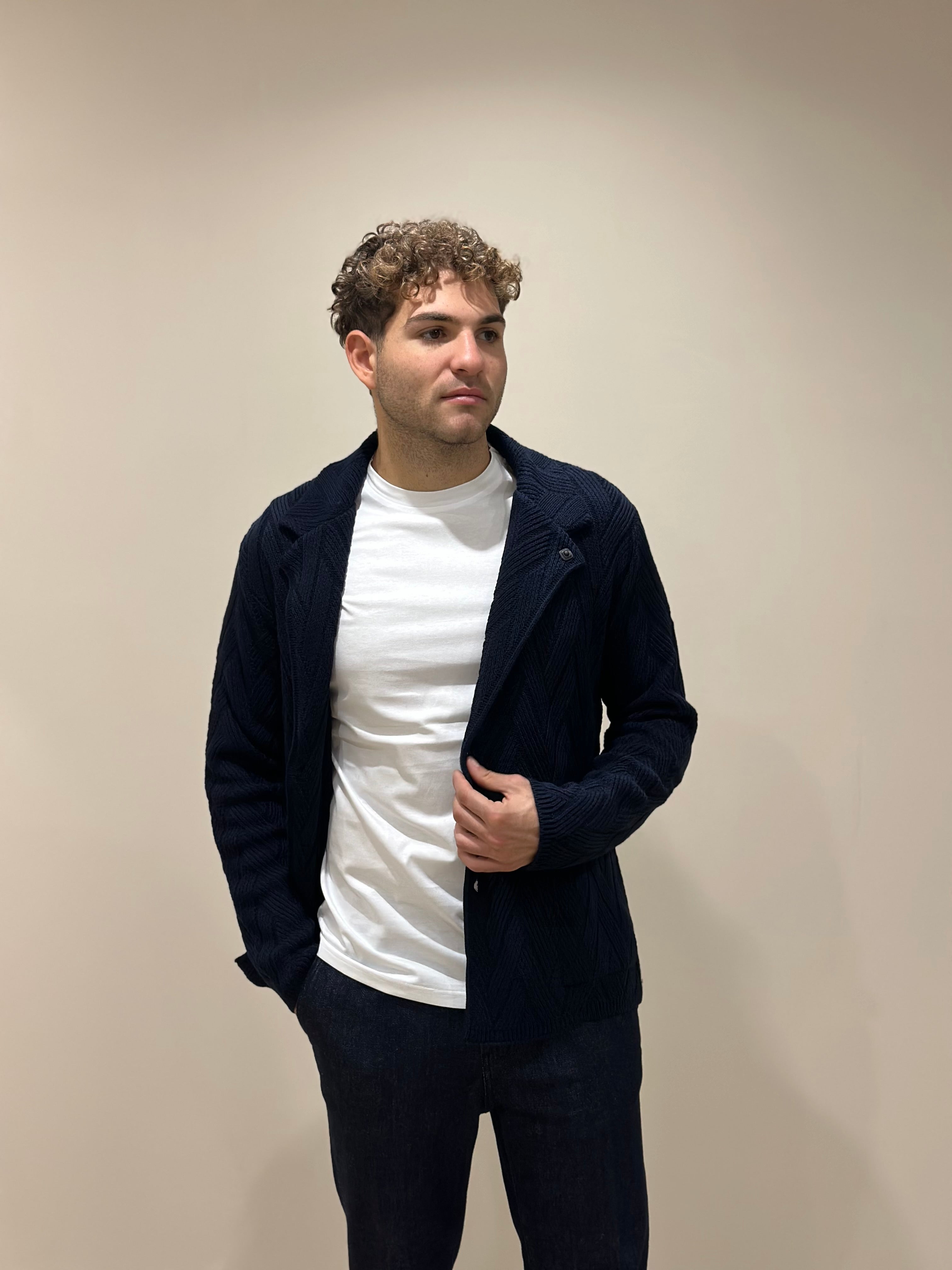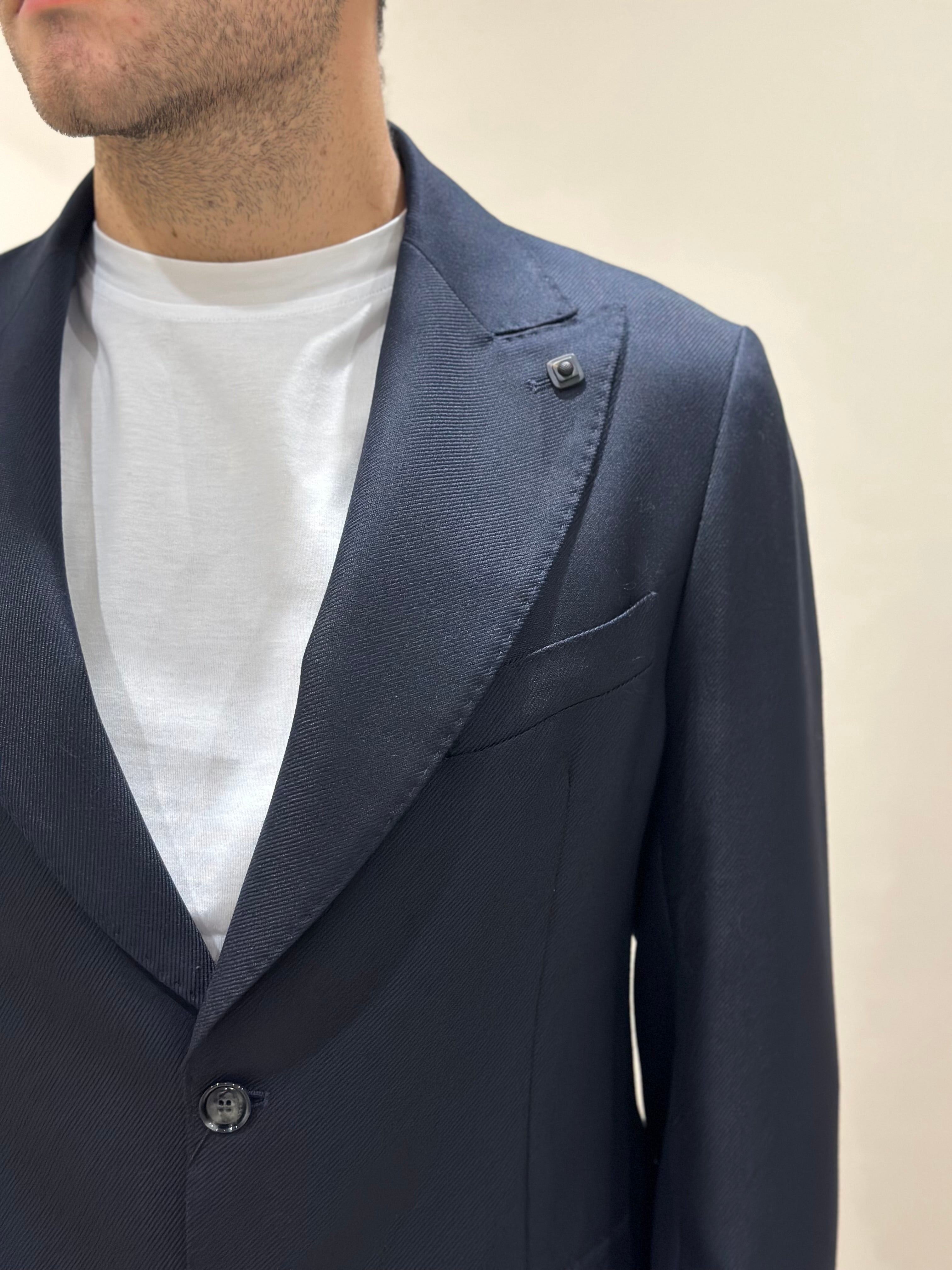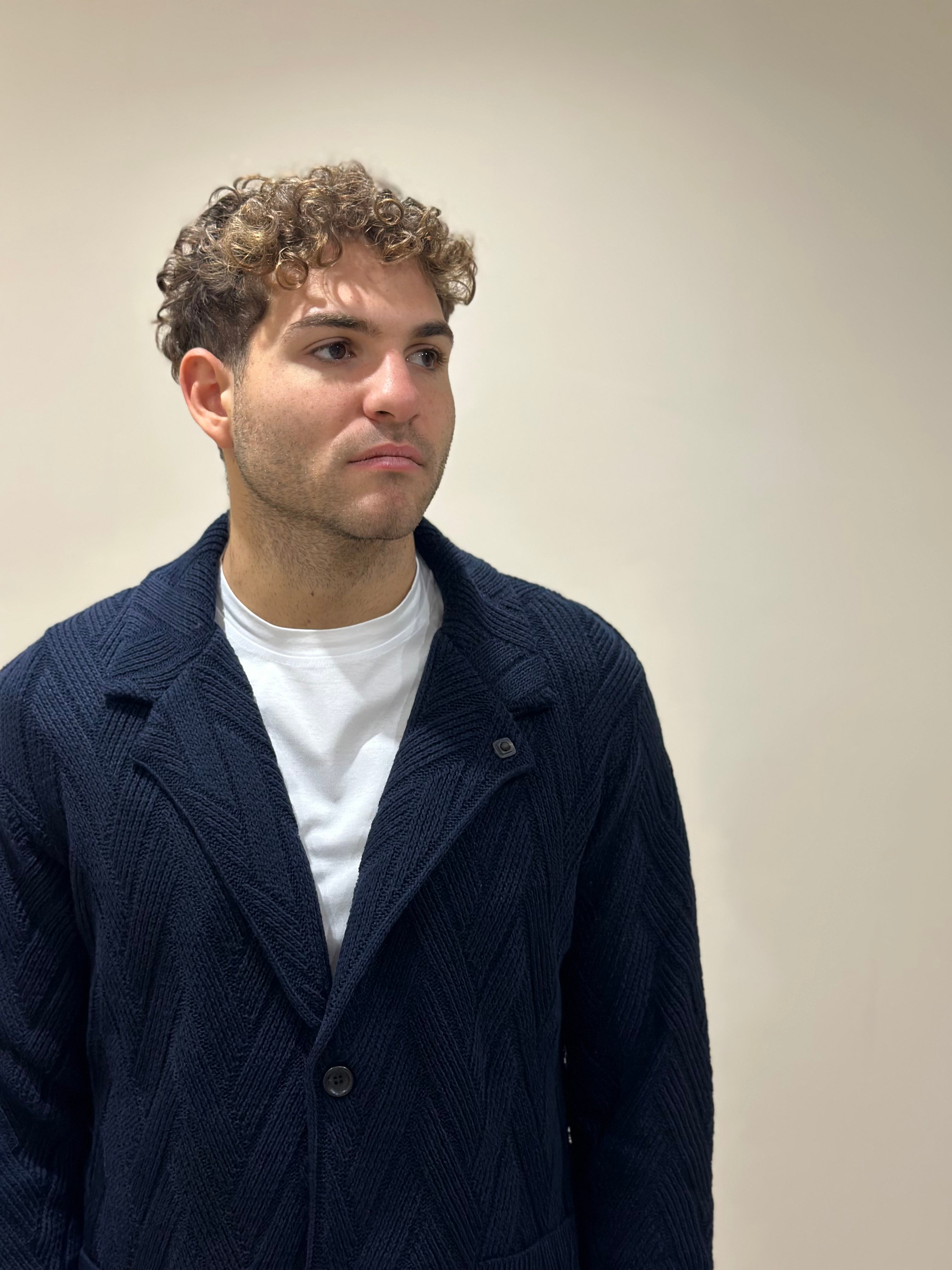 GIACCA MONOPETTO CON REVER A LANCIA IN MISTO LANA BLU NAVY - OUTFIT ITALY