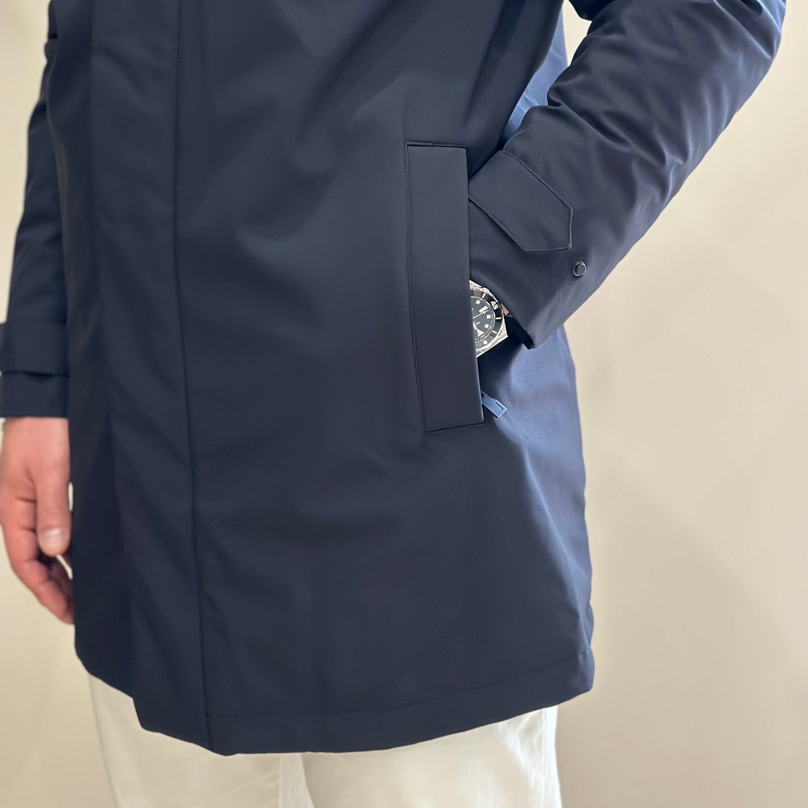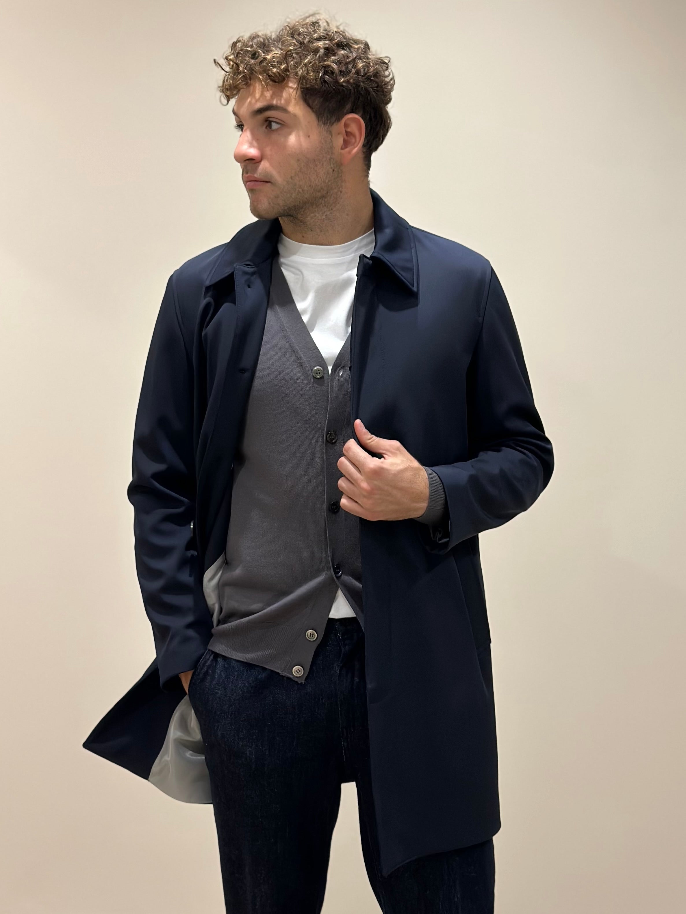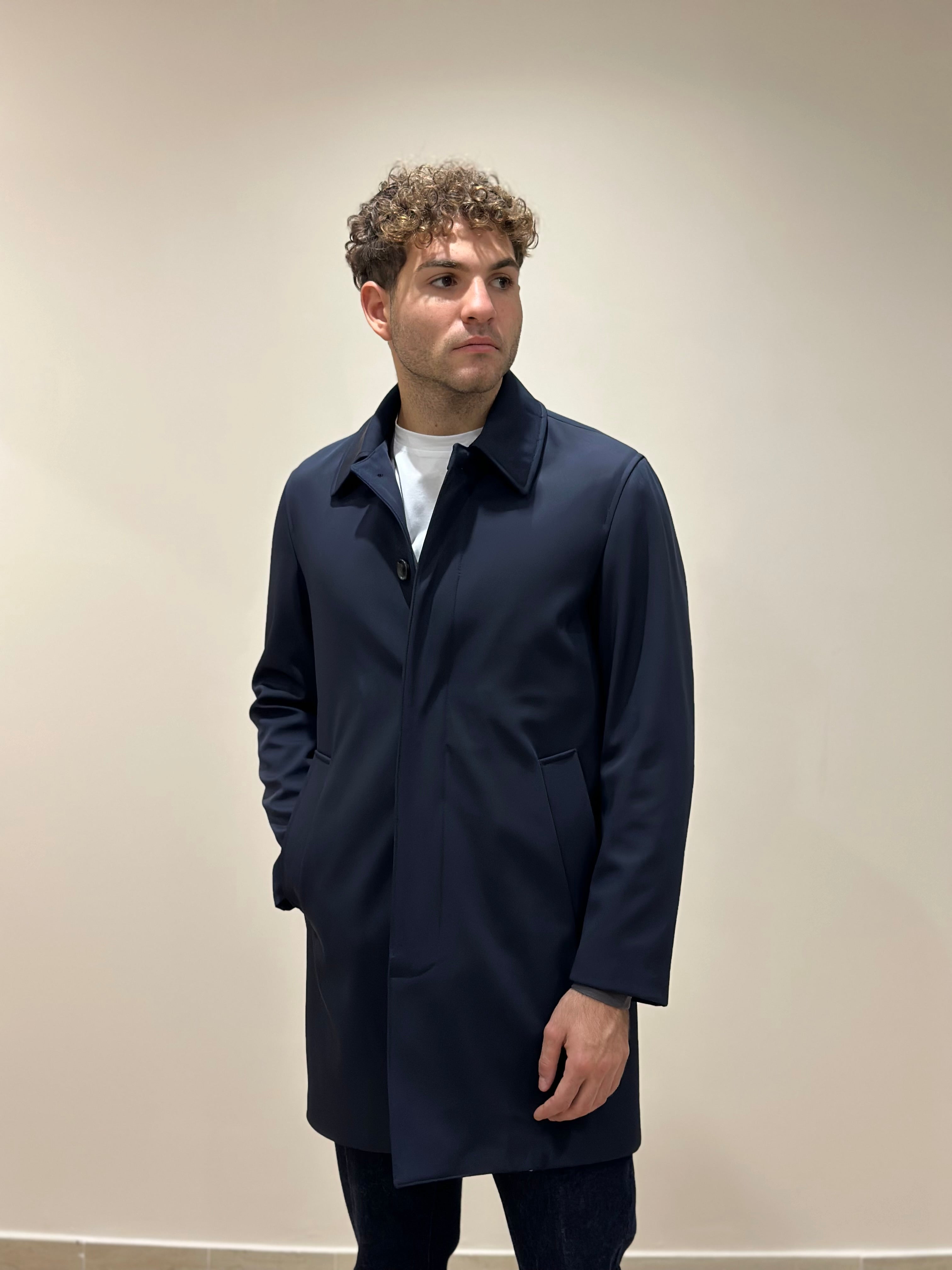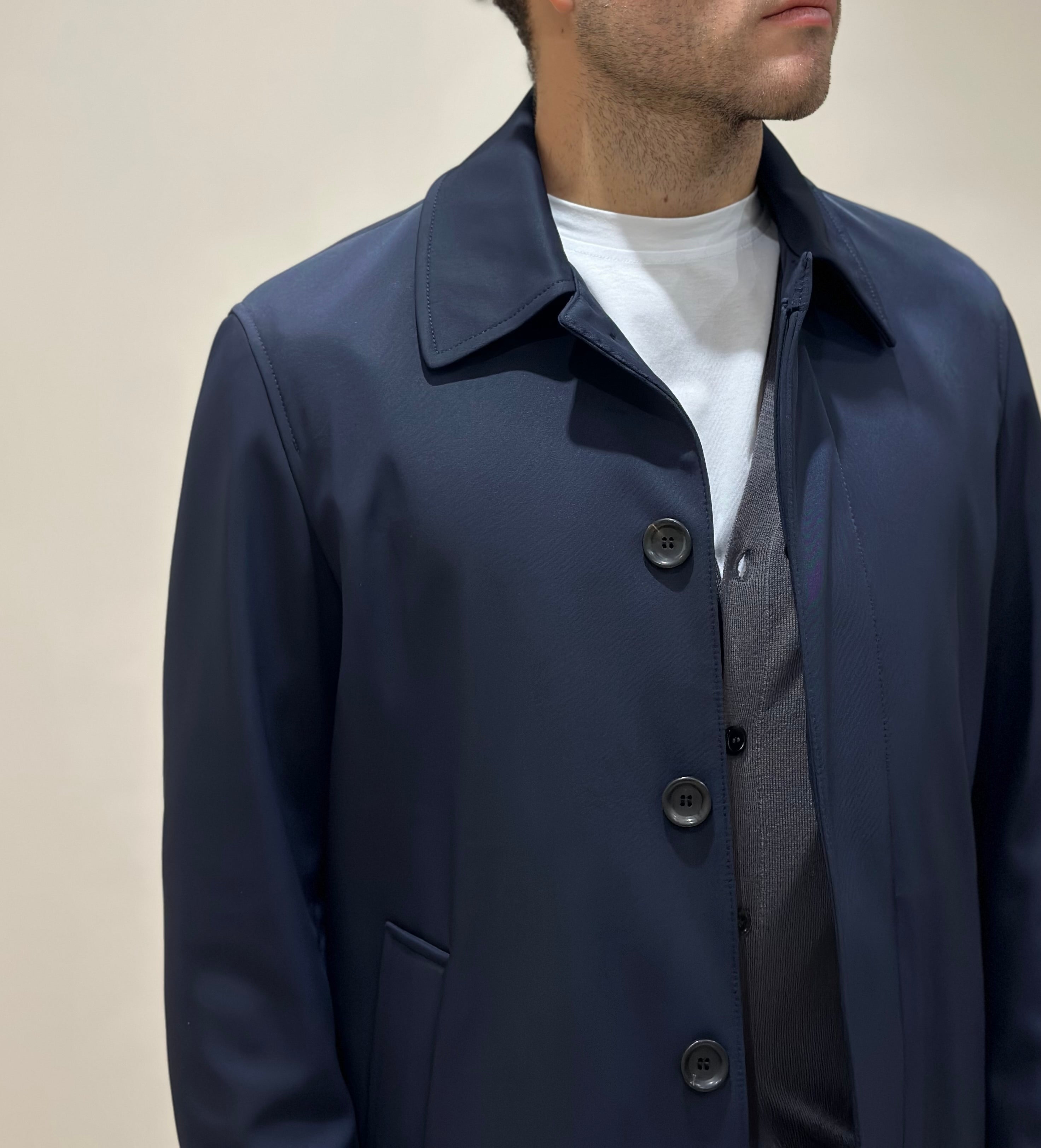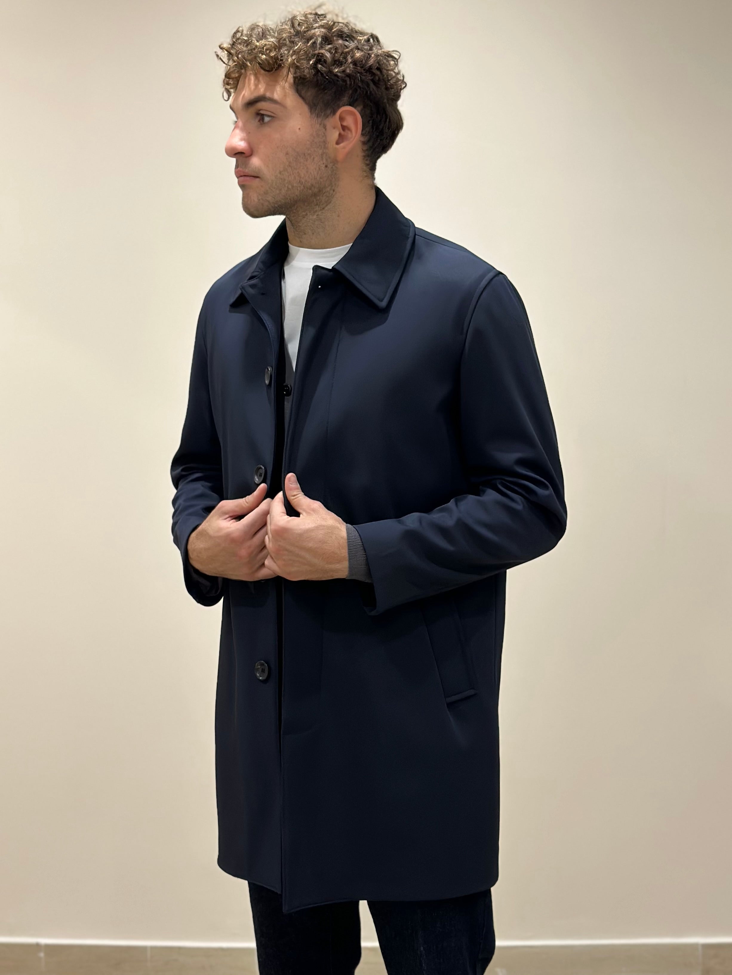 CAPPOTTO IN TESSUTO TECNICO BLU NAVY - OUTFIT ITALY
