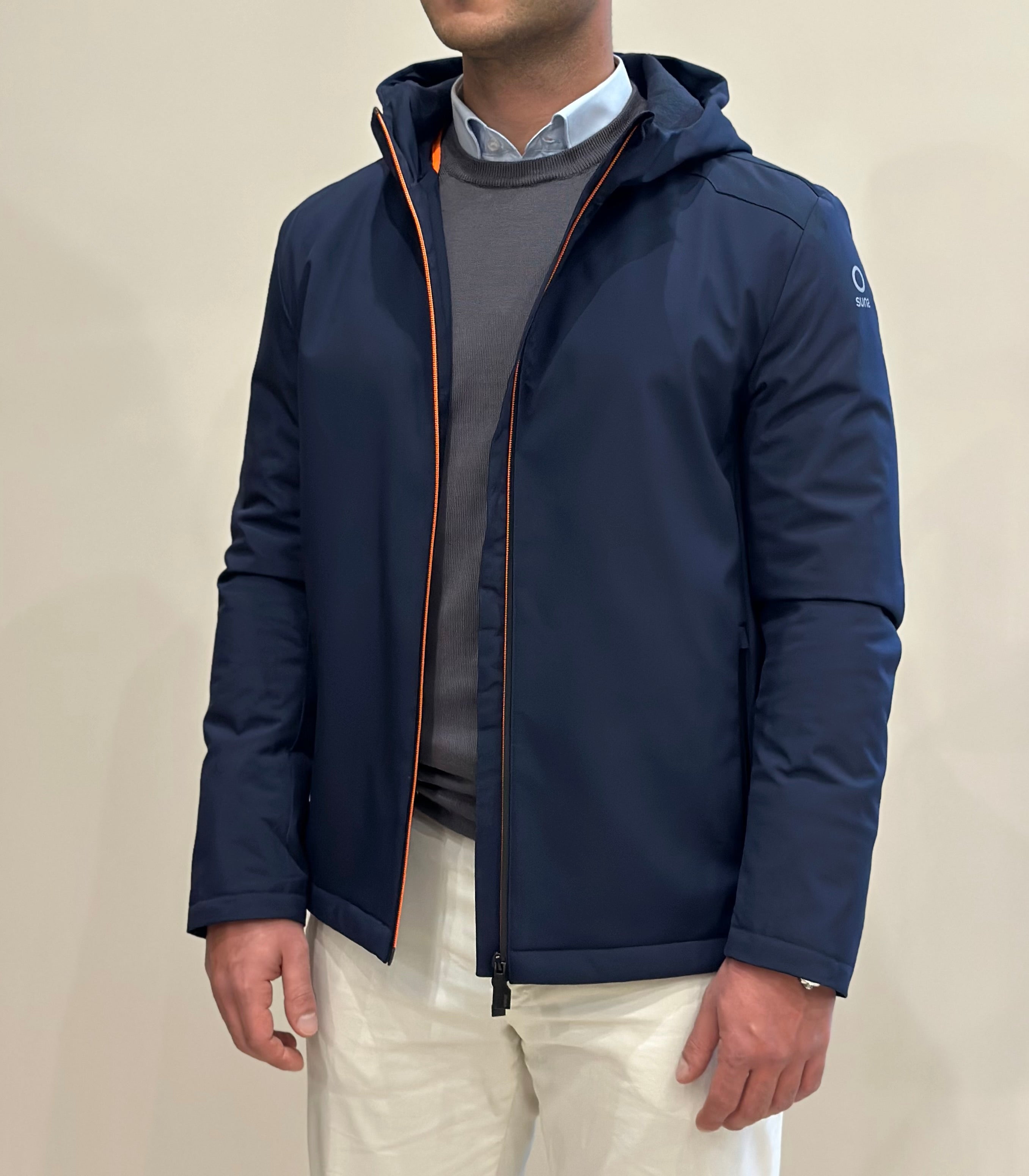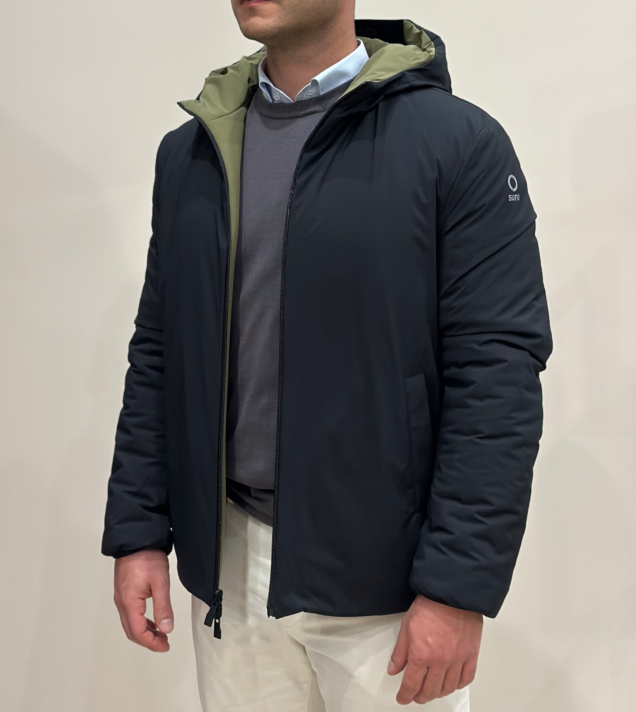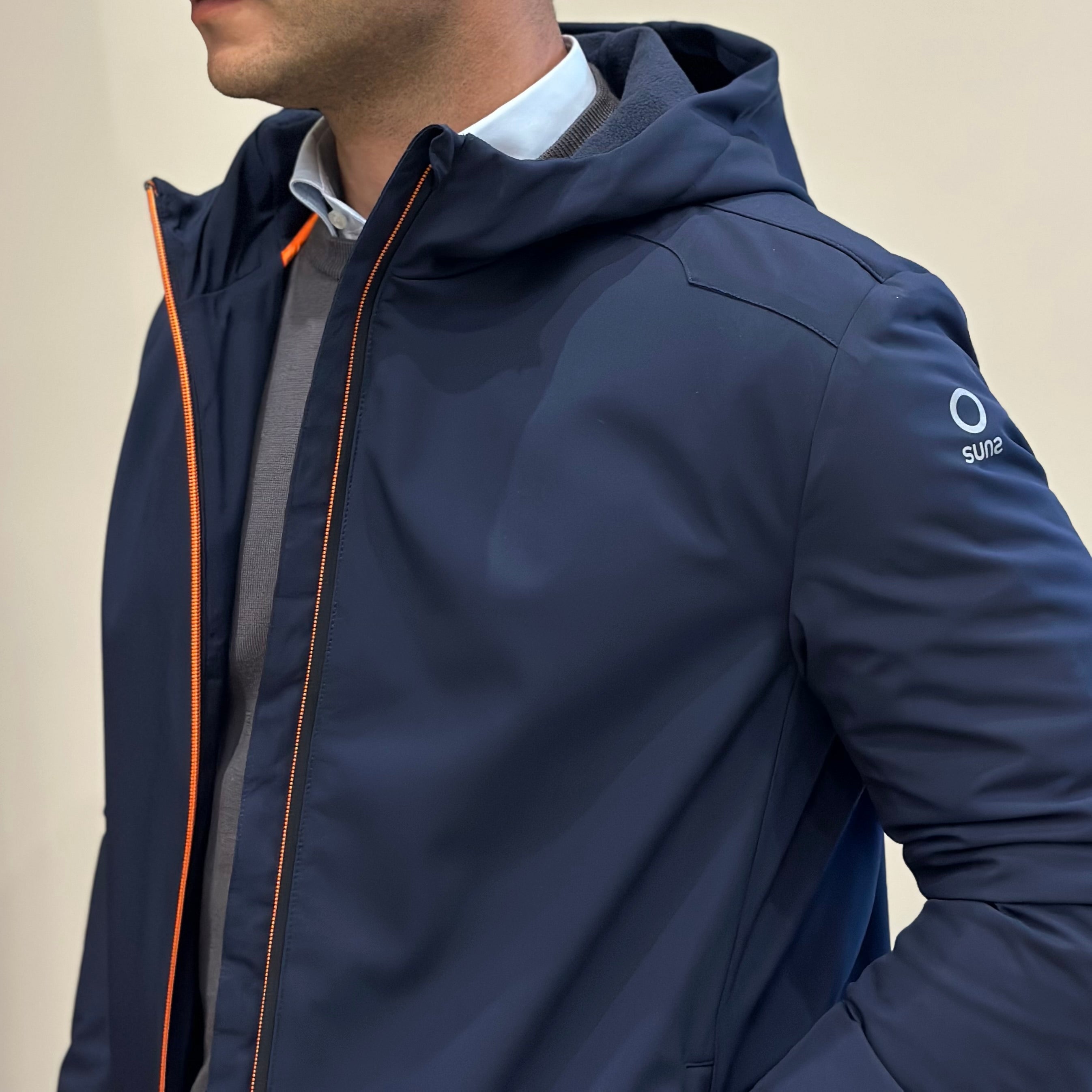SUNS Giubbotto Uomo Flaminio Micro con cappuccio - DARK BLUE