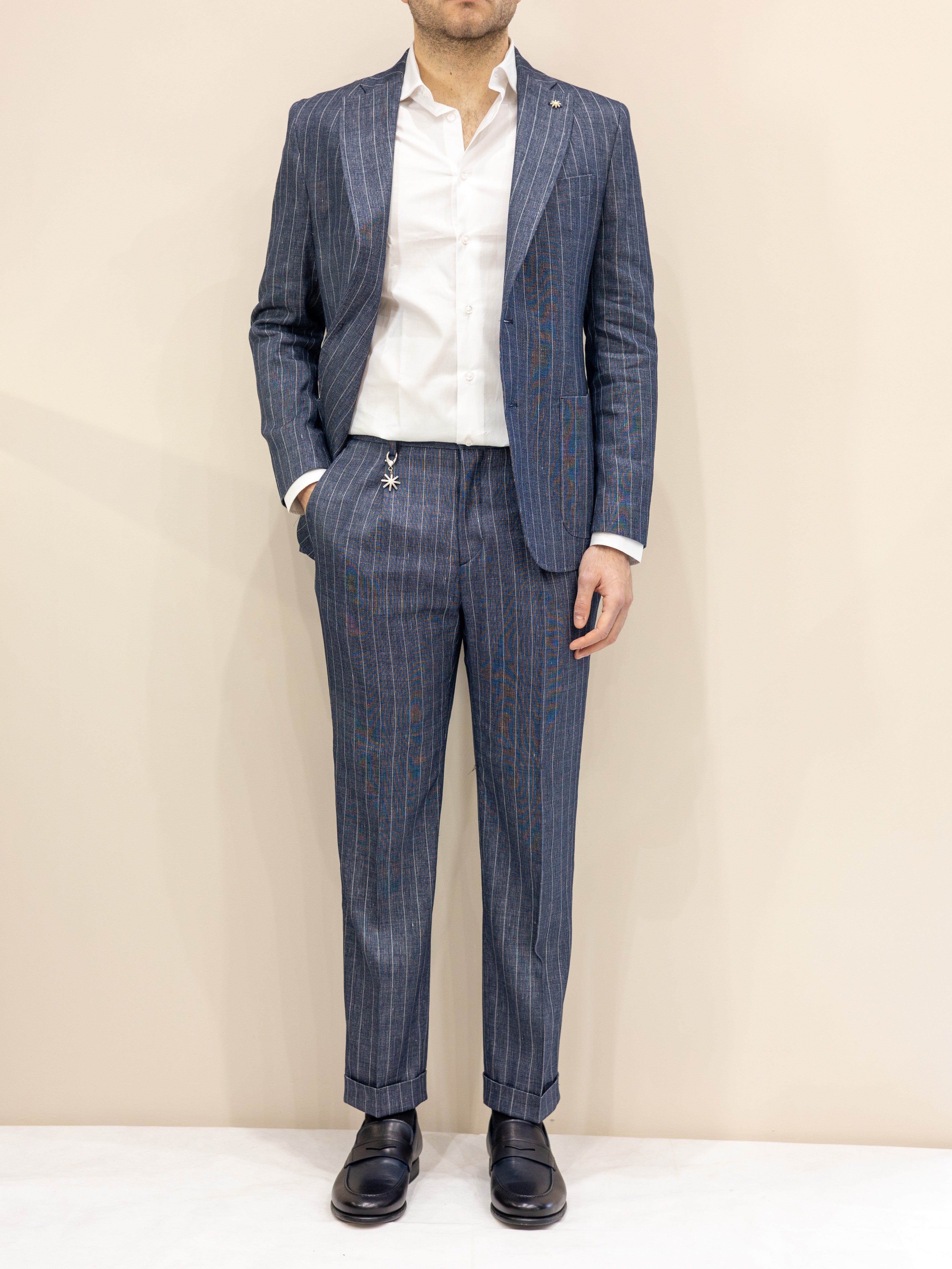 Manuel Ritz Abito in misto Lino - Gessato Denim