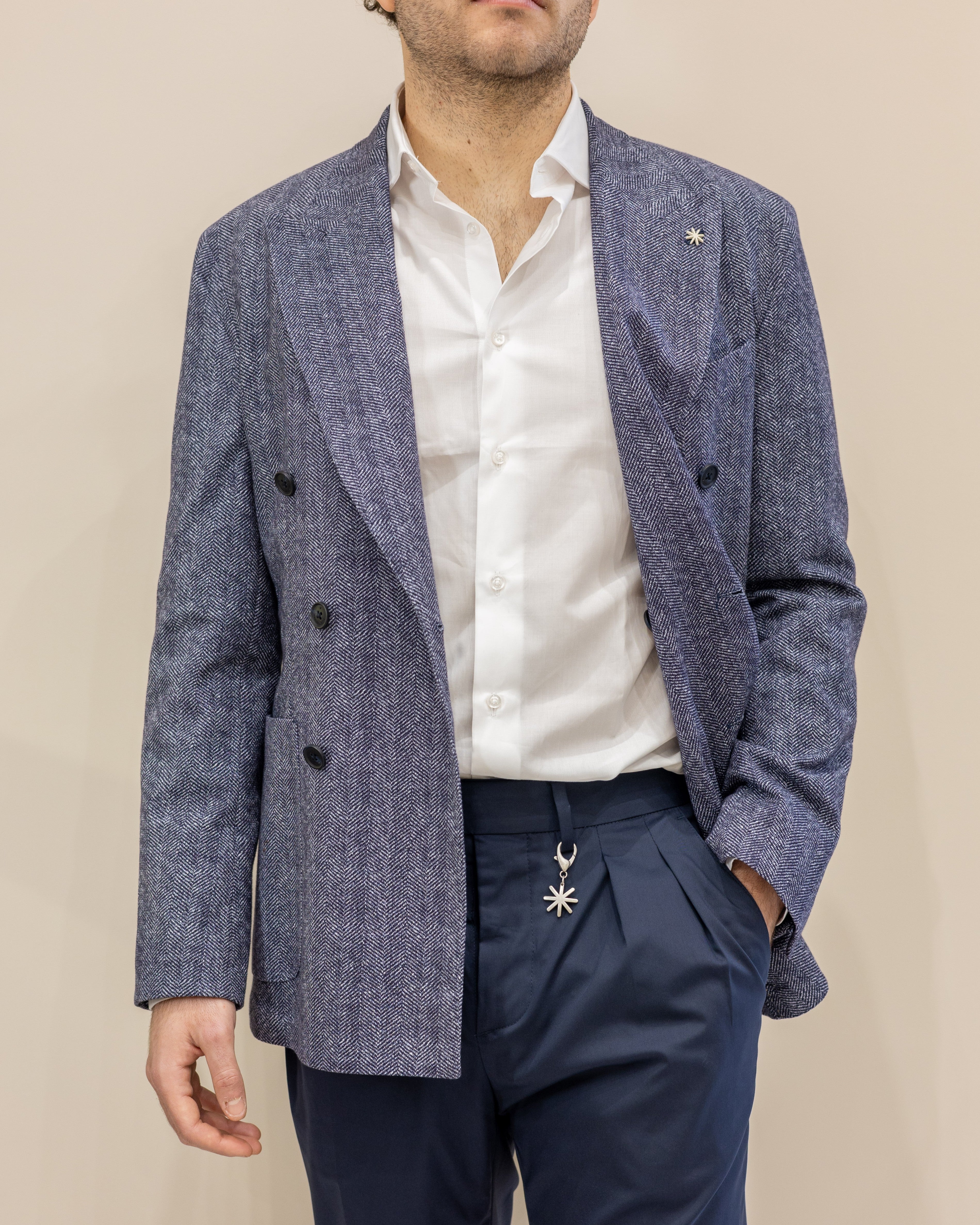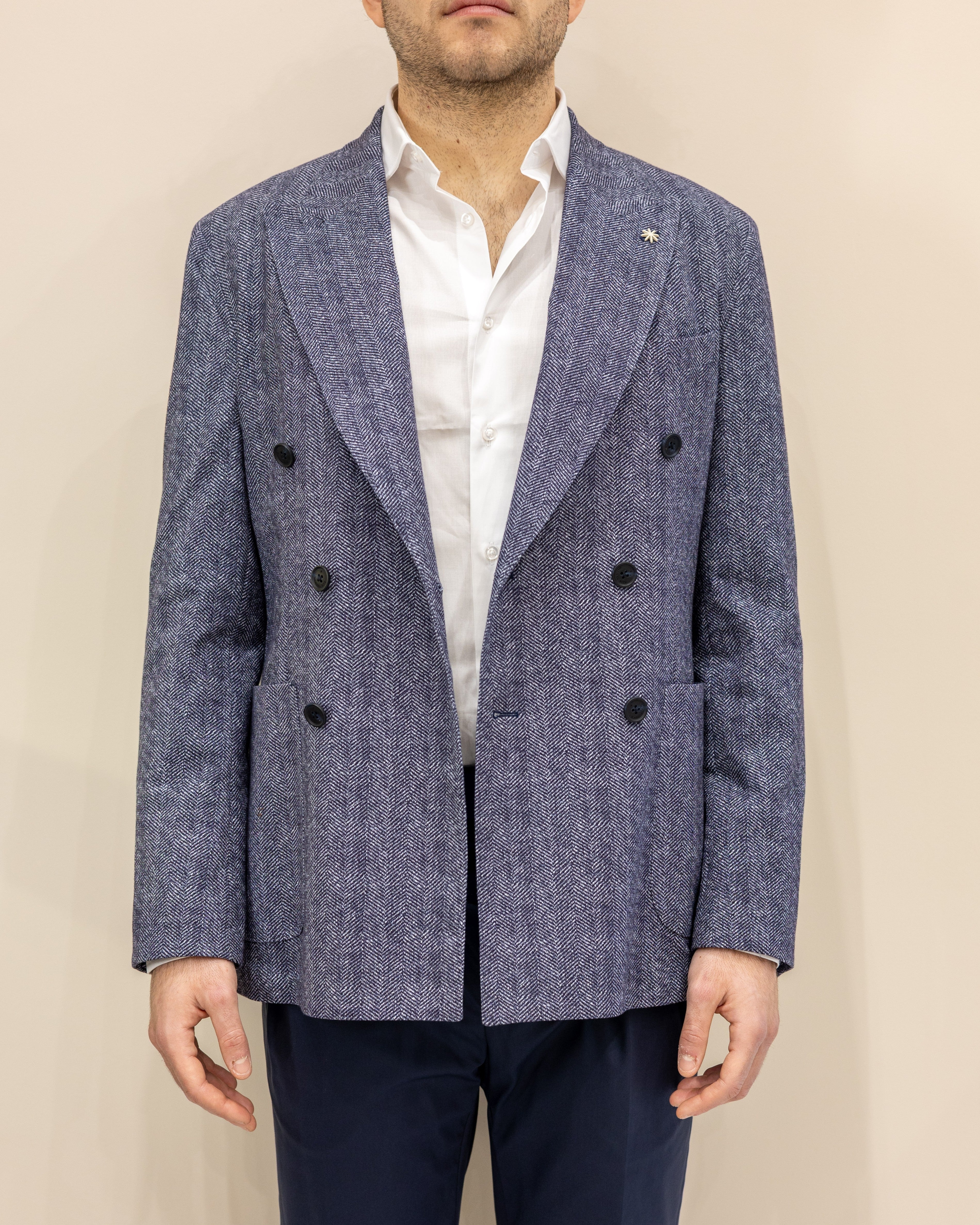 Manuel Ritz Giacca Doppiopetto in cotone - Spigata Blu
