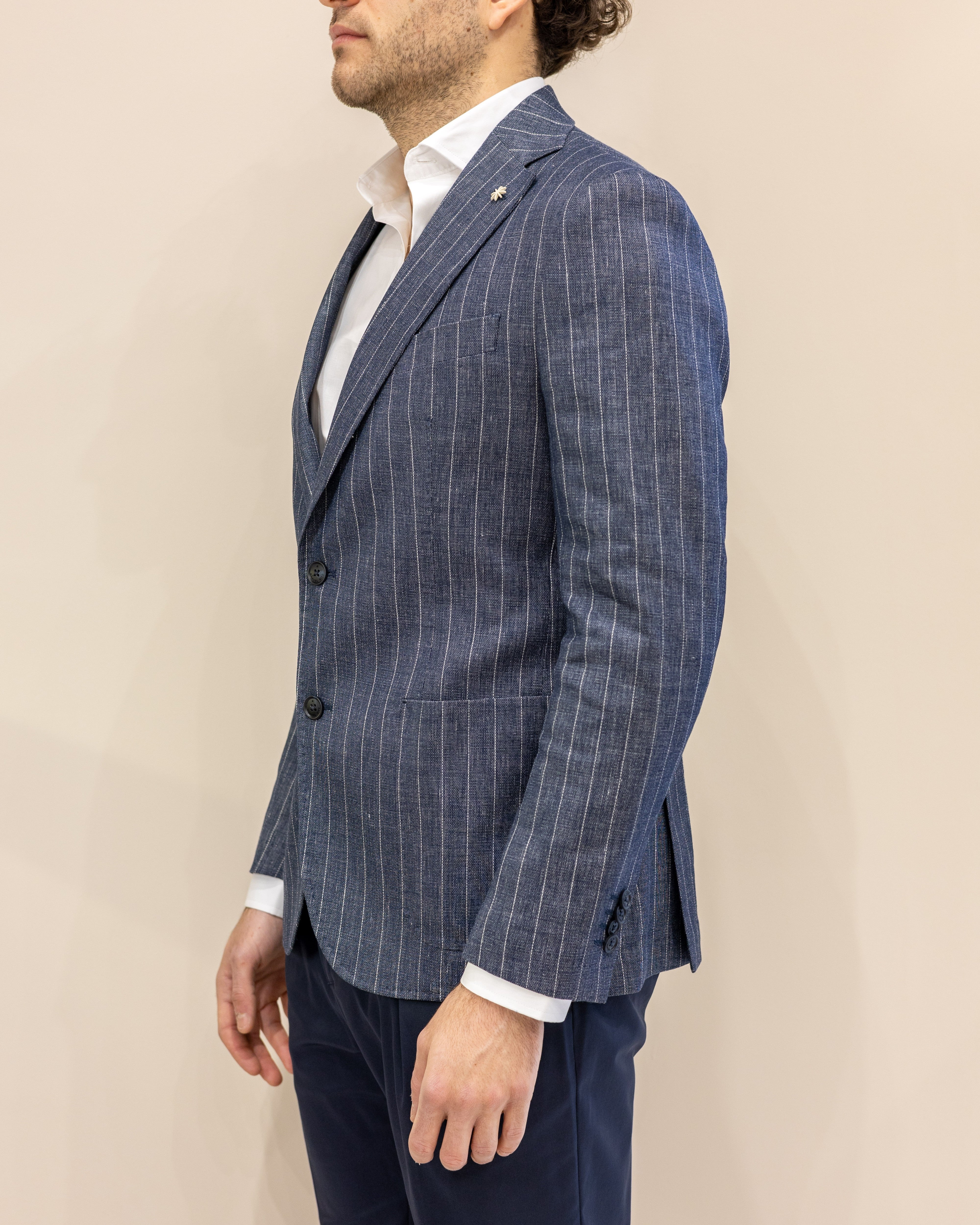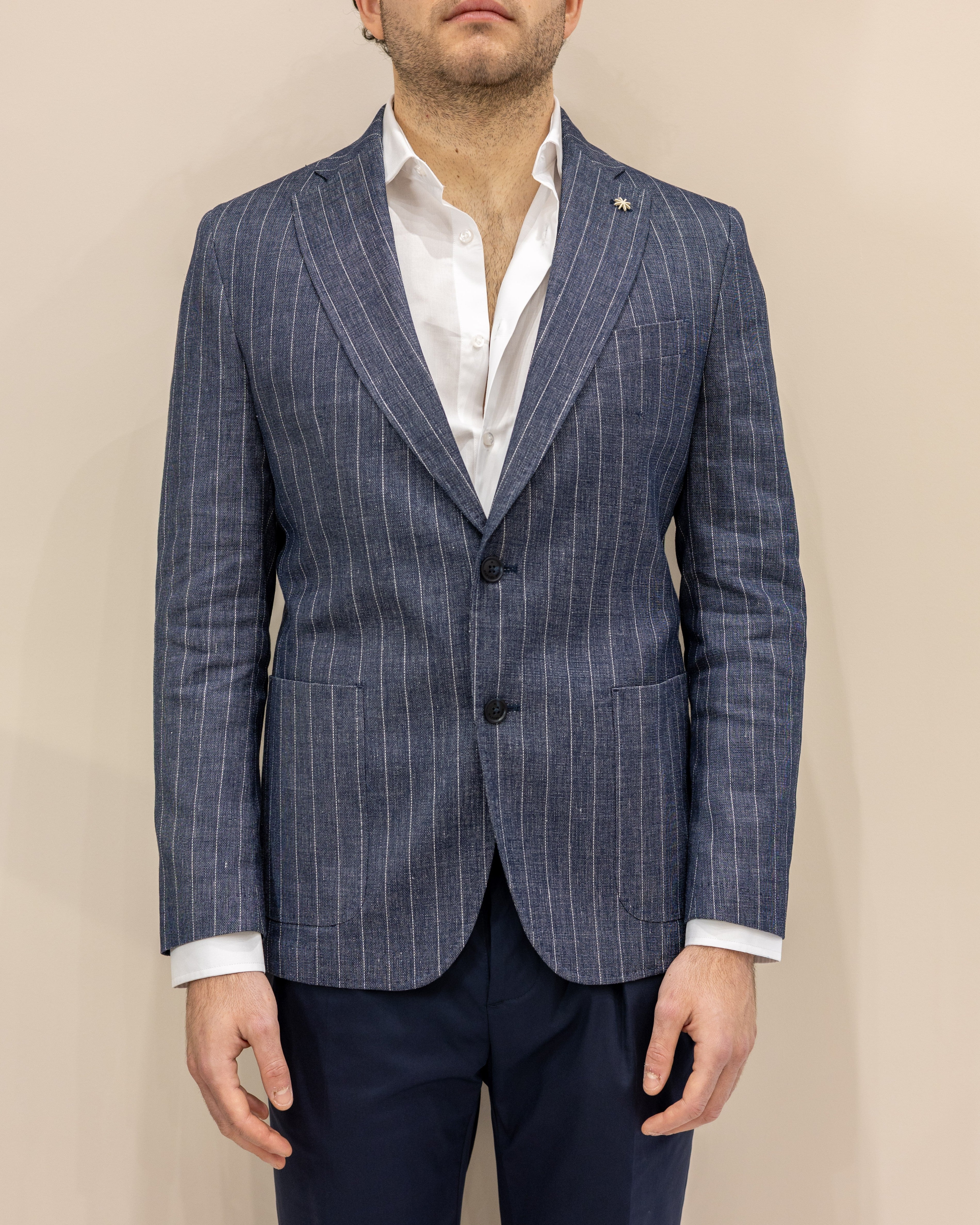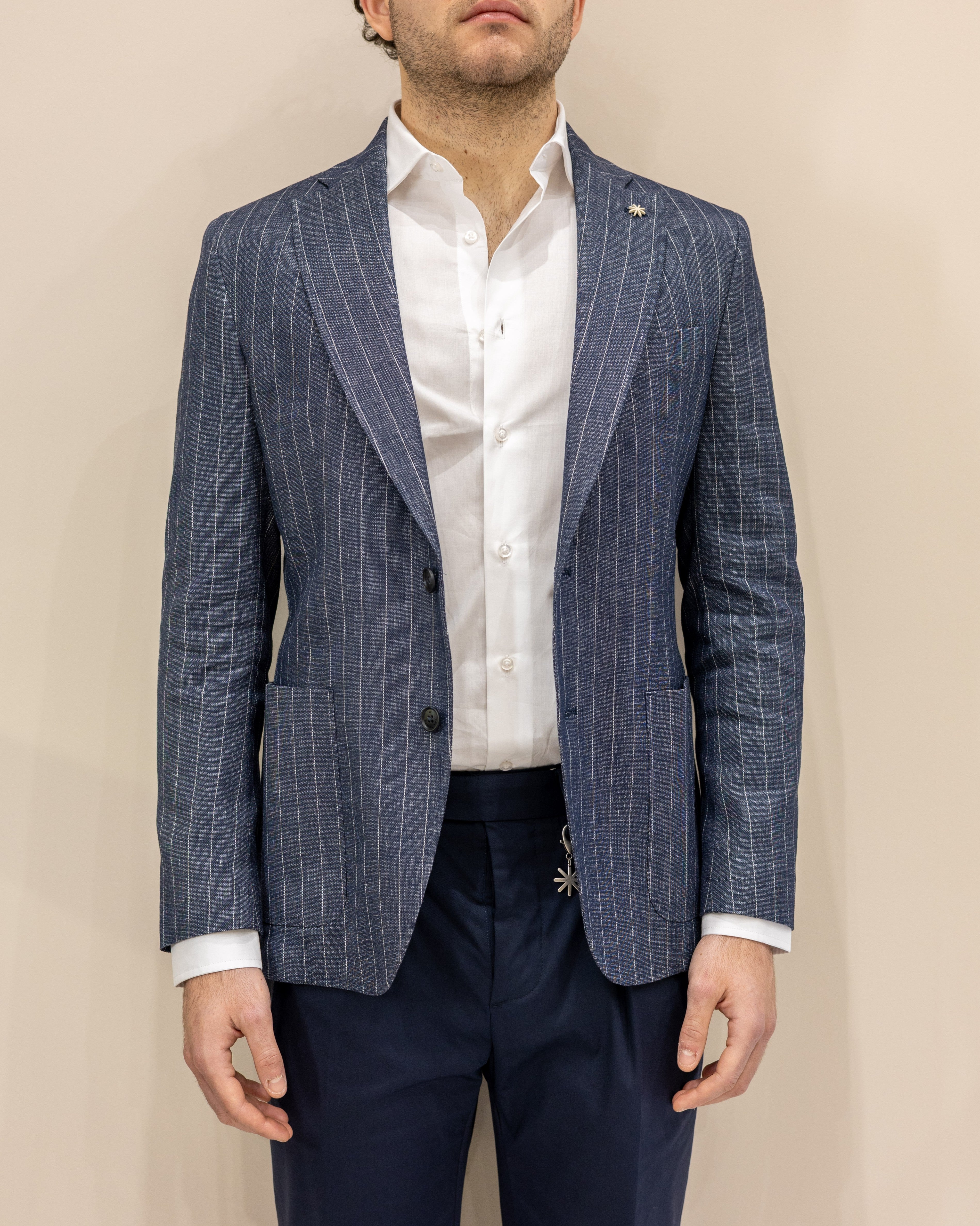 Manuel Ritz Giacca in misto Lino - Gessato Denim