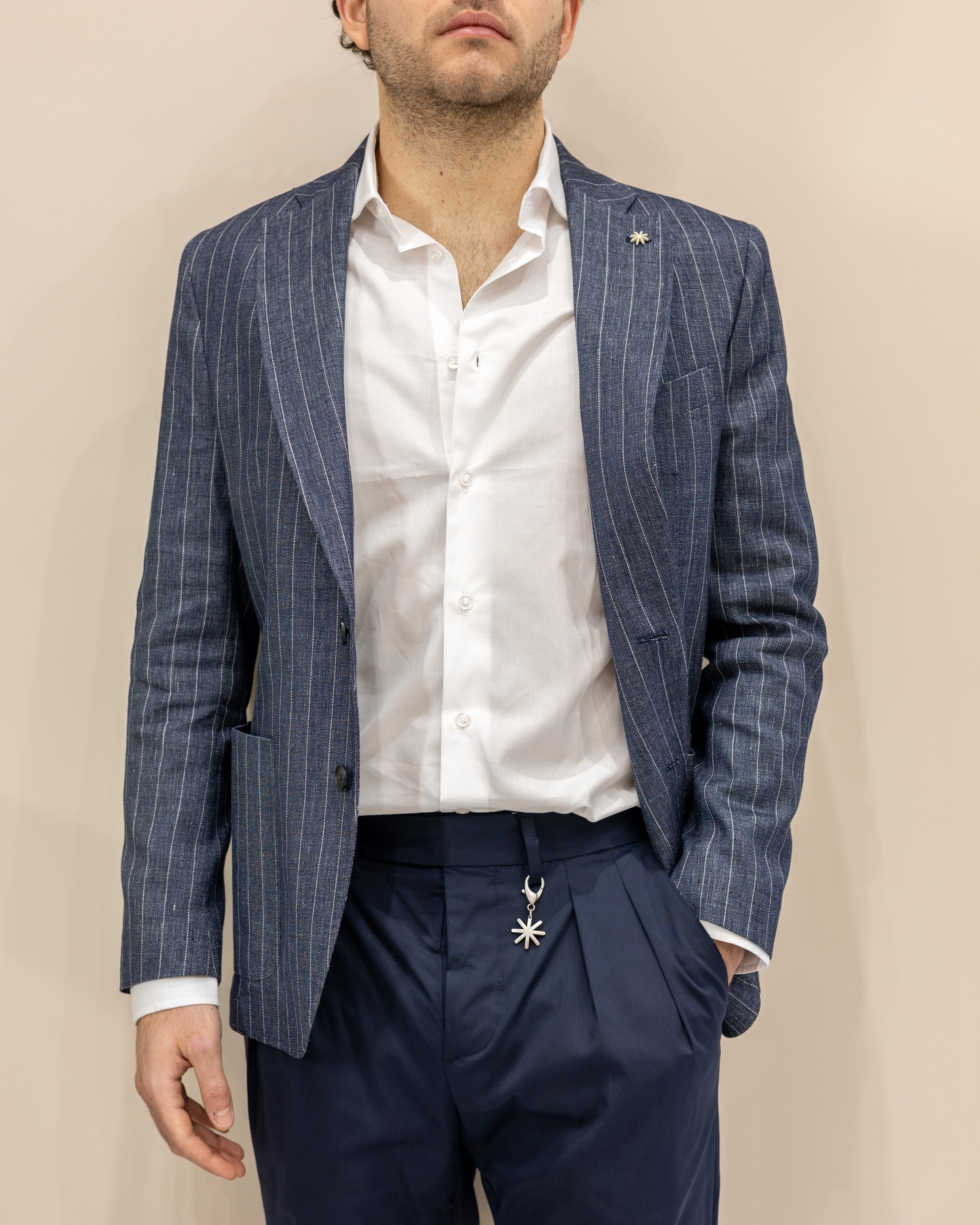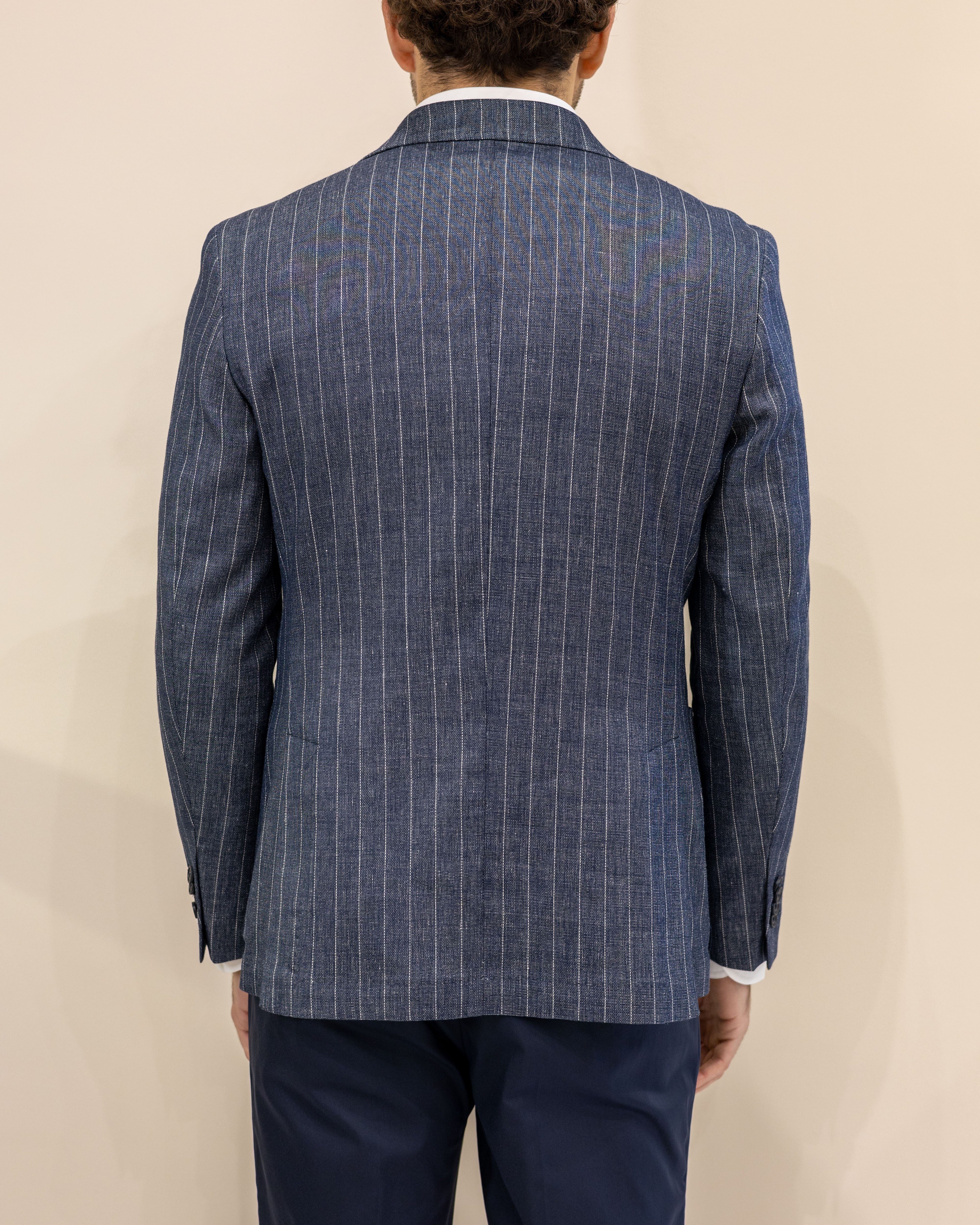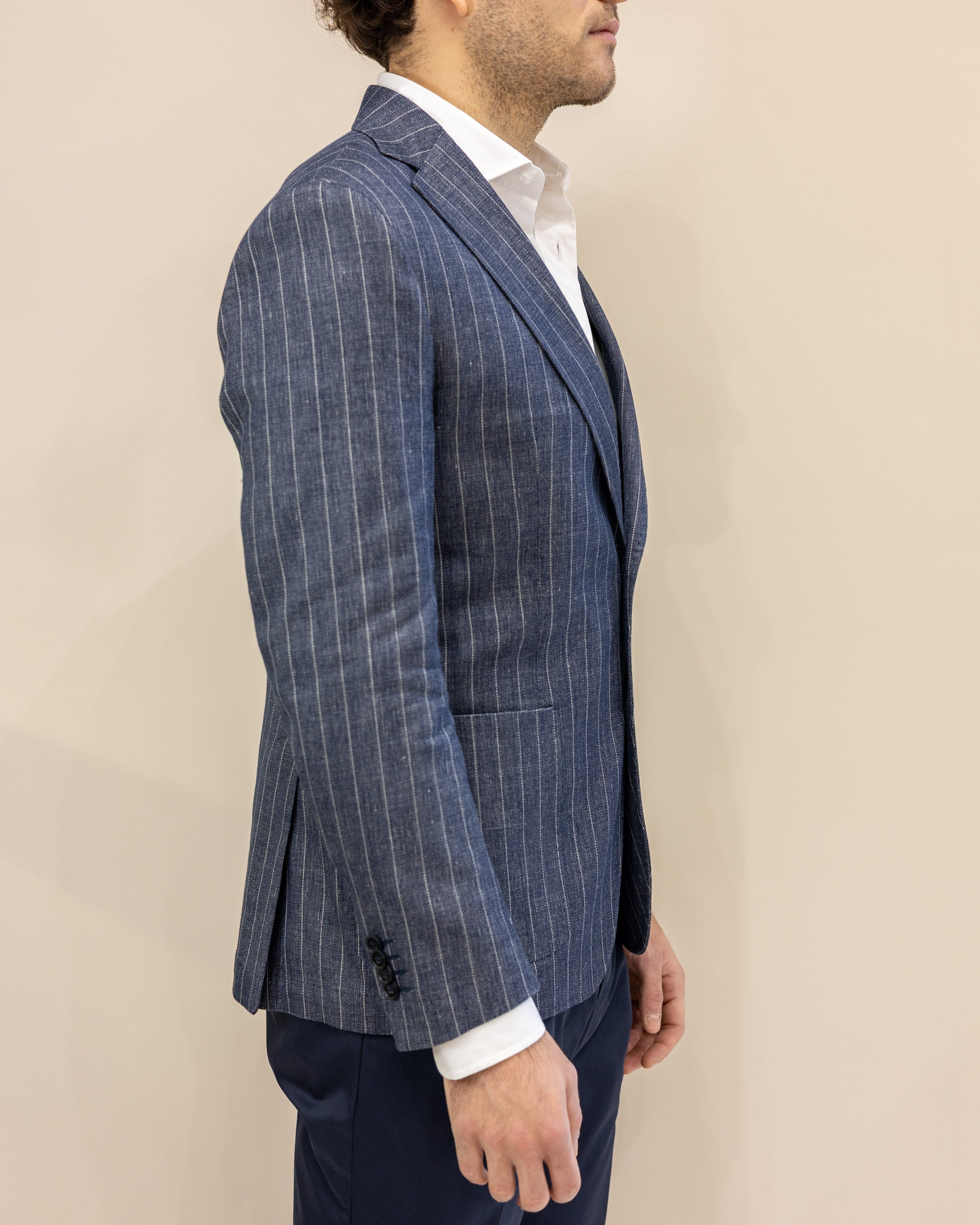Manuel Ritz Giacca in misto Lino - Gessato Denim