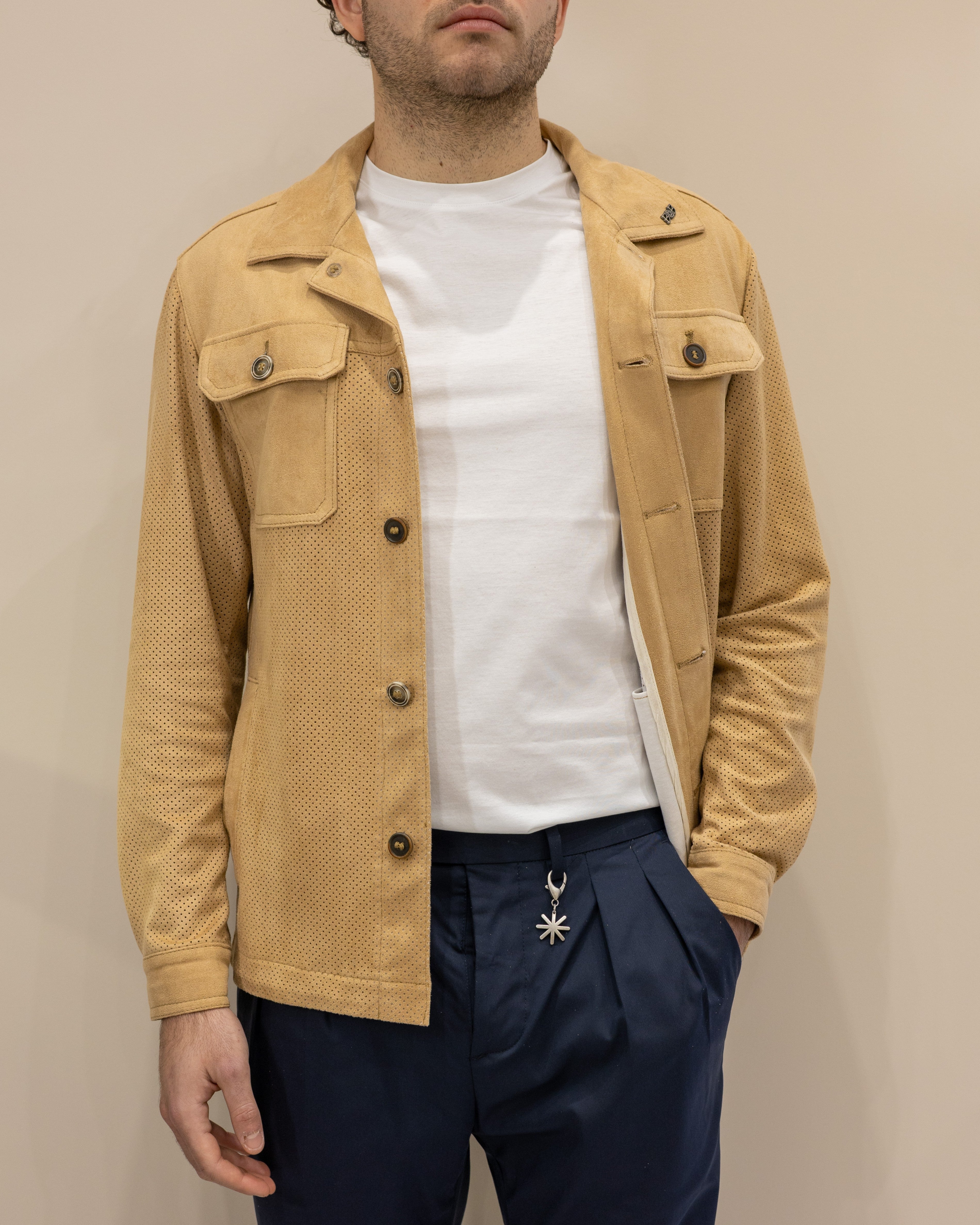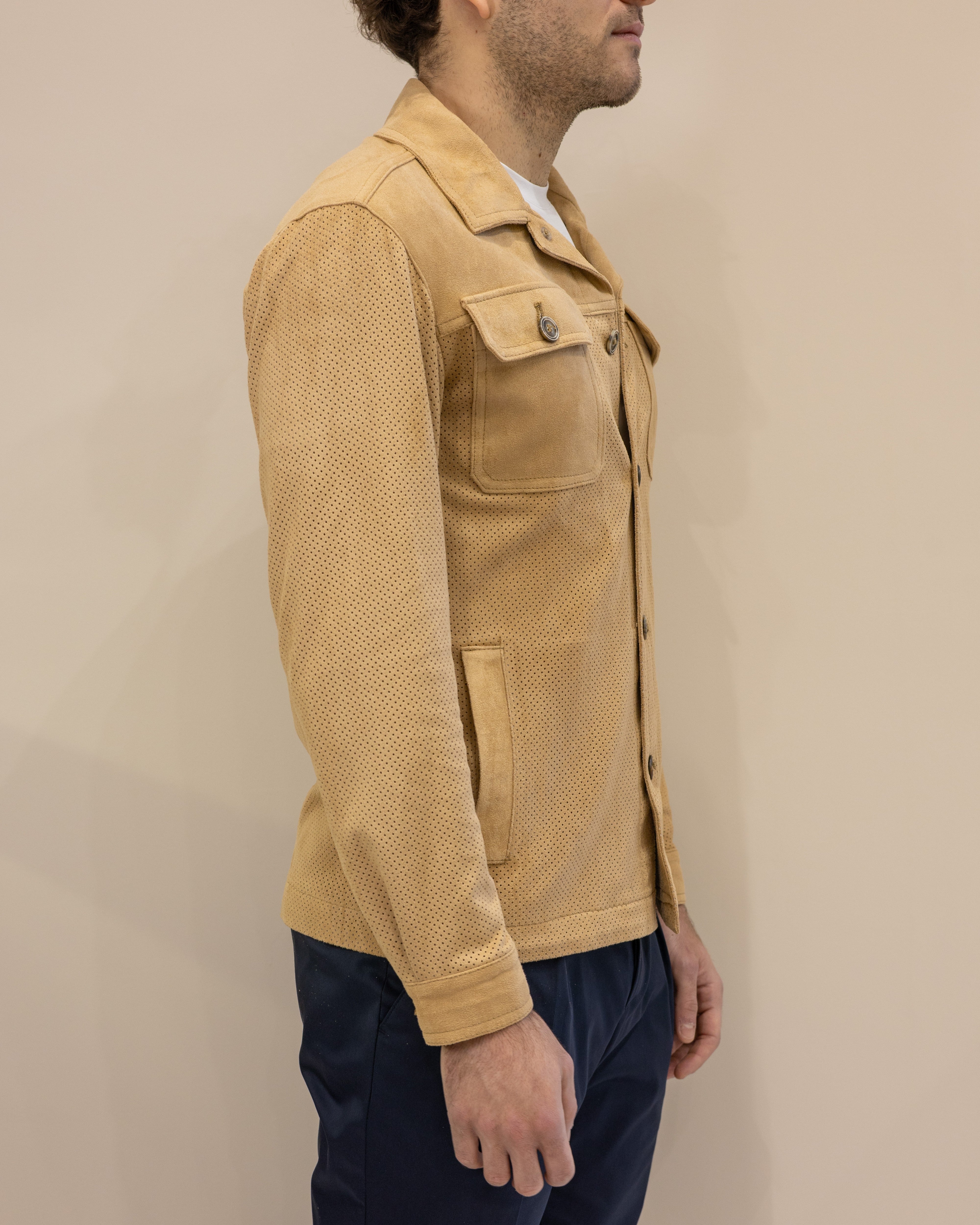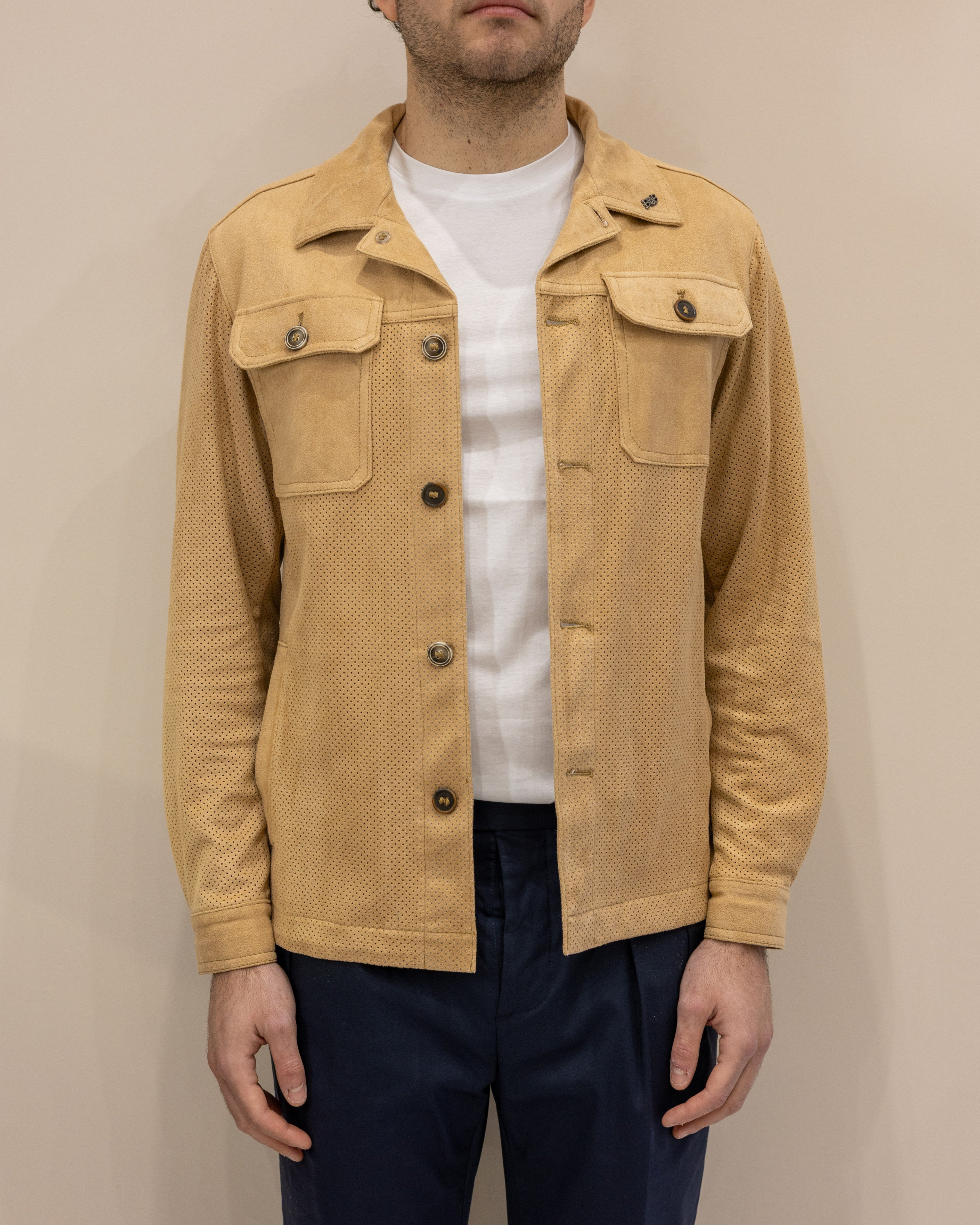 BOB COMPANY Overshirt Morgan552 in ecopelle traforata - Nocciola
