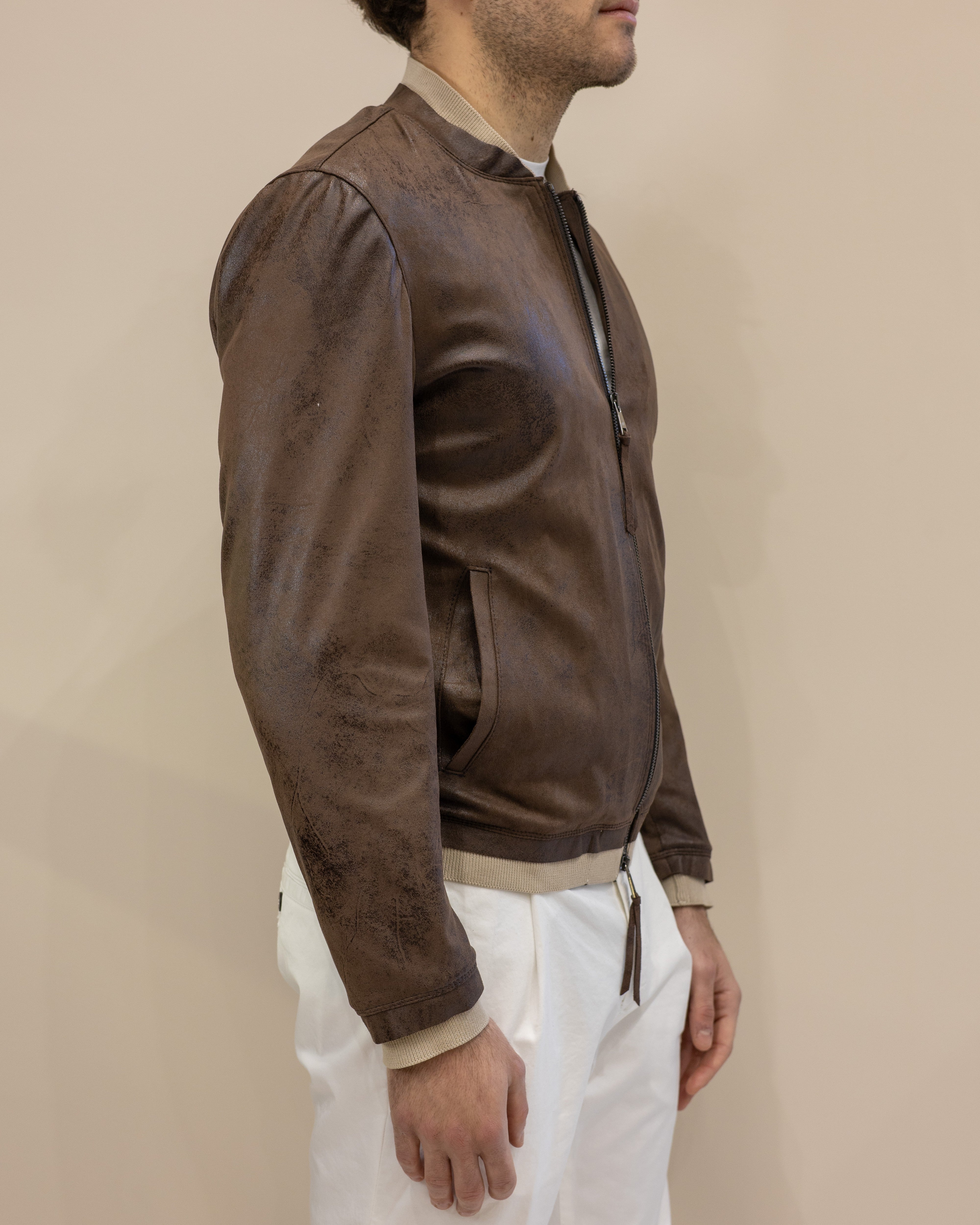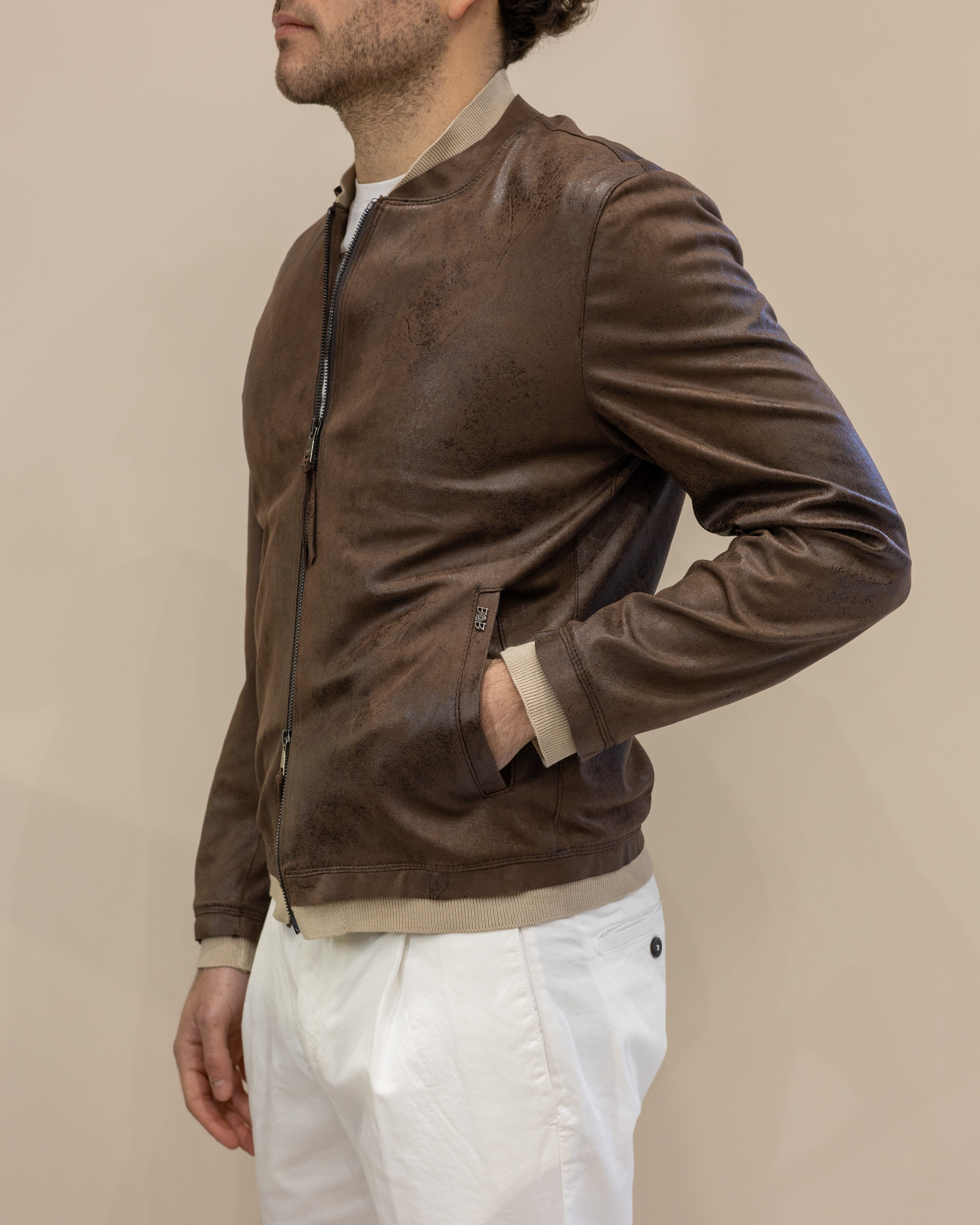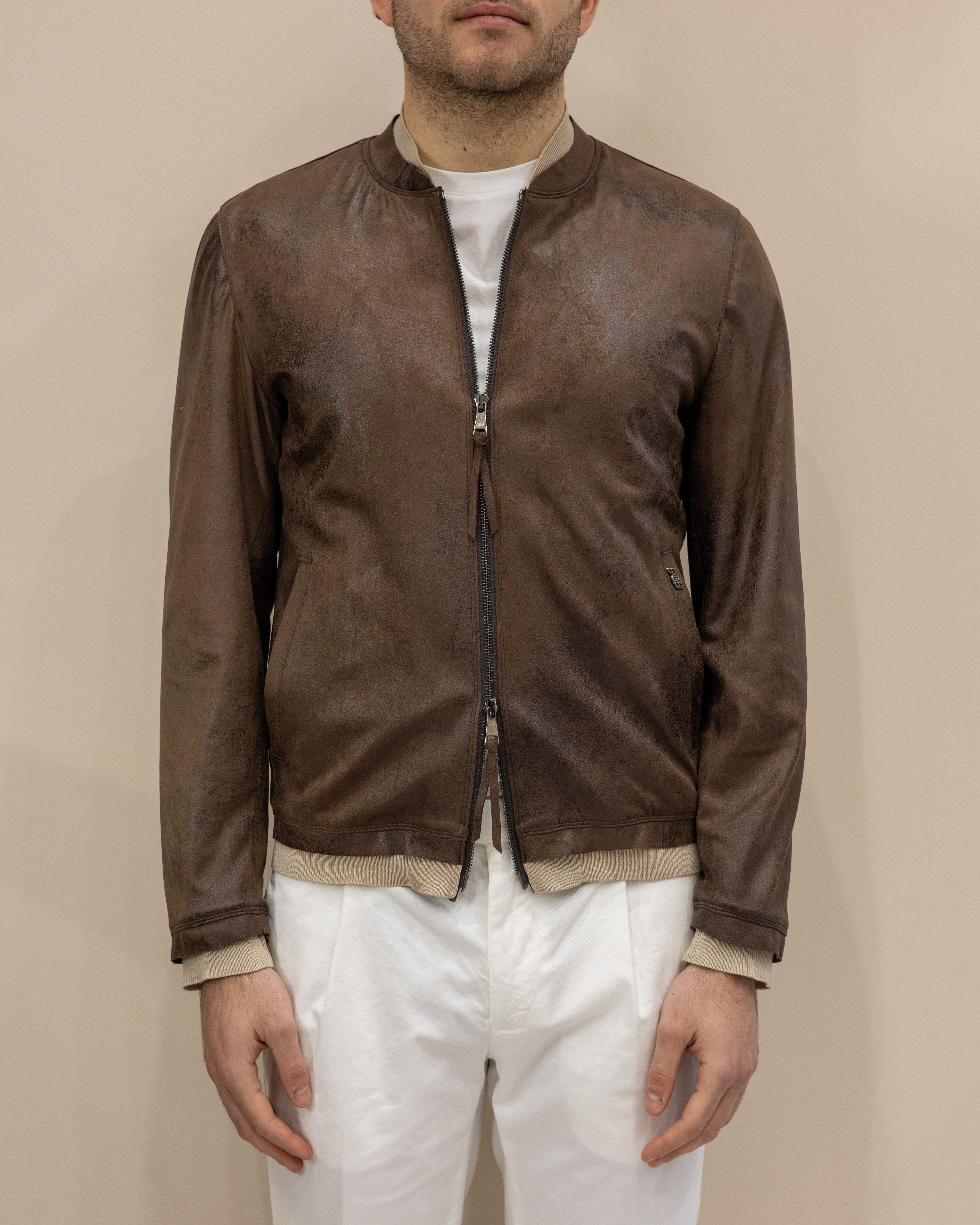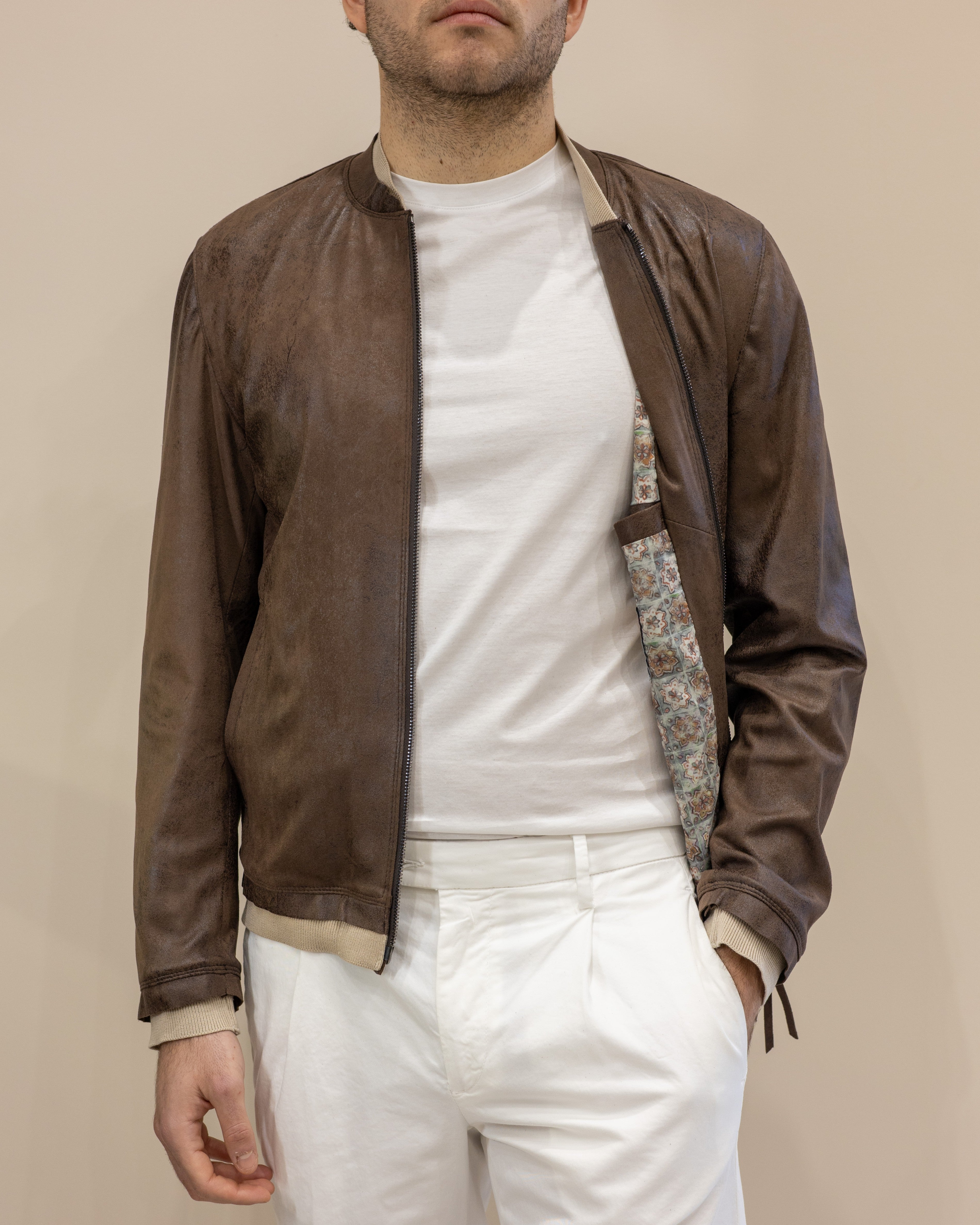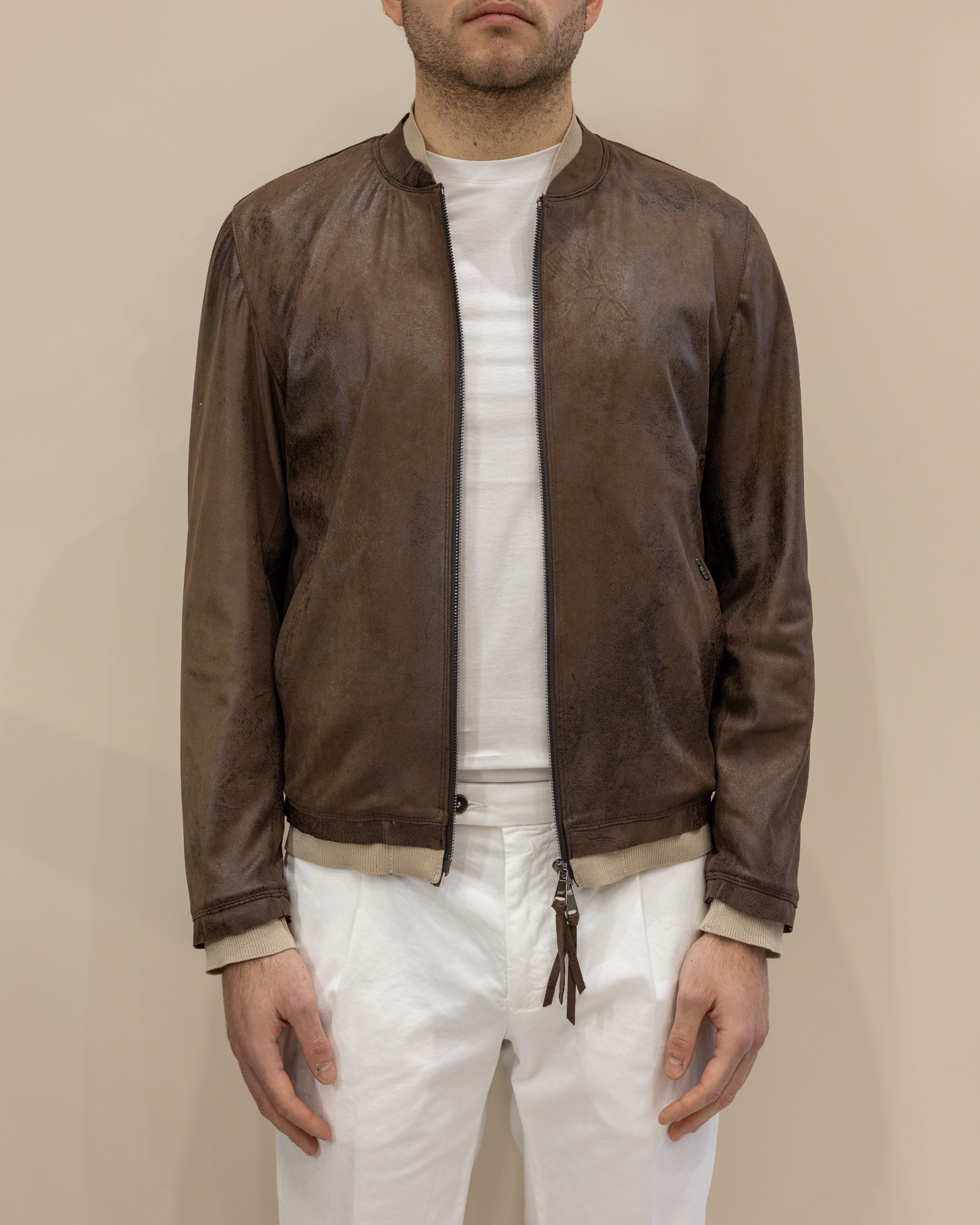 Bomber in Pelle Scamosciata Blusotto – Testa di Moro