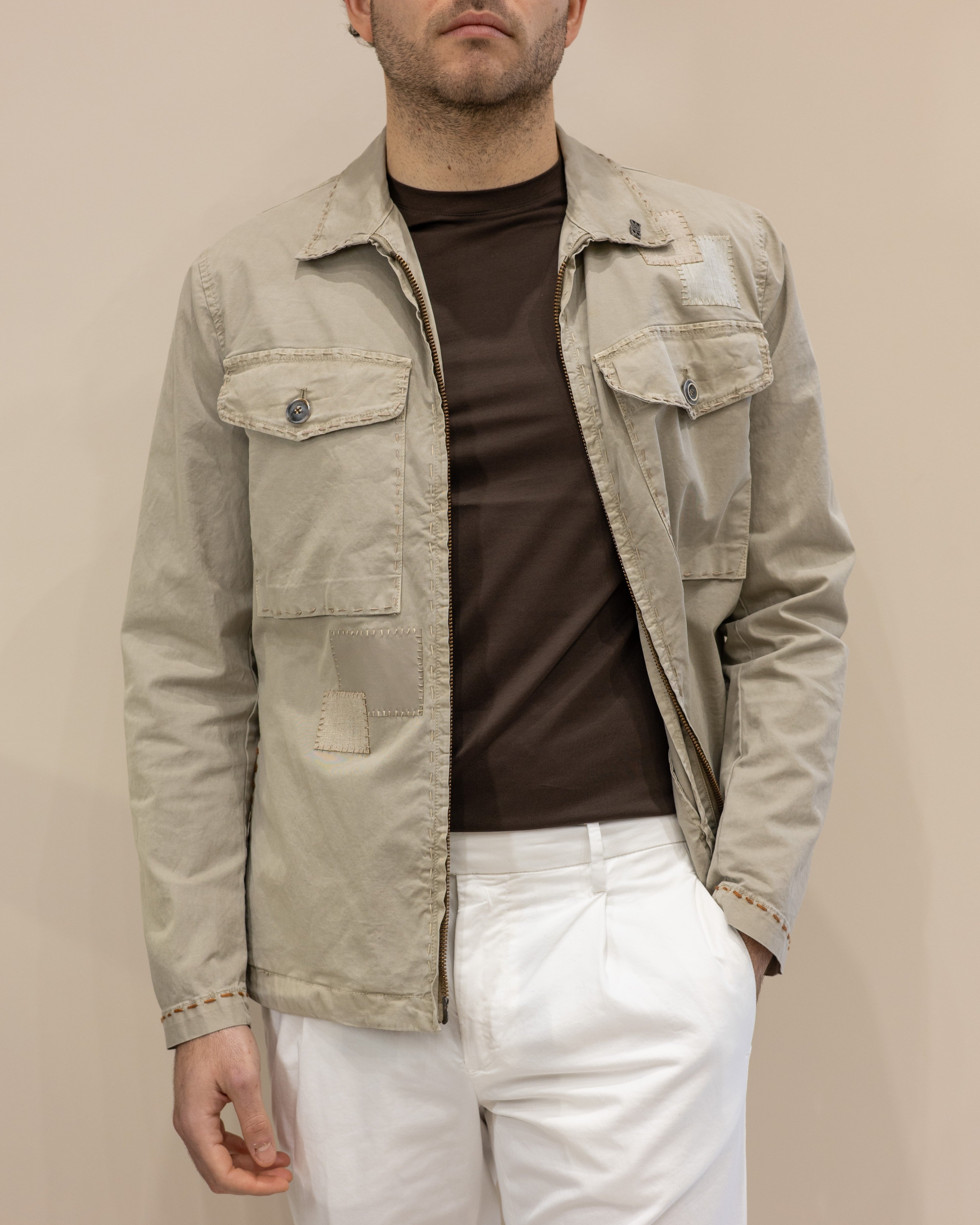 BOB COMPANY Overshirt Stone523 in gabardina di cotone - Noce