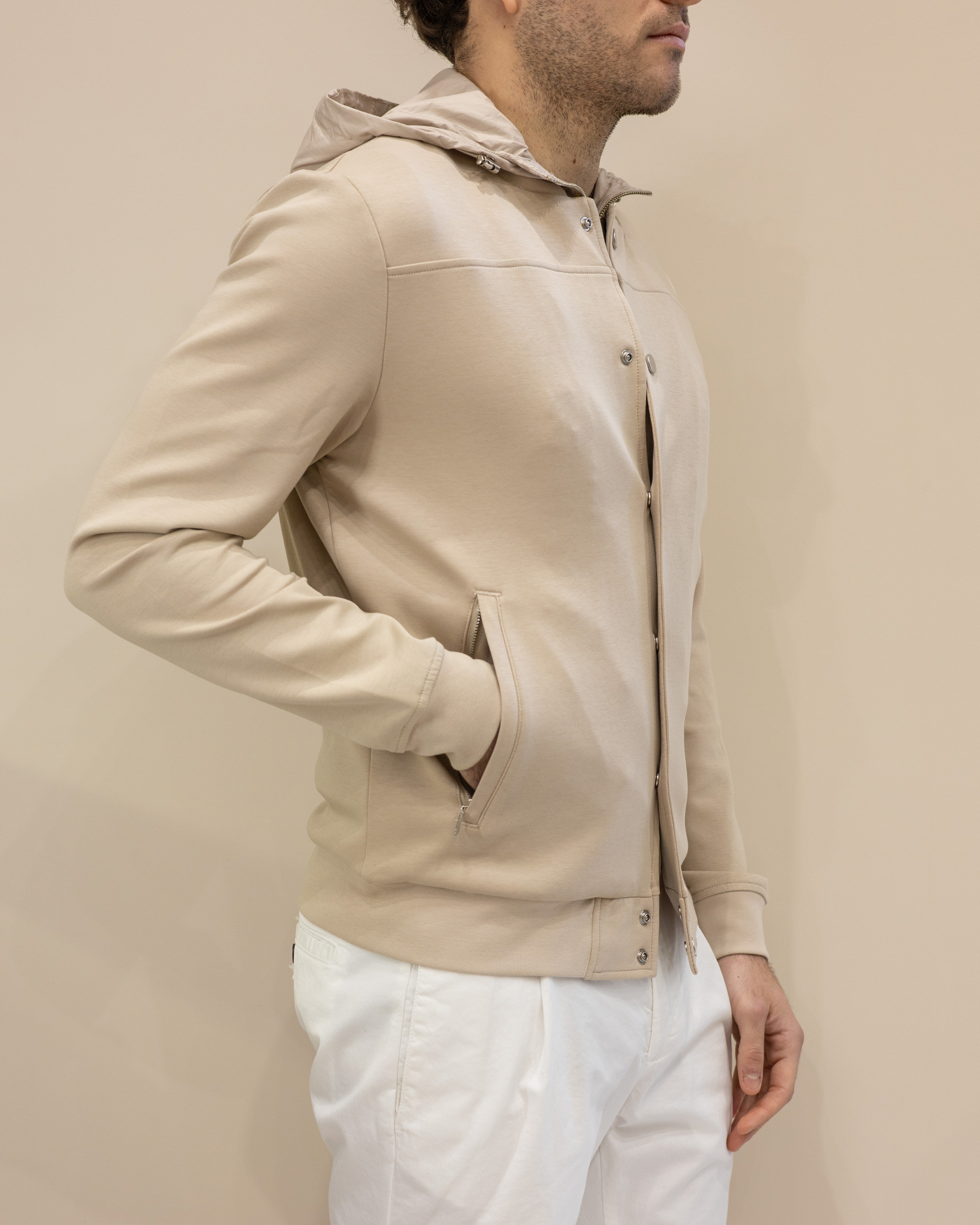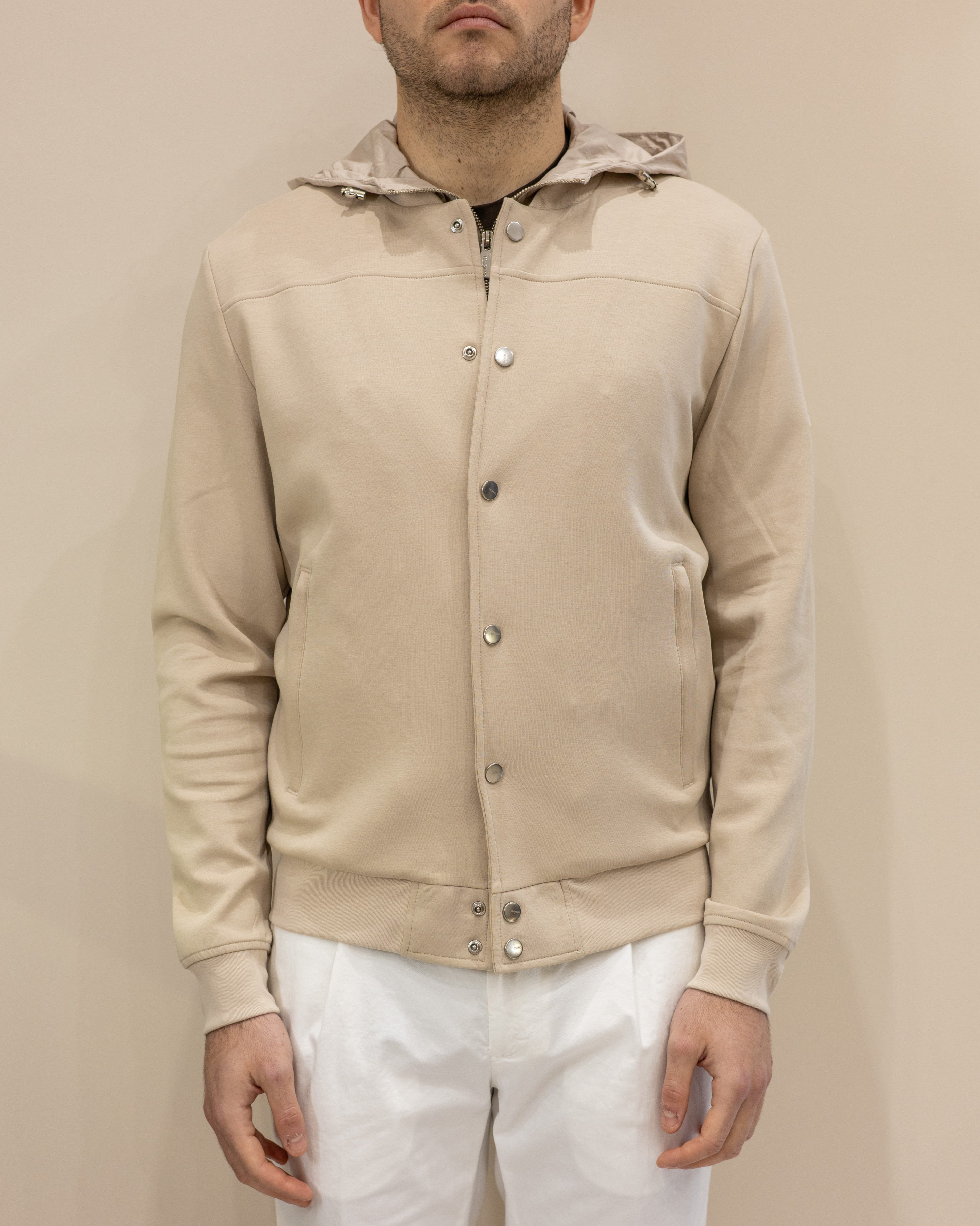Heskimo Bomber in Jersey capp. staccabile - Beige