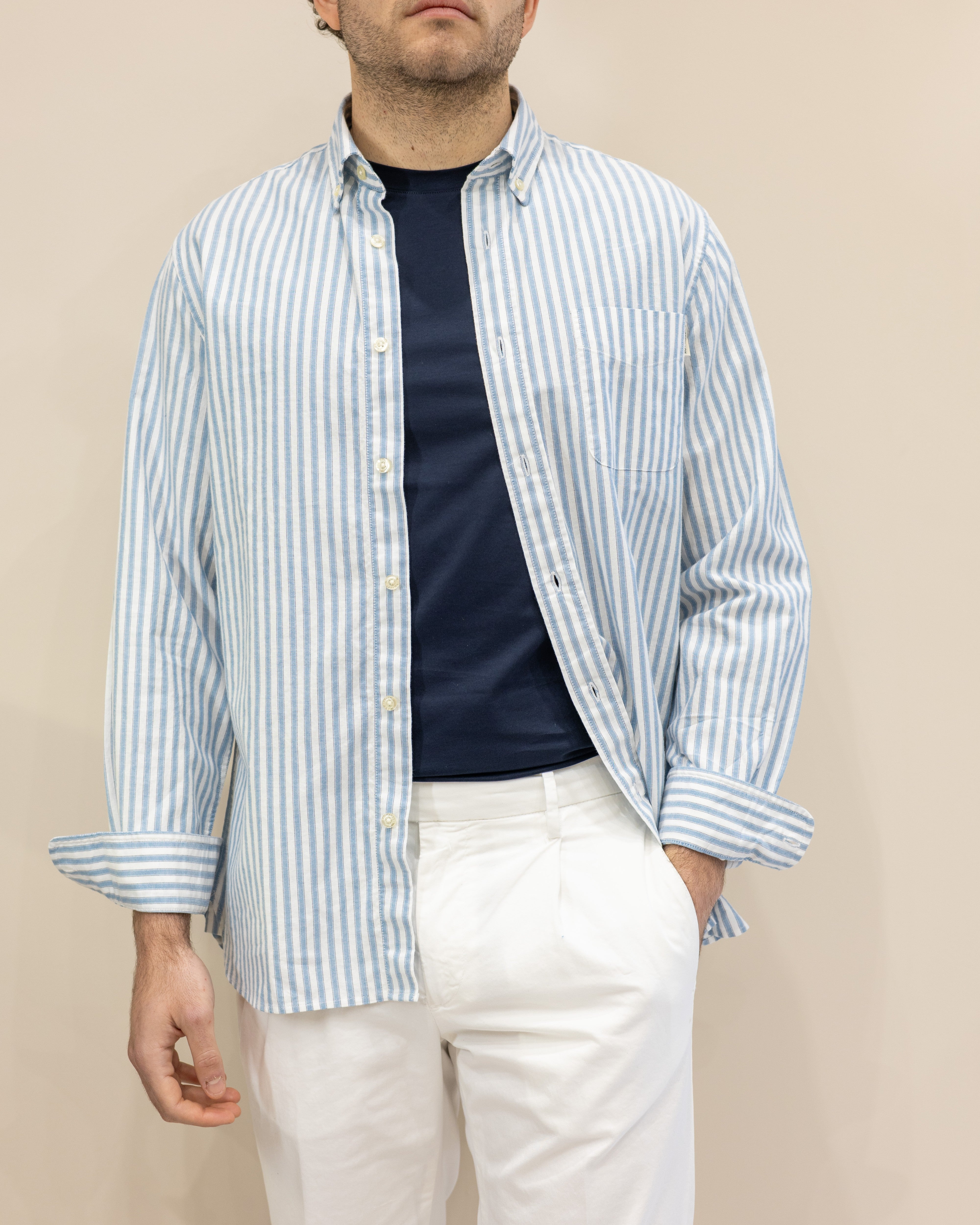 Shirt button down OXFORD NEW stripe - Azzurro