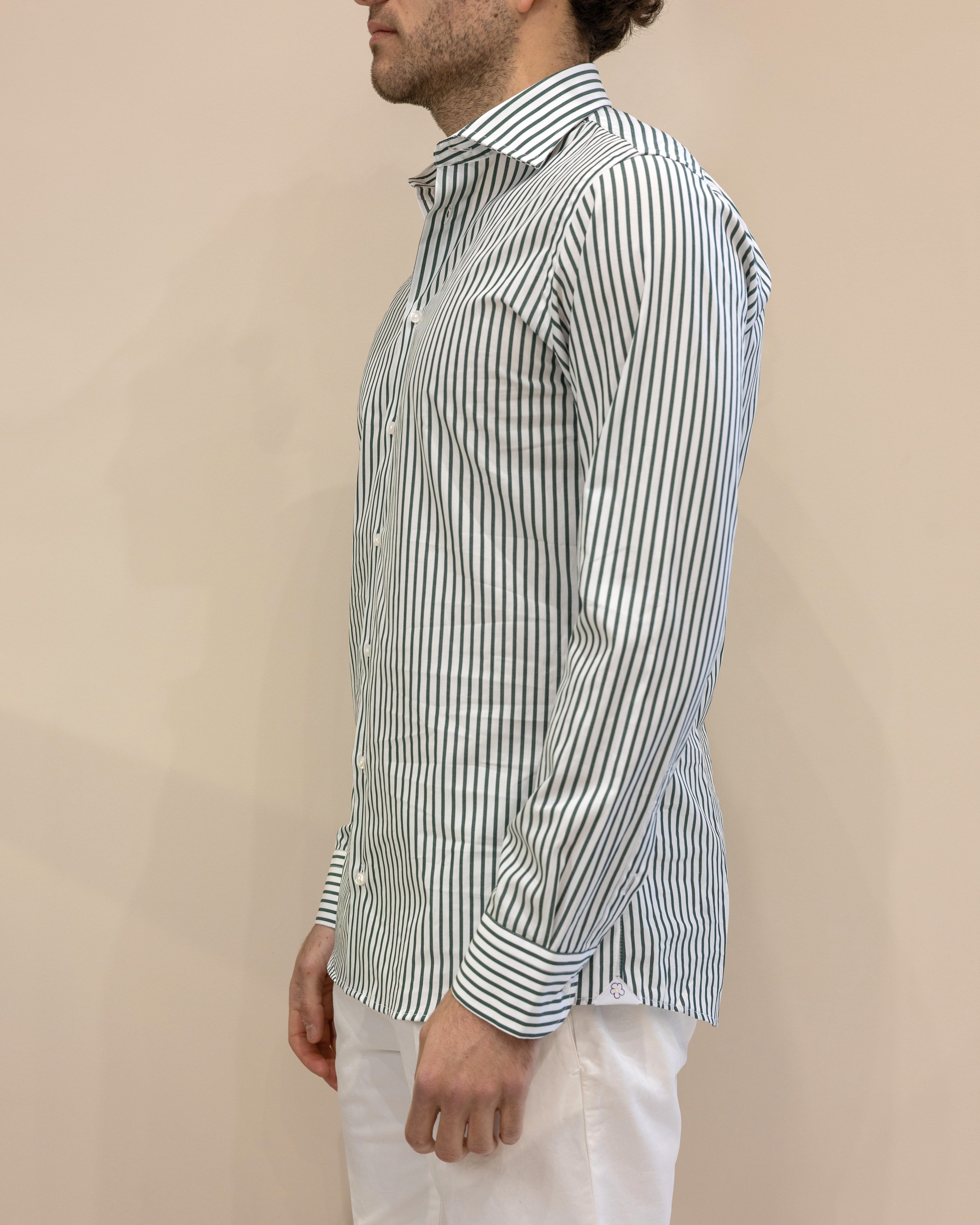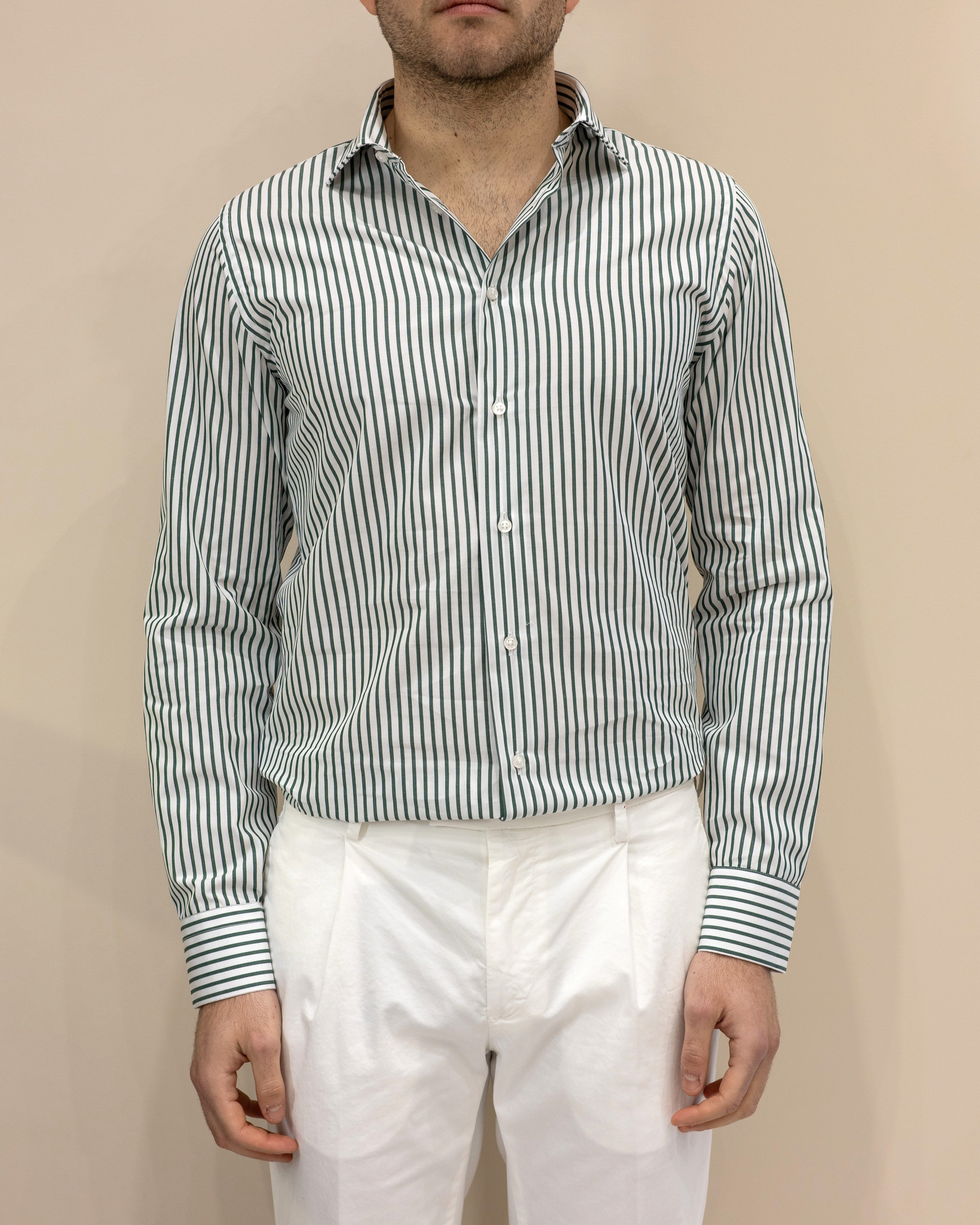 Camicia a Righe Larghe Bianco/Verde – 100% Cotone