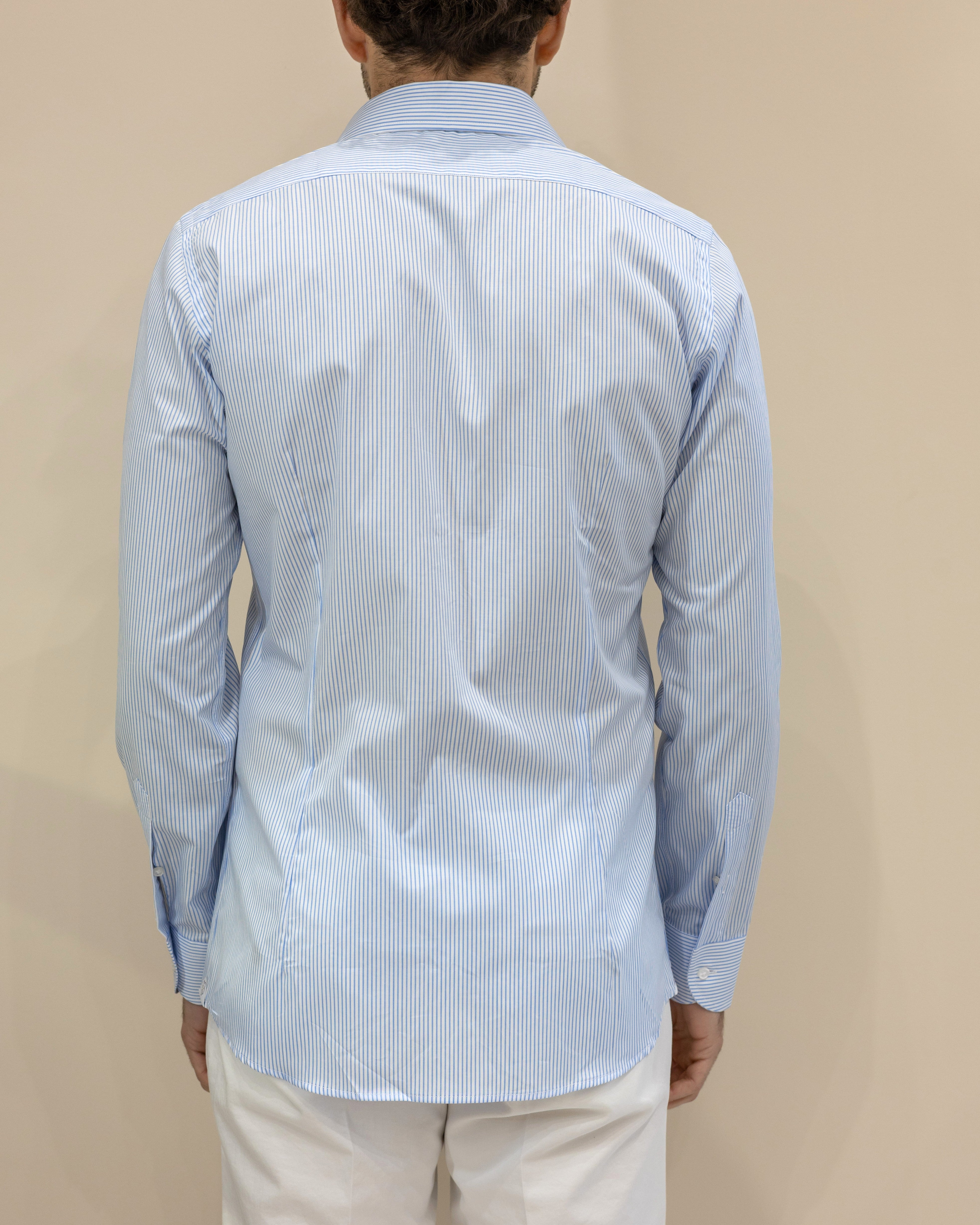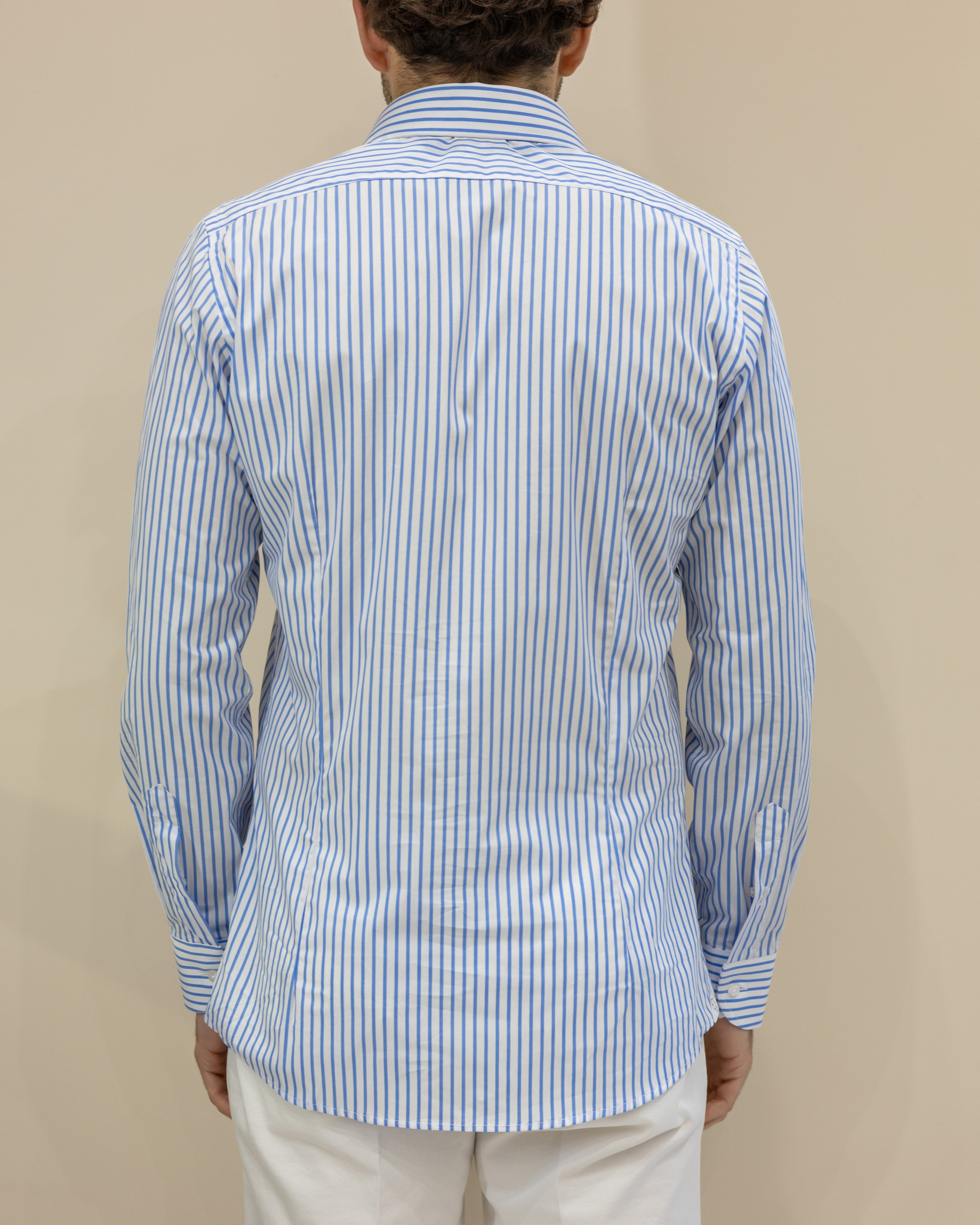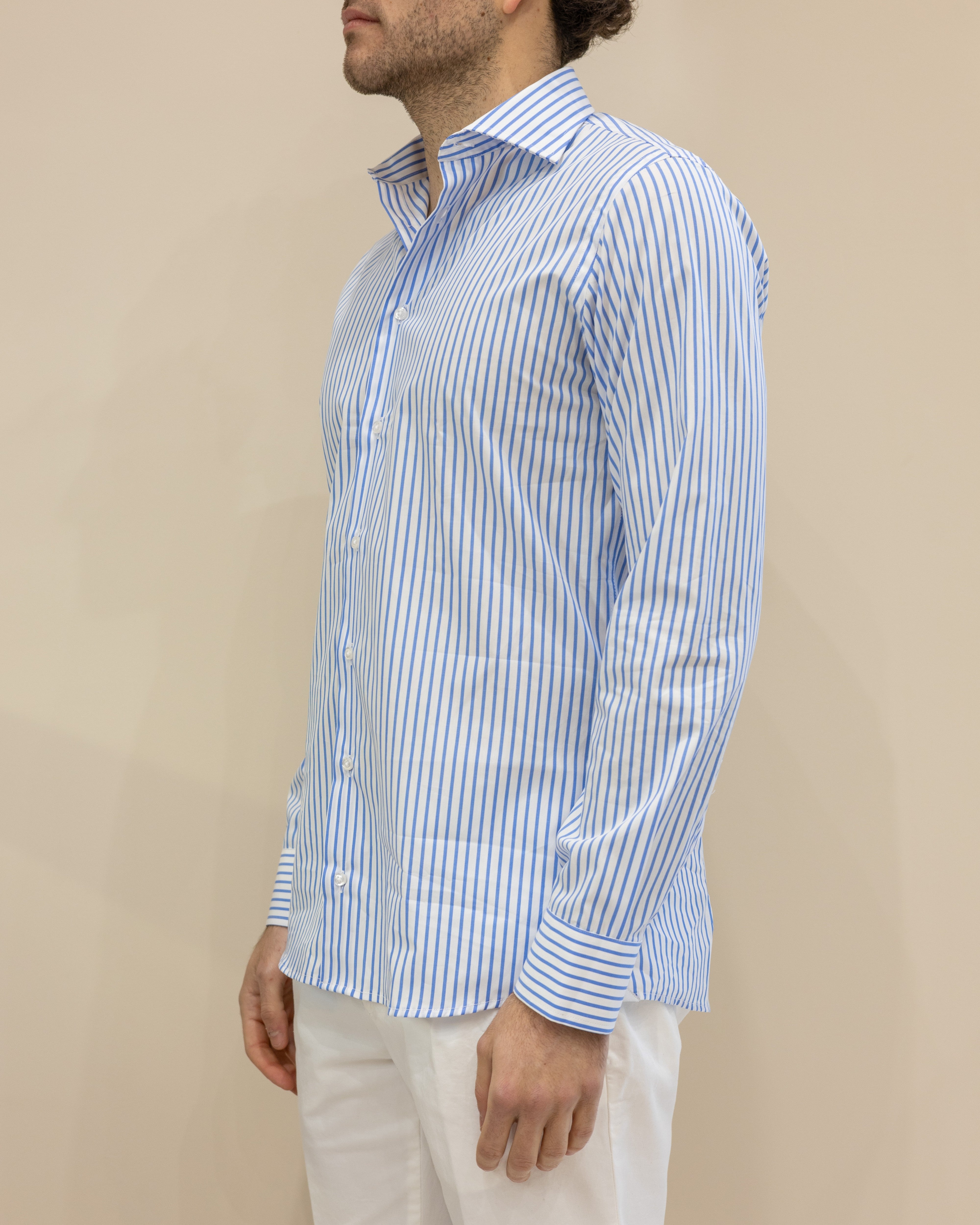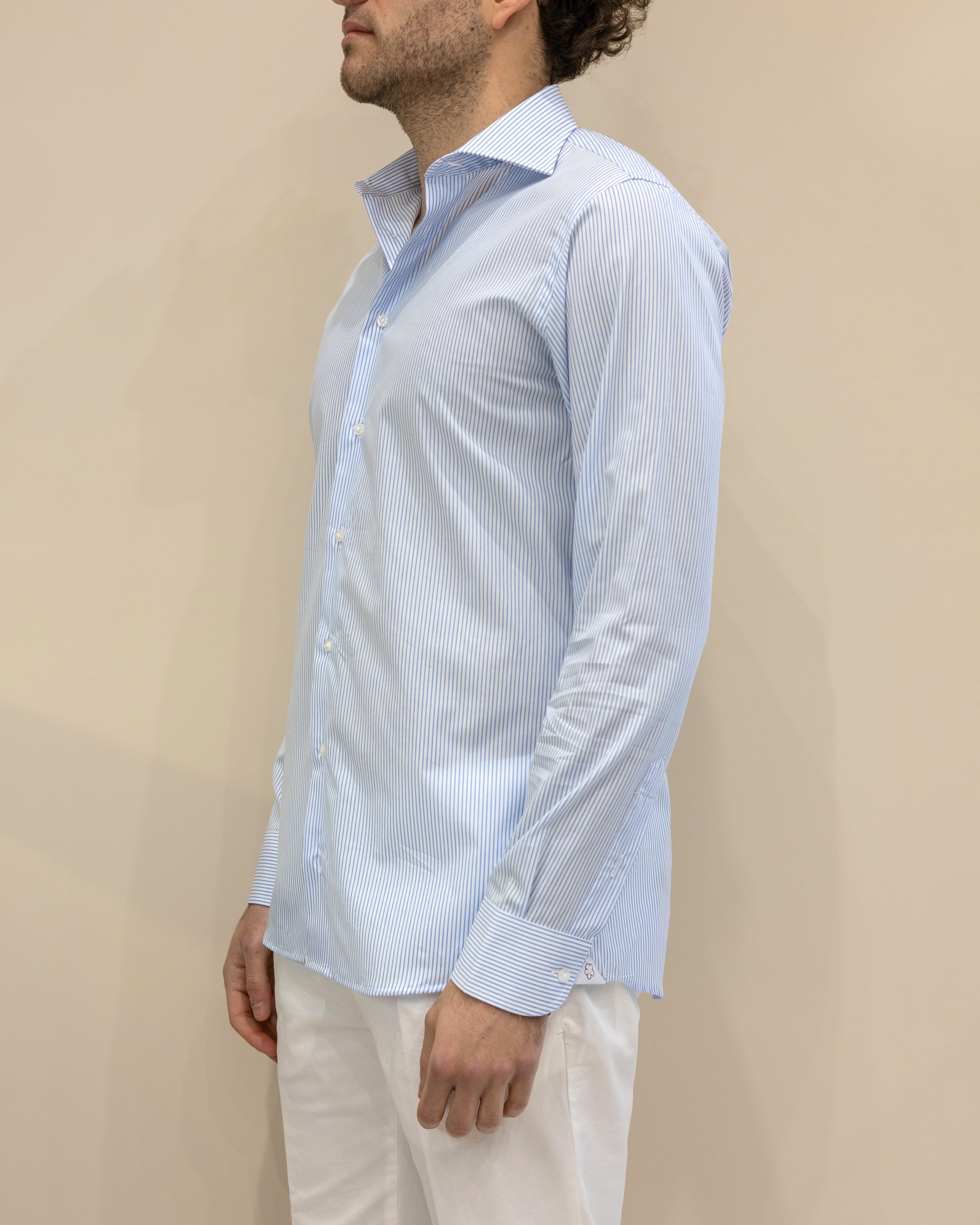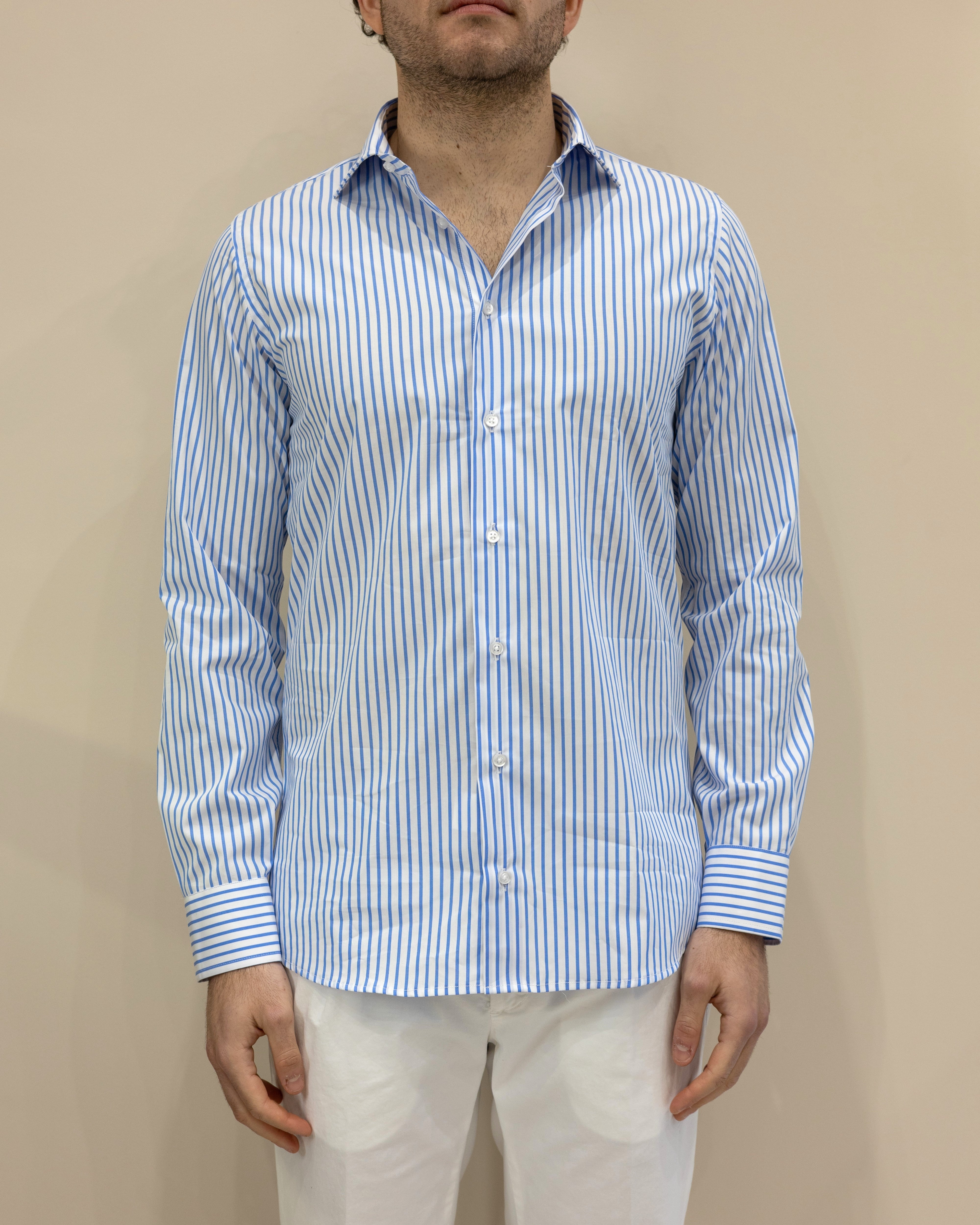 Camicia a Righe Strette Bianco/Celeste – 100% Cotone