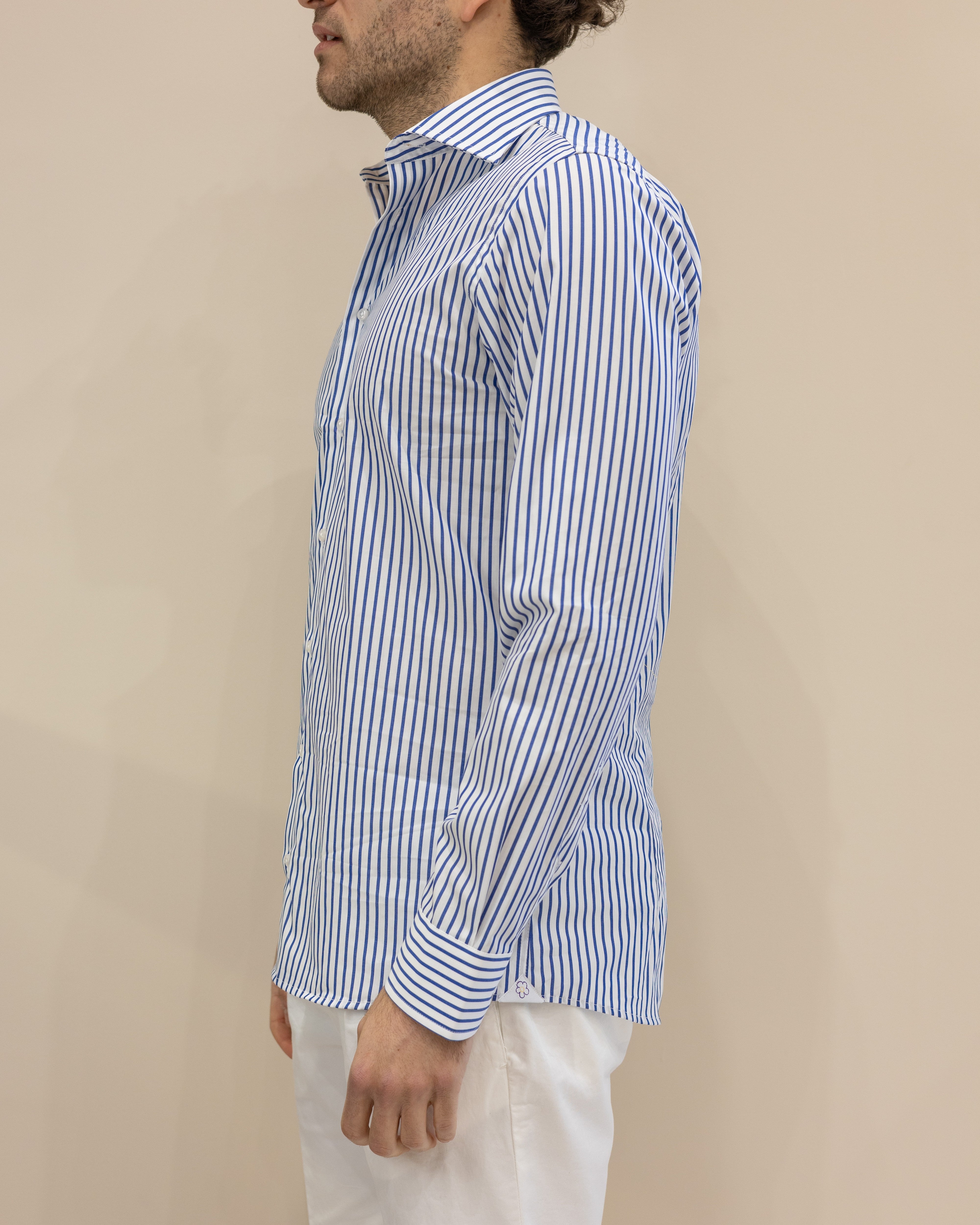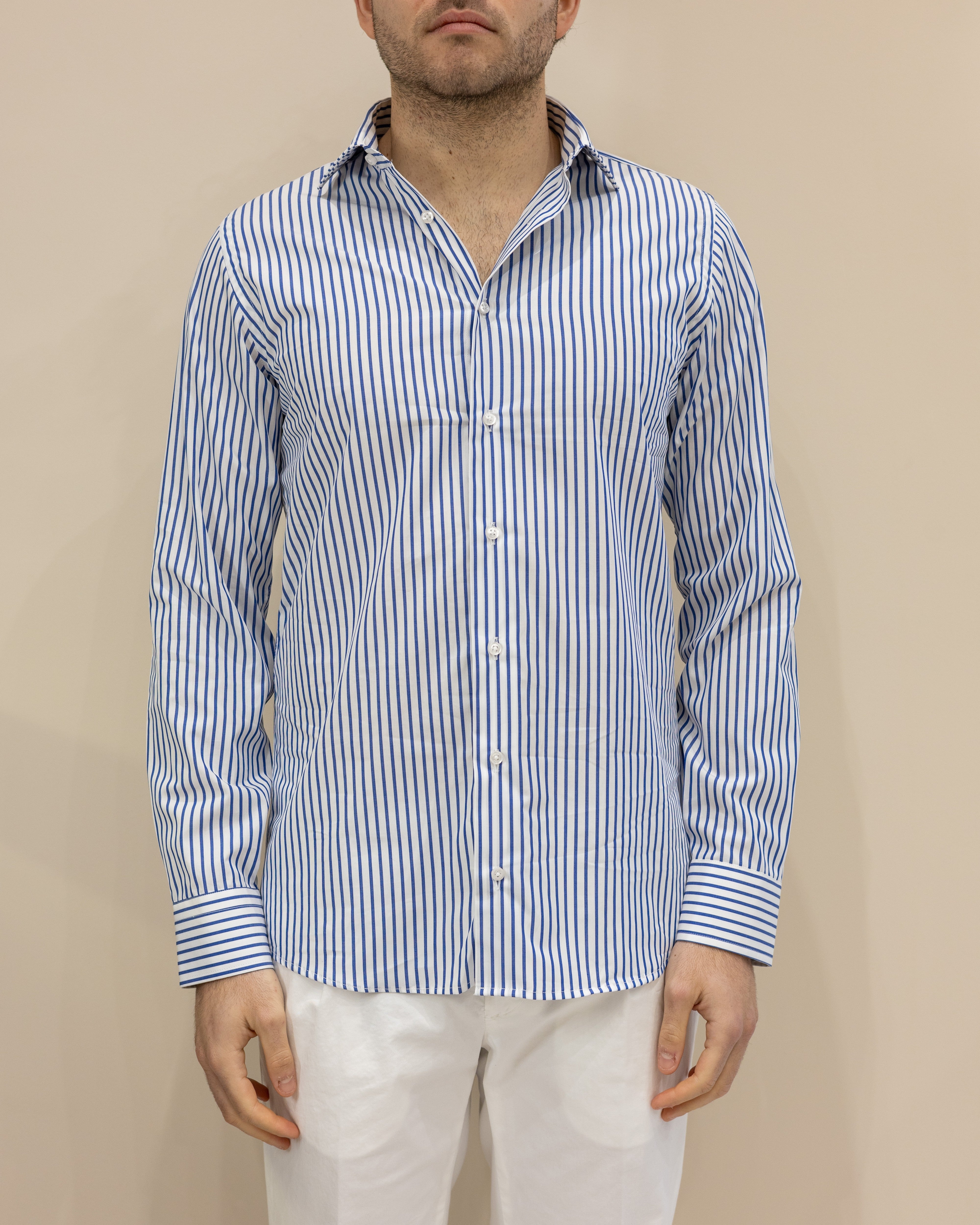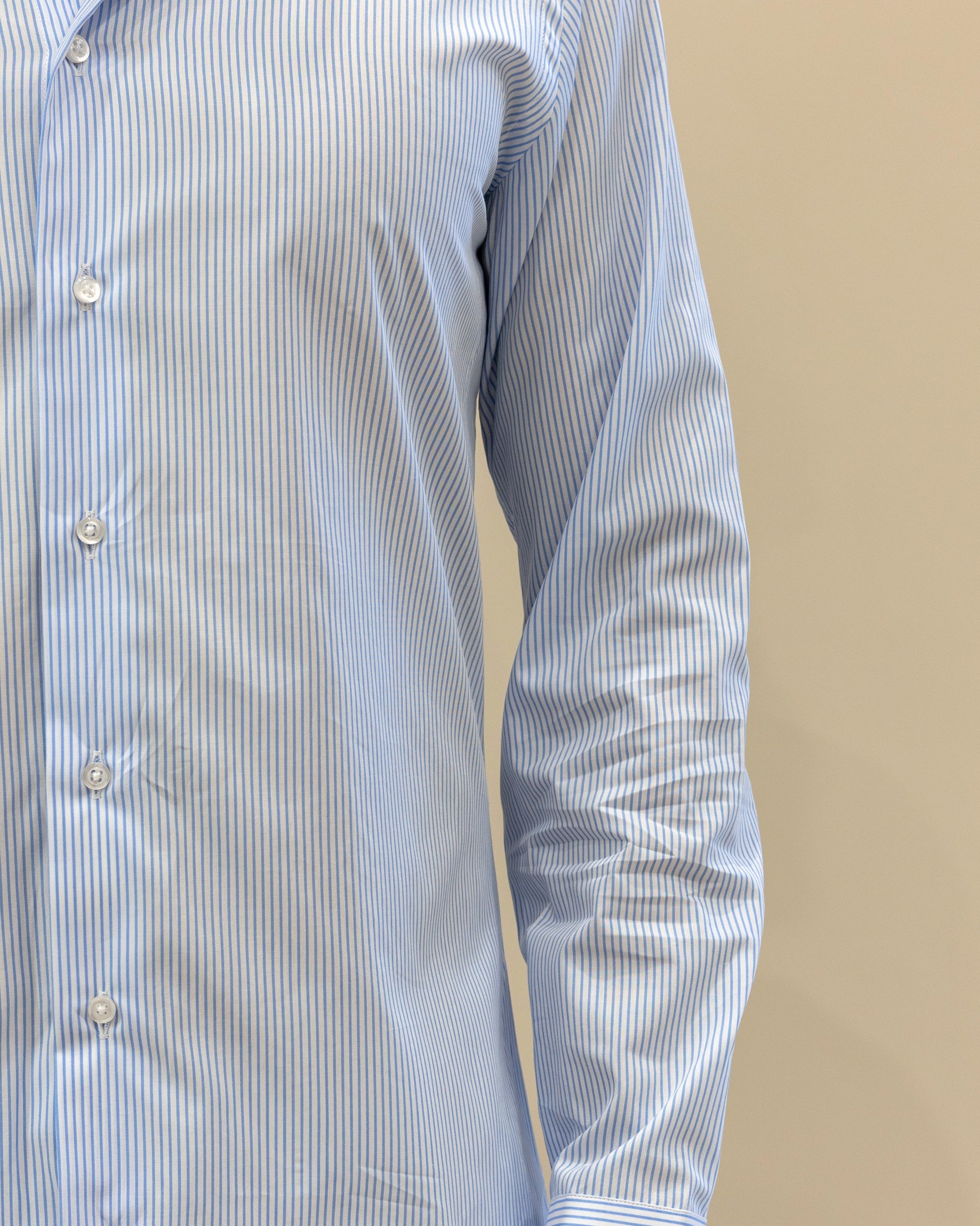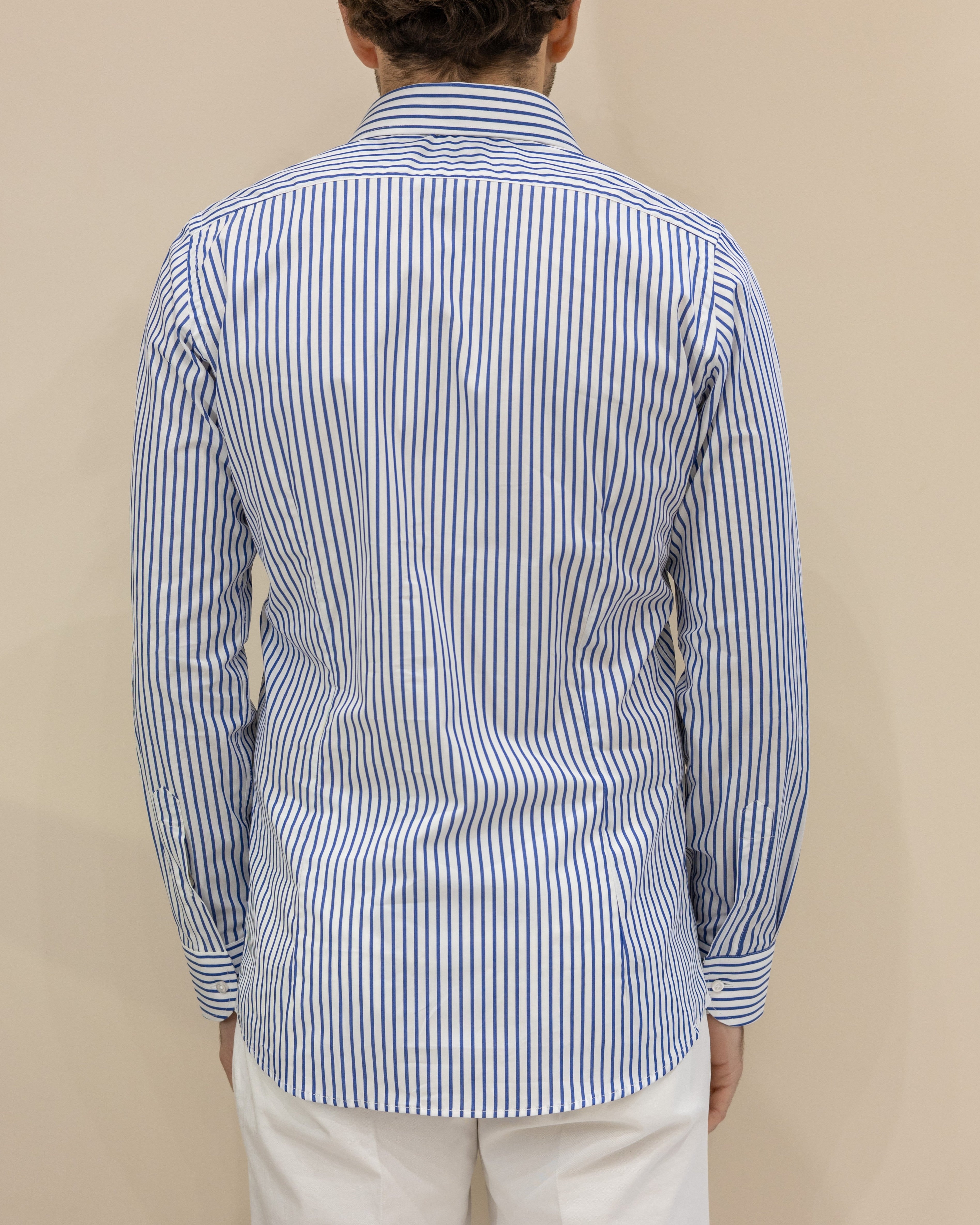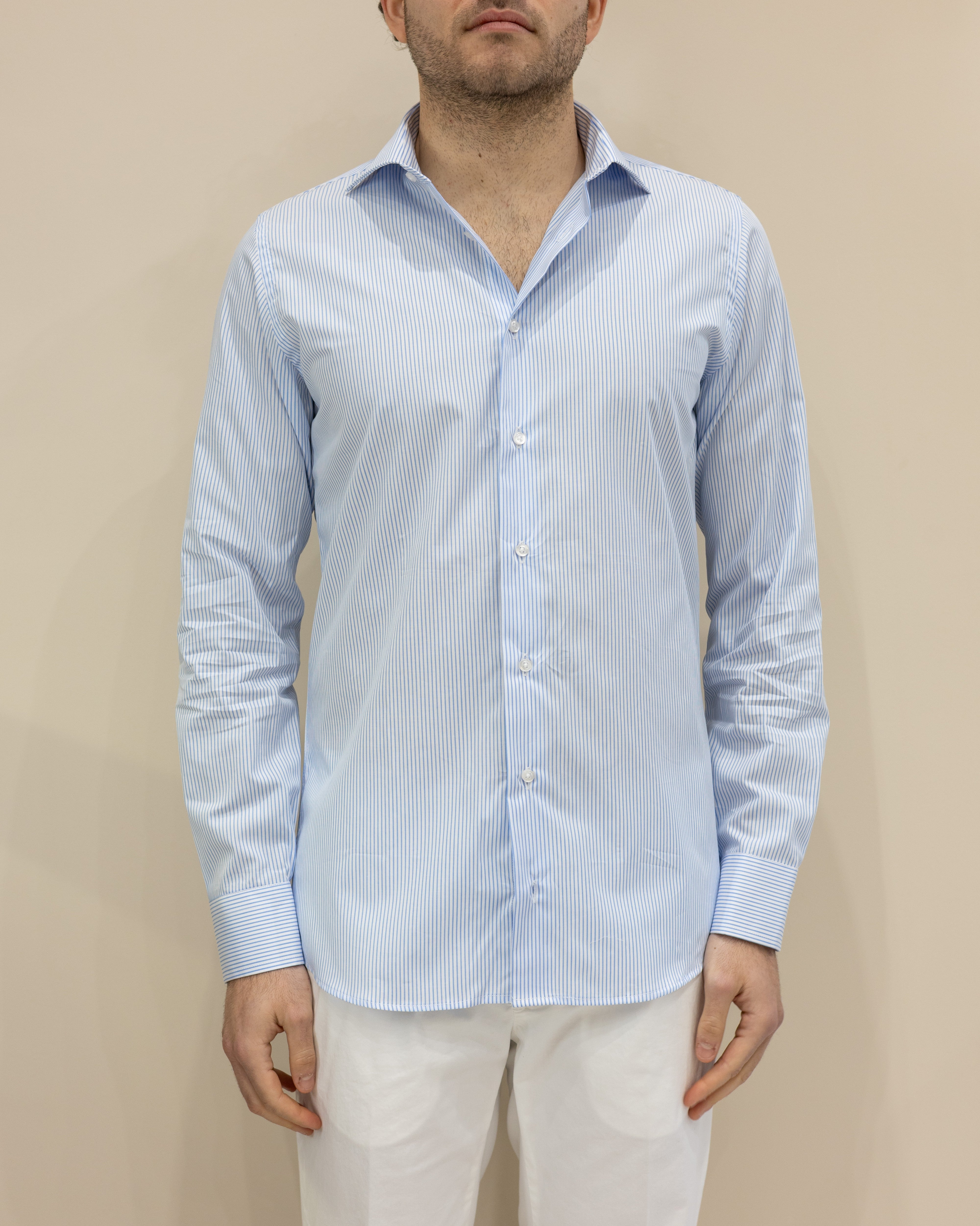 Camicia a Righe Strette Bianco/Celeste – 100% Cotone