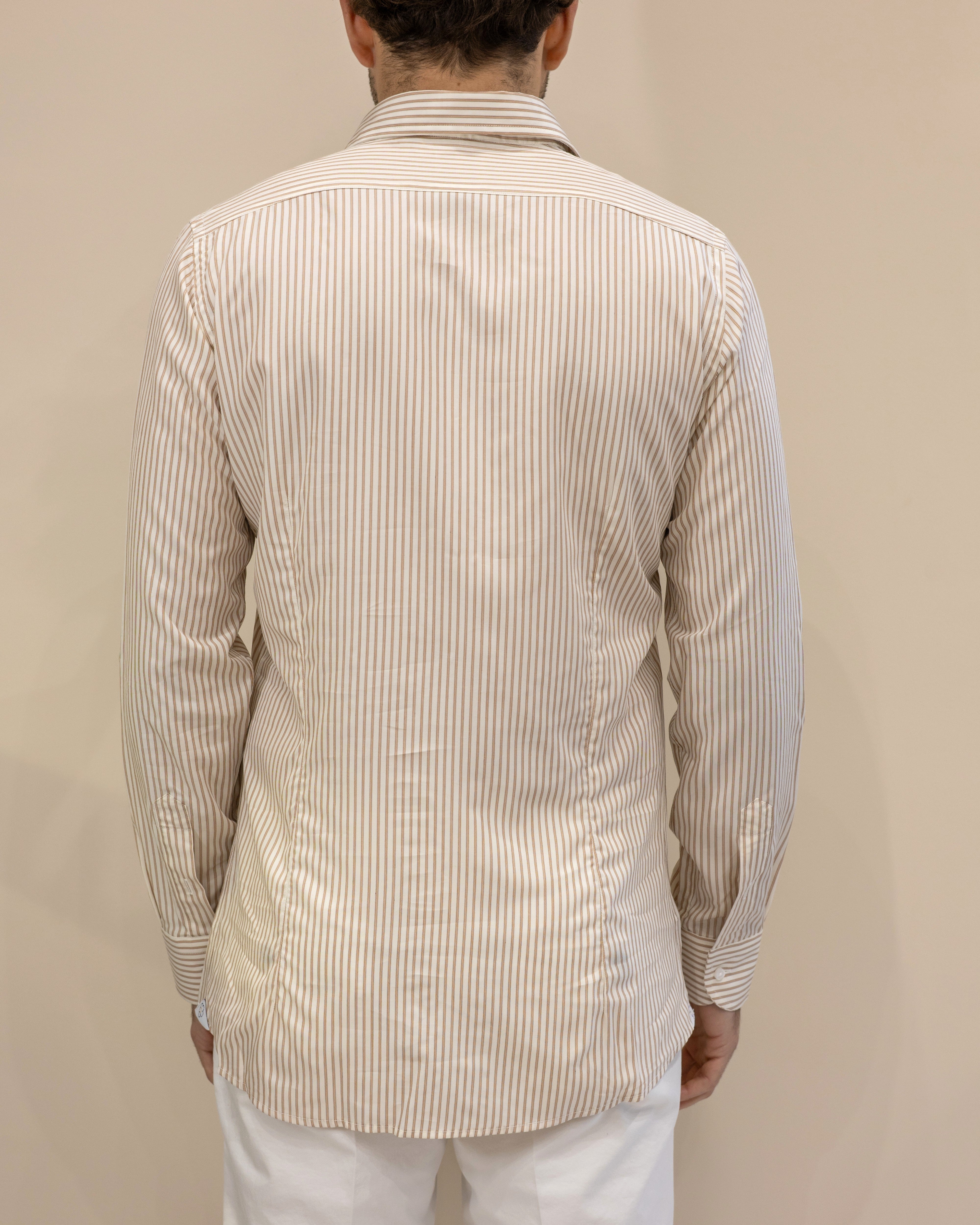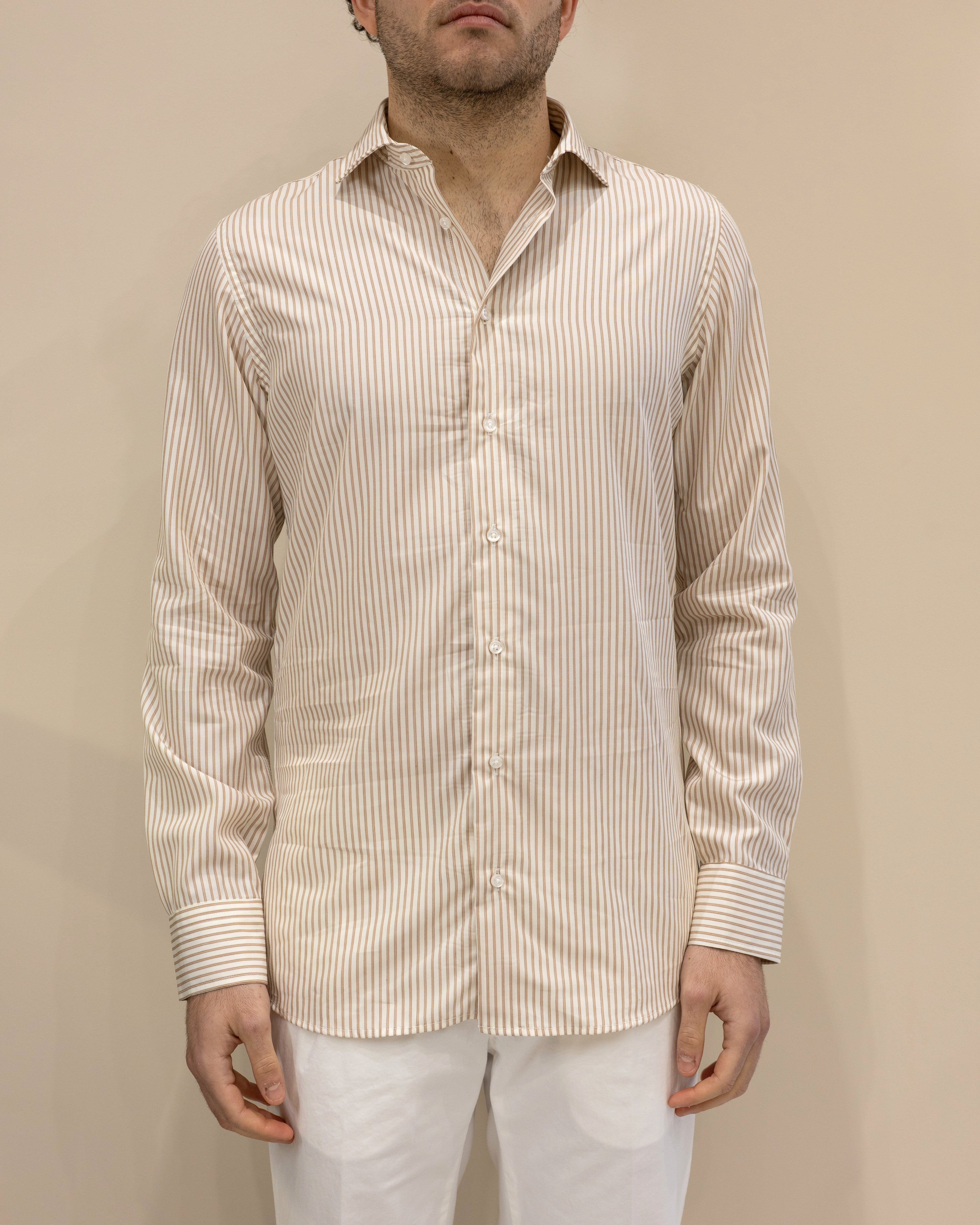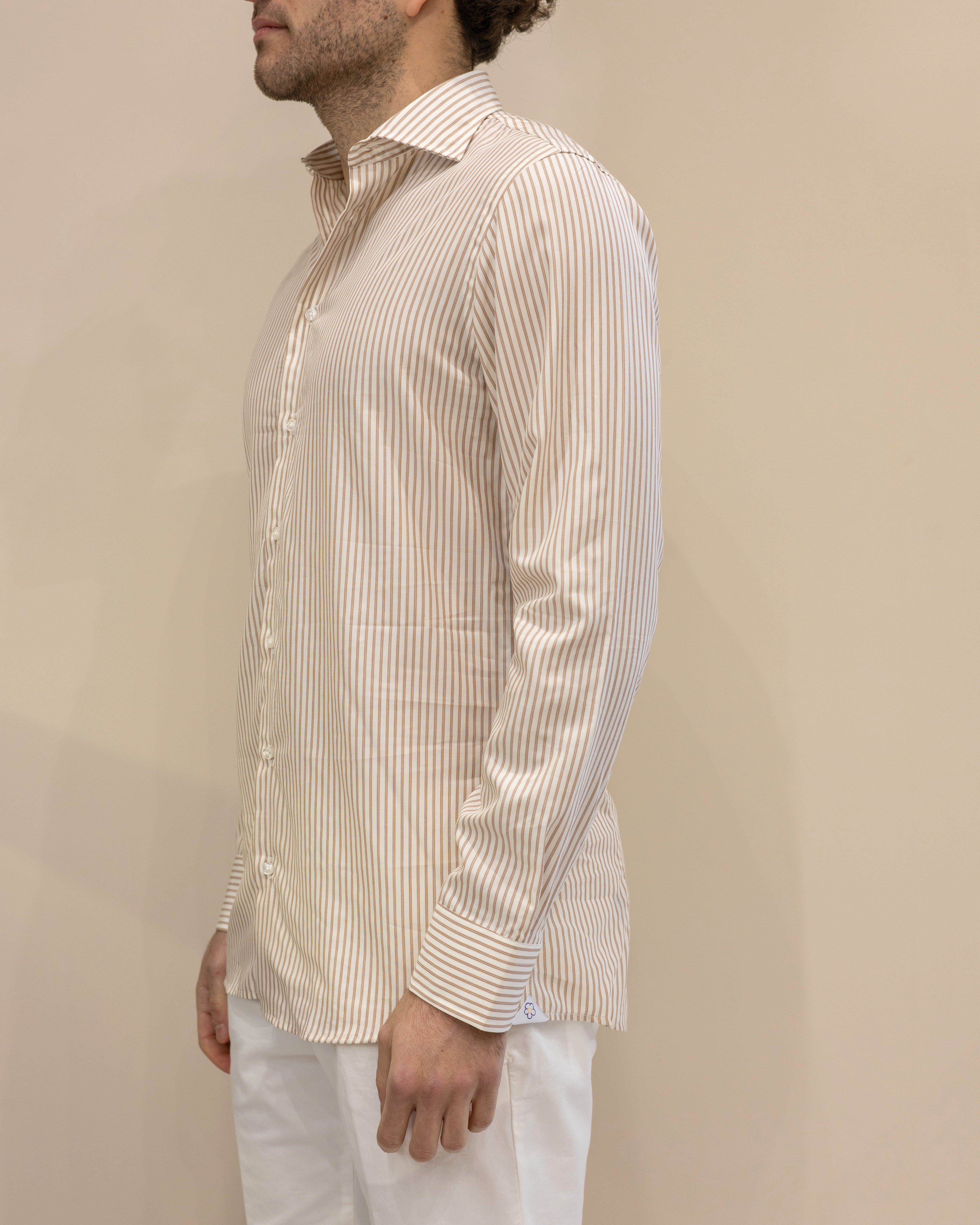 Camicia a Righe Bianco/Ruggine Vintage – 100% Cotone