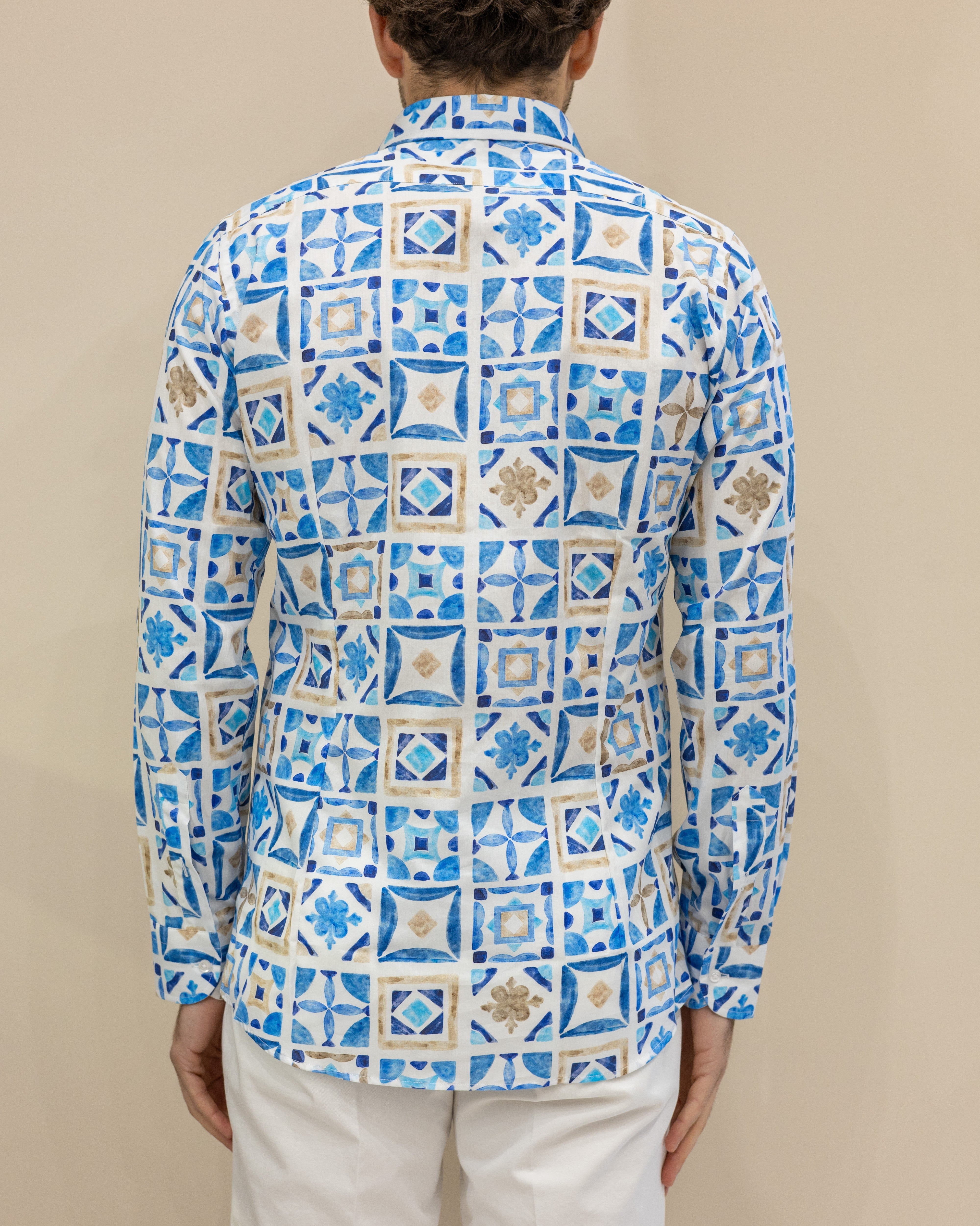Camicia in cotone stampa maioliche mediterranee - Azzurro