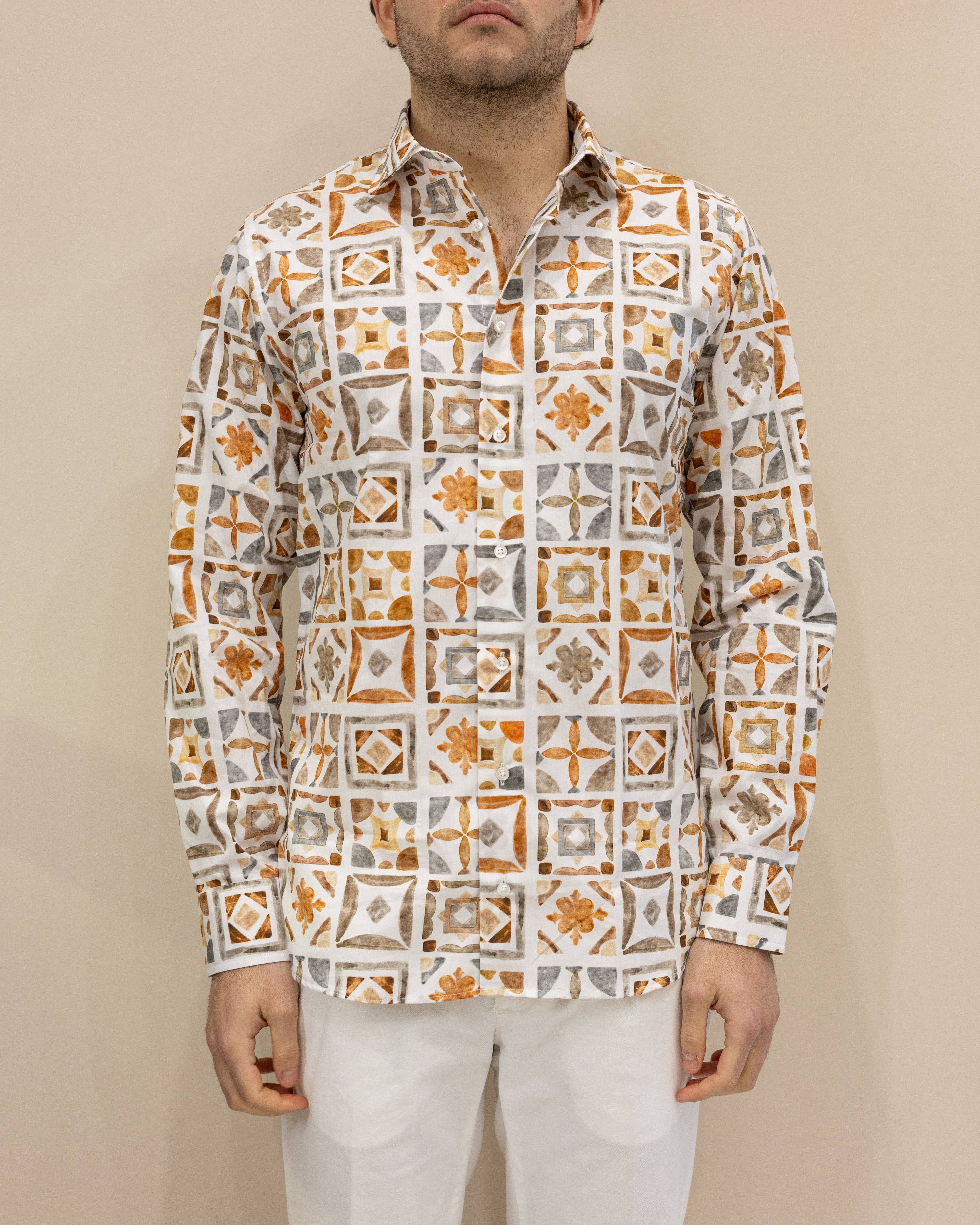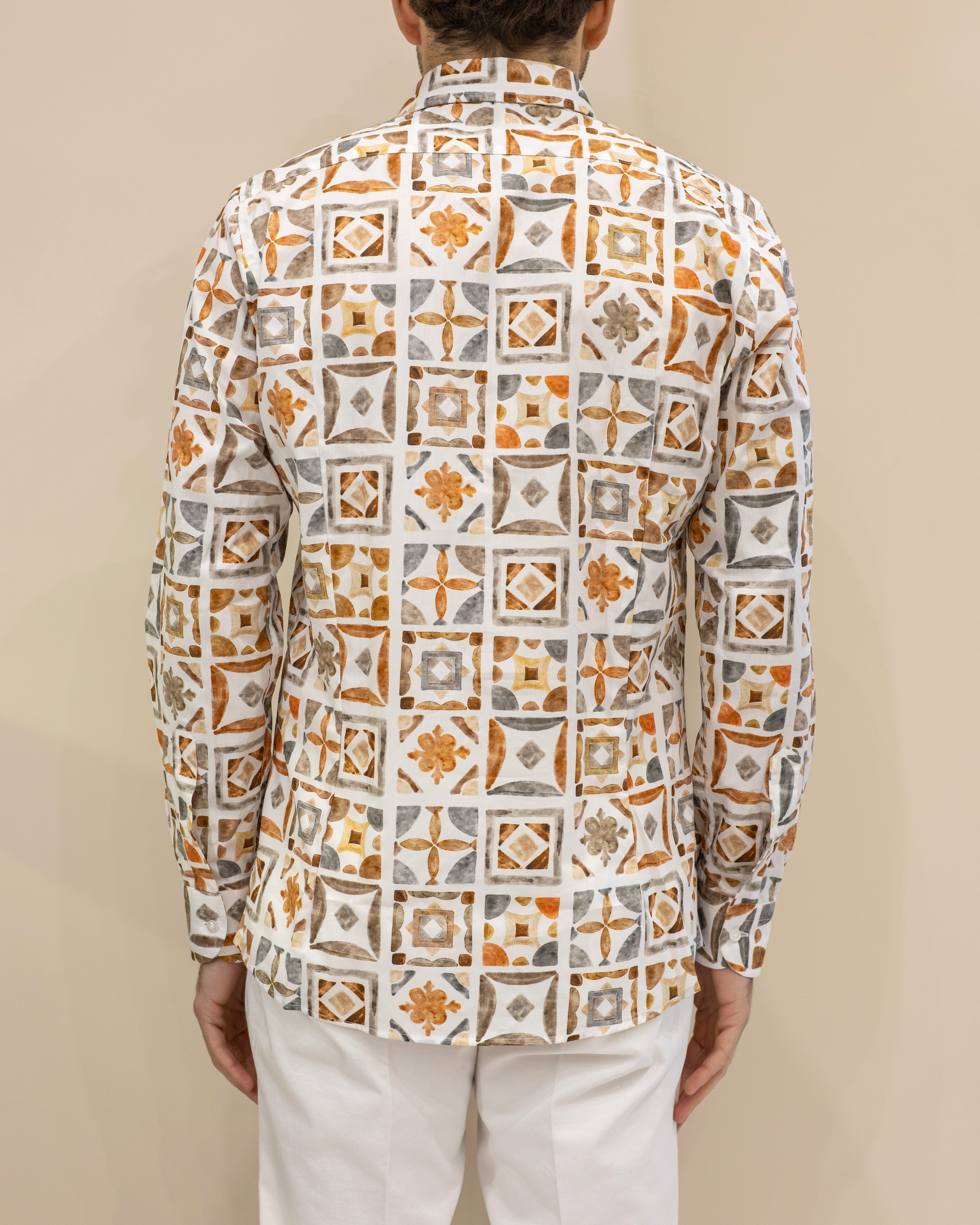 Camicia in cotone stampa maioliche mediterranee