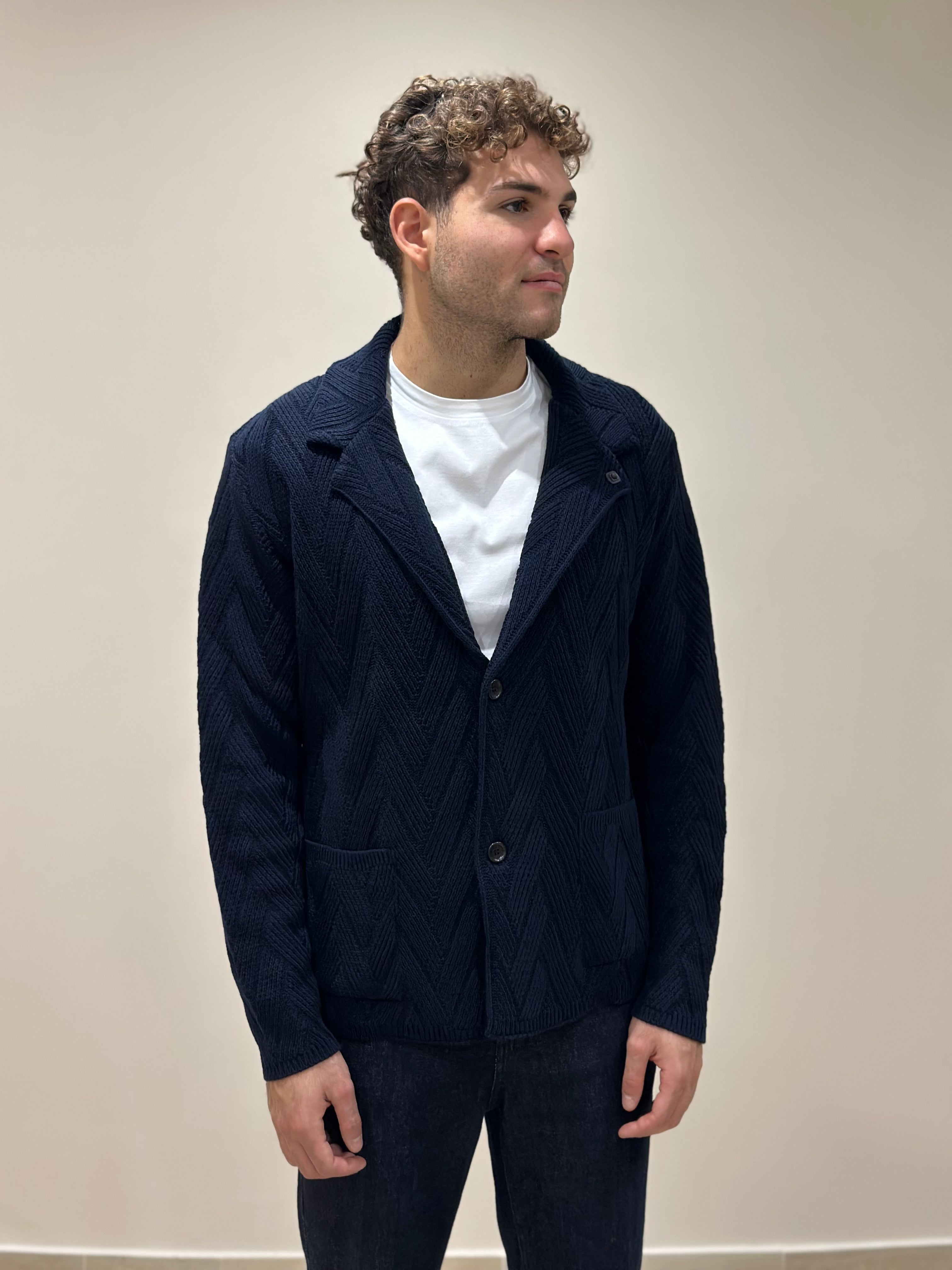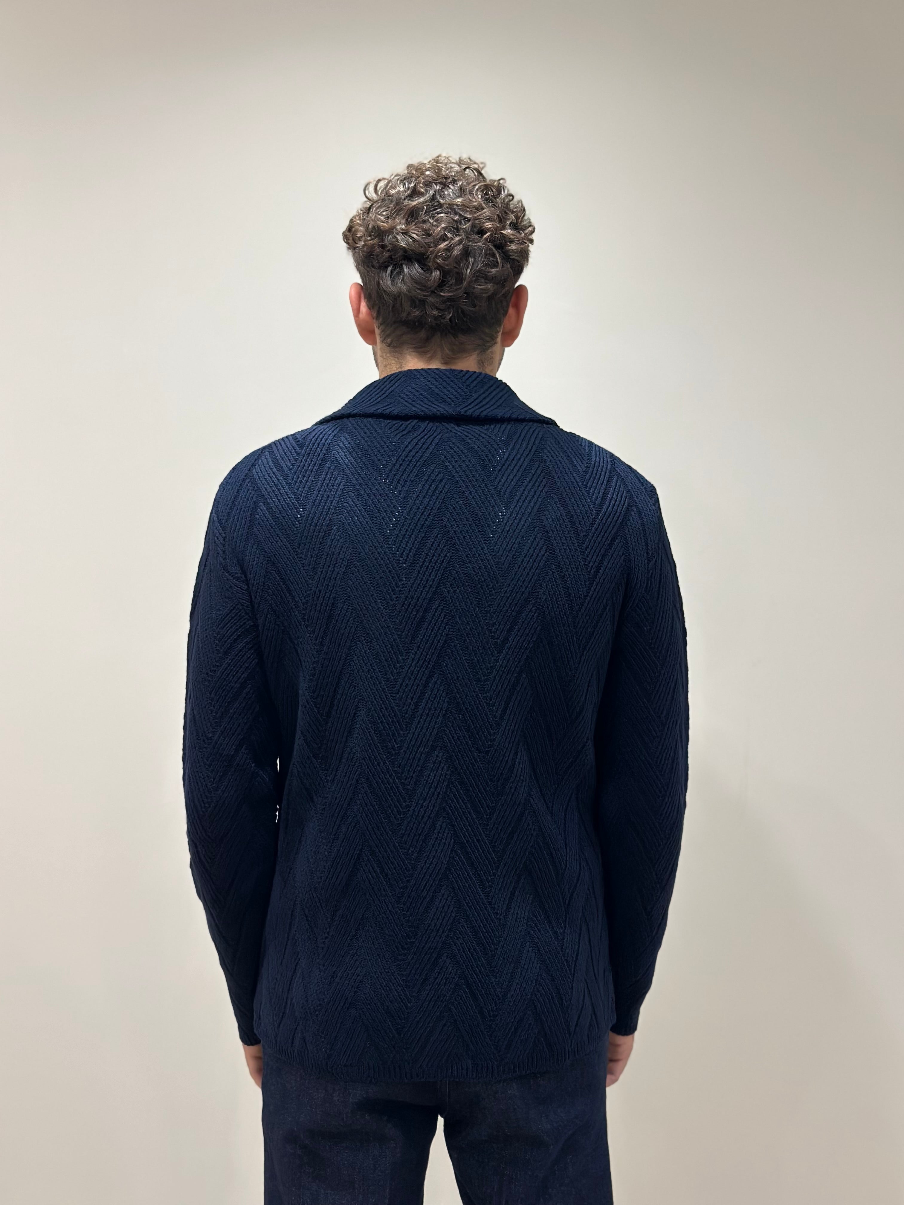 CARDIGAN GIACCA IN MAGLIA TRAMATA DI MISTO LANA BLU NAVY - OUTFIT ITALY