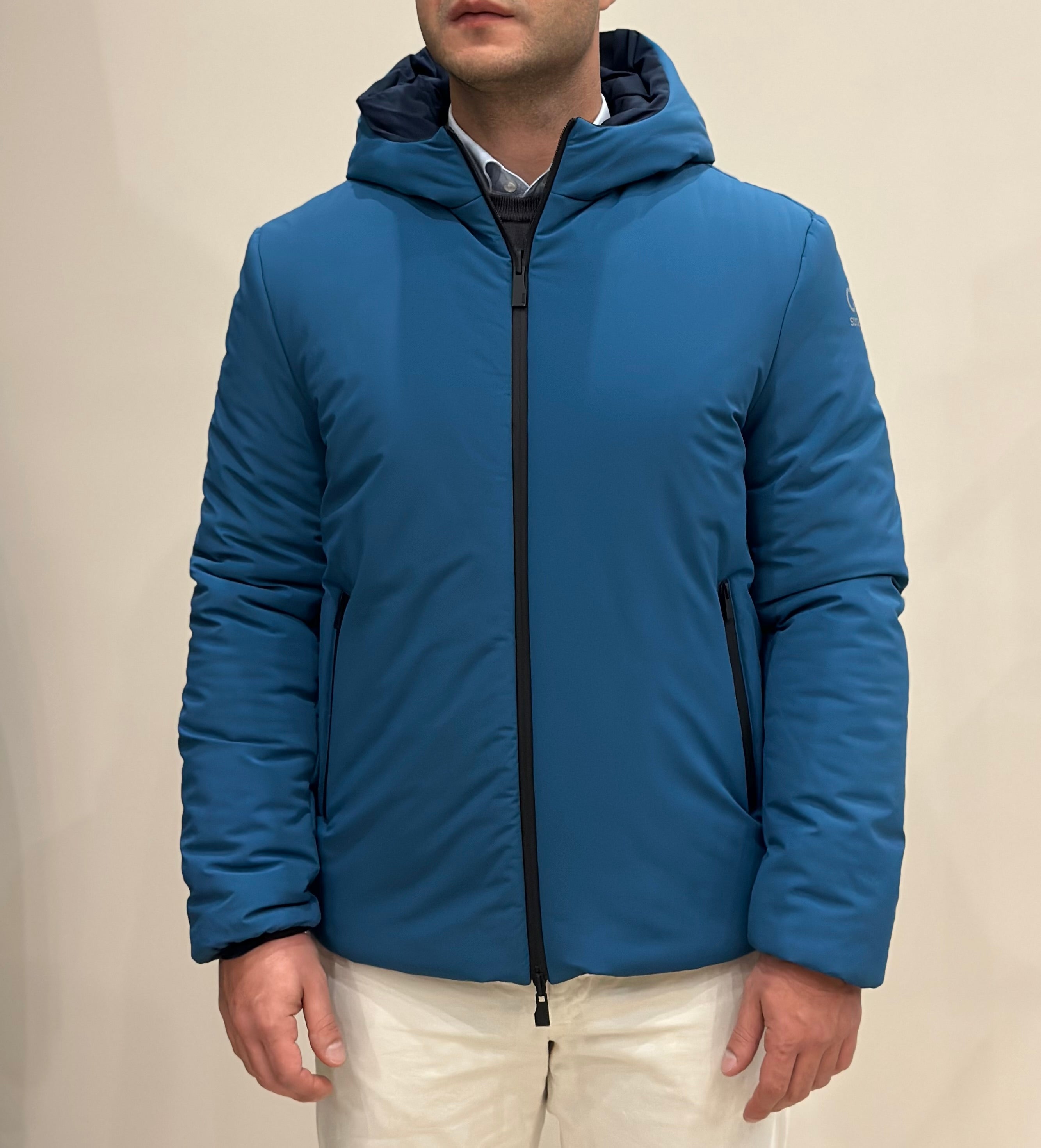 SUNS Giubbotto uomo Delhi midi reversibile con cappuccio - PETROL/DARK BLUE_S