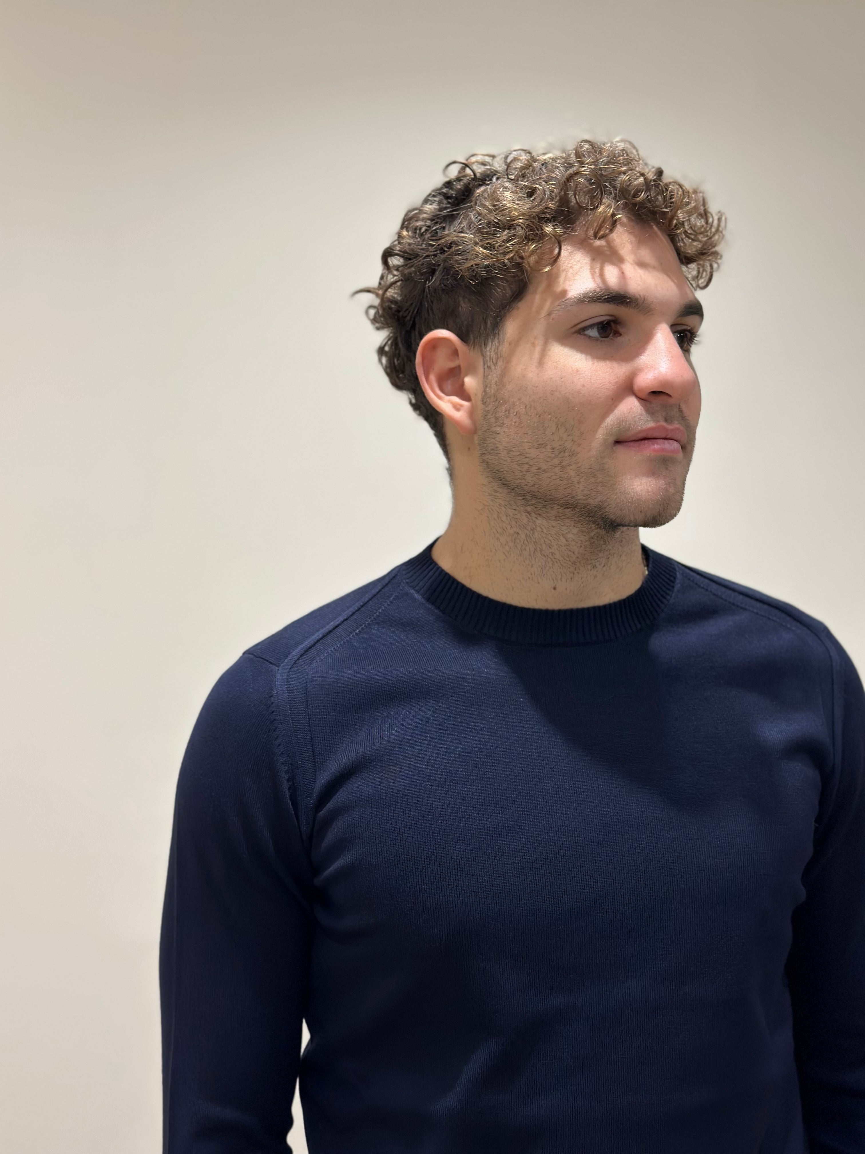 Girocollo in Lana Merino Tinta Acidata Navy - Privati Firenze