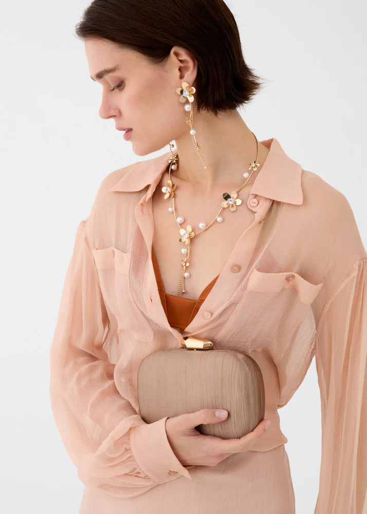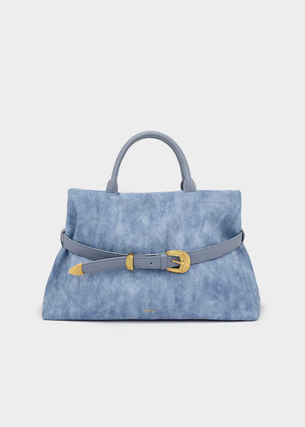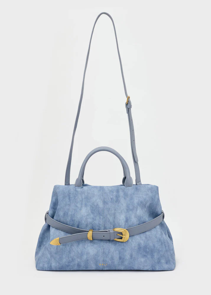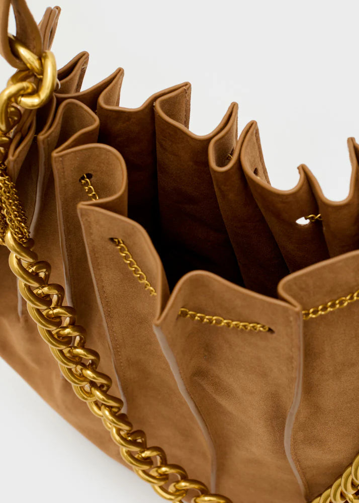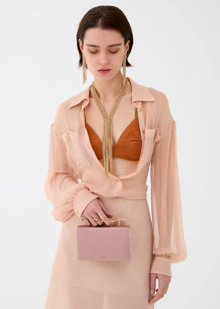 Set Coordinato Denim Rosa Cipria – Giacca con Rouches e Pantalone Wide Leg