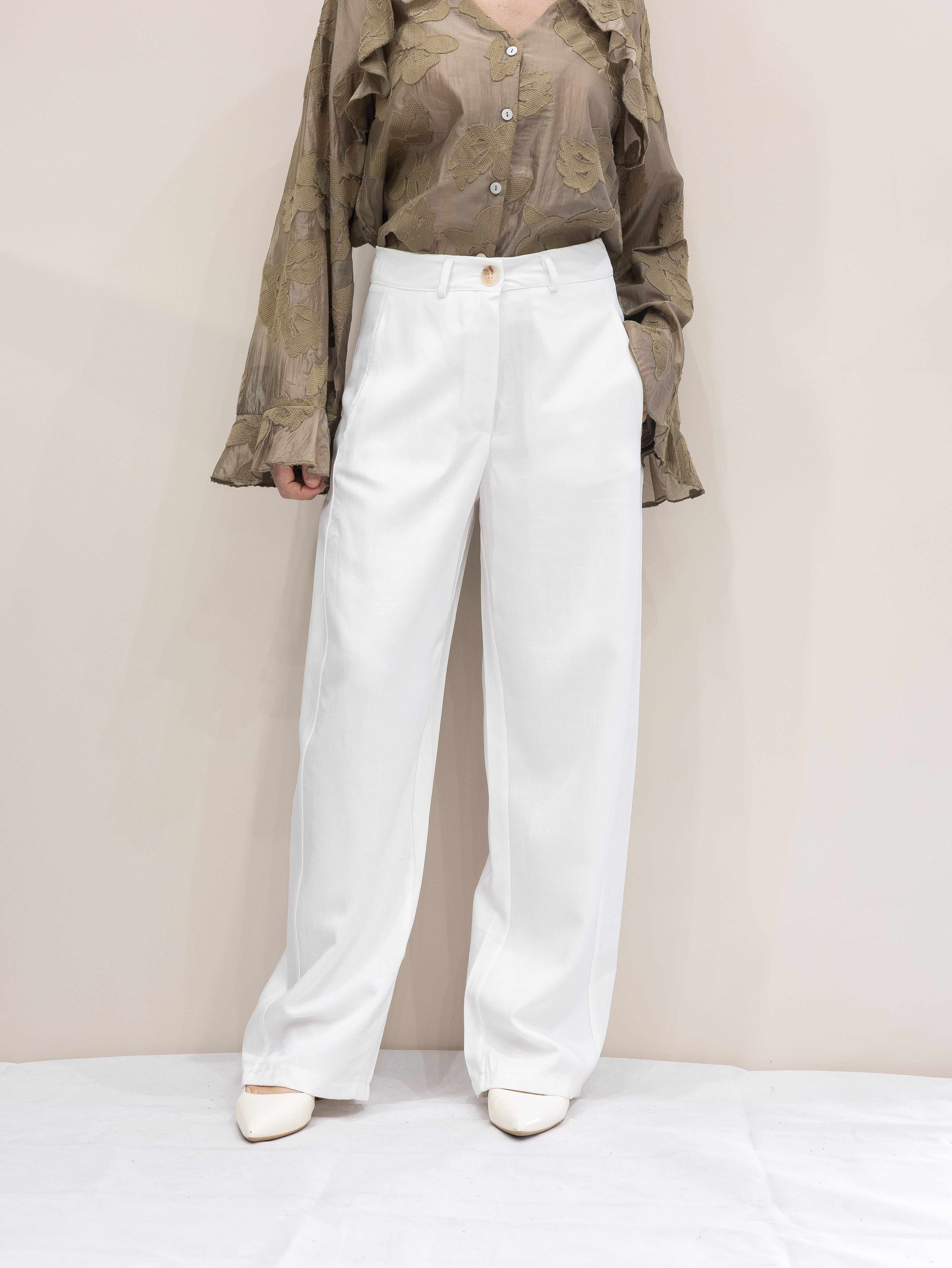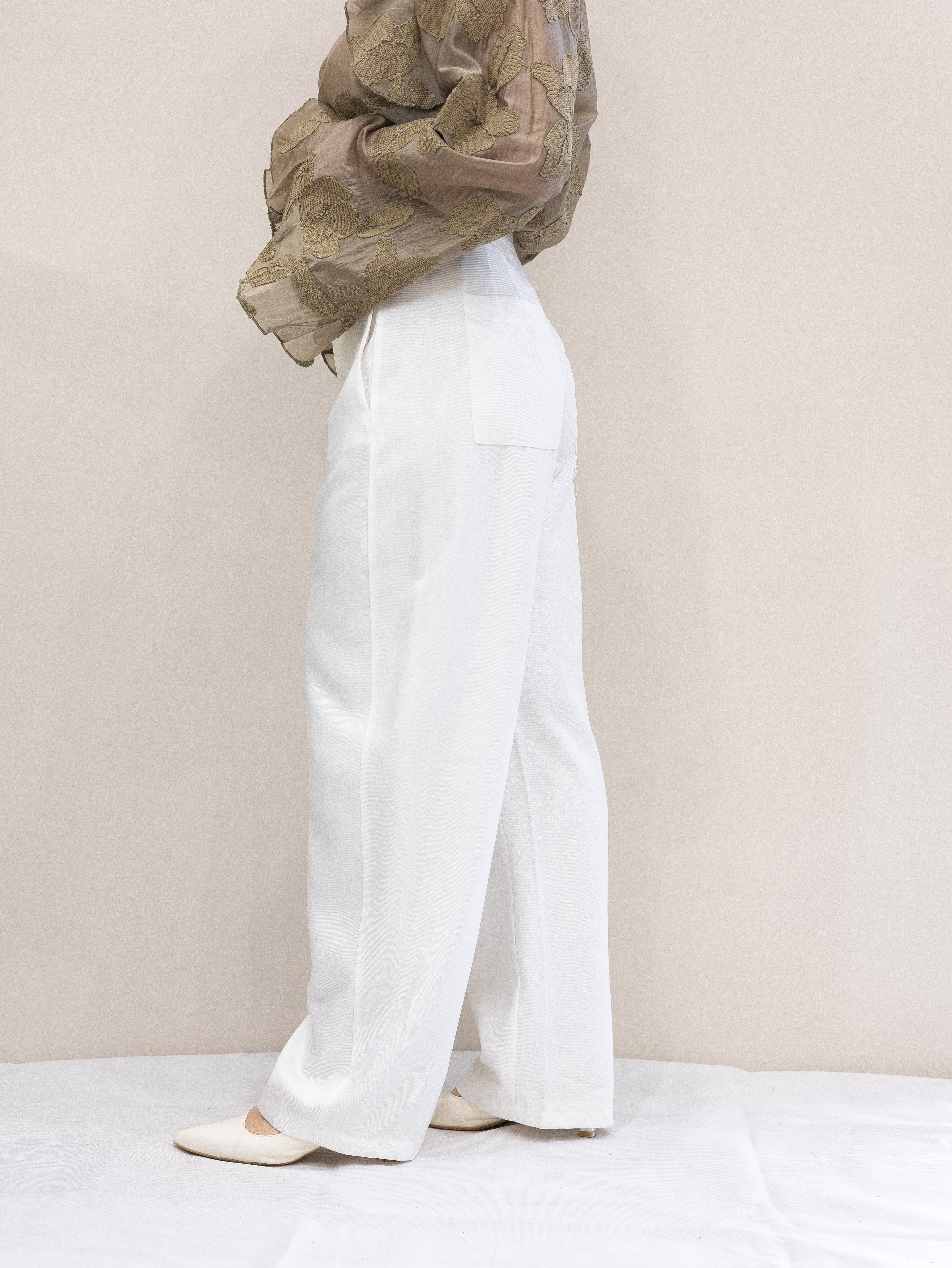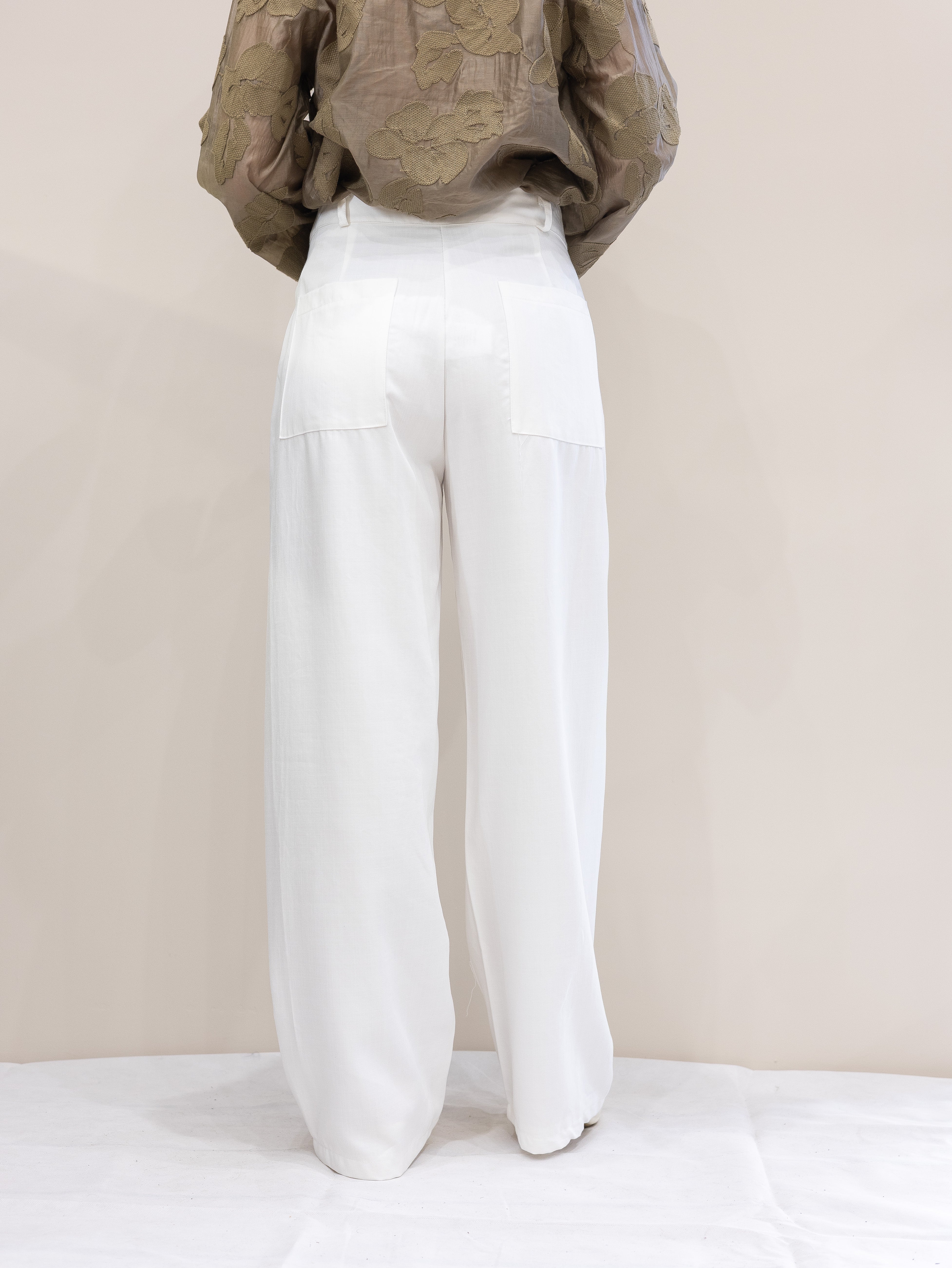 Pantalone Wide Leg Bianco – Vita Alta con Tasche a Toppa Cod.95087