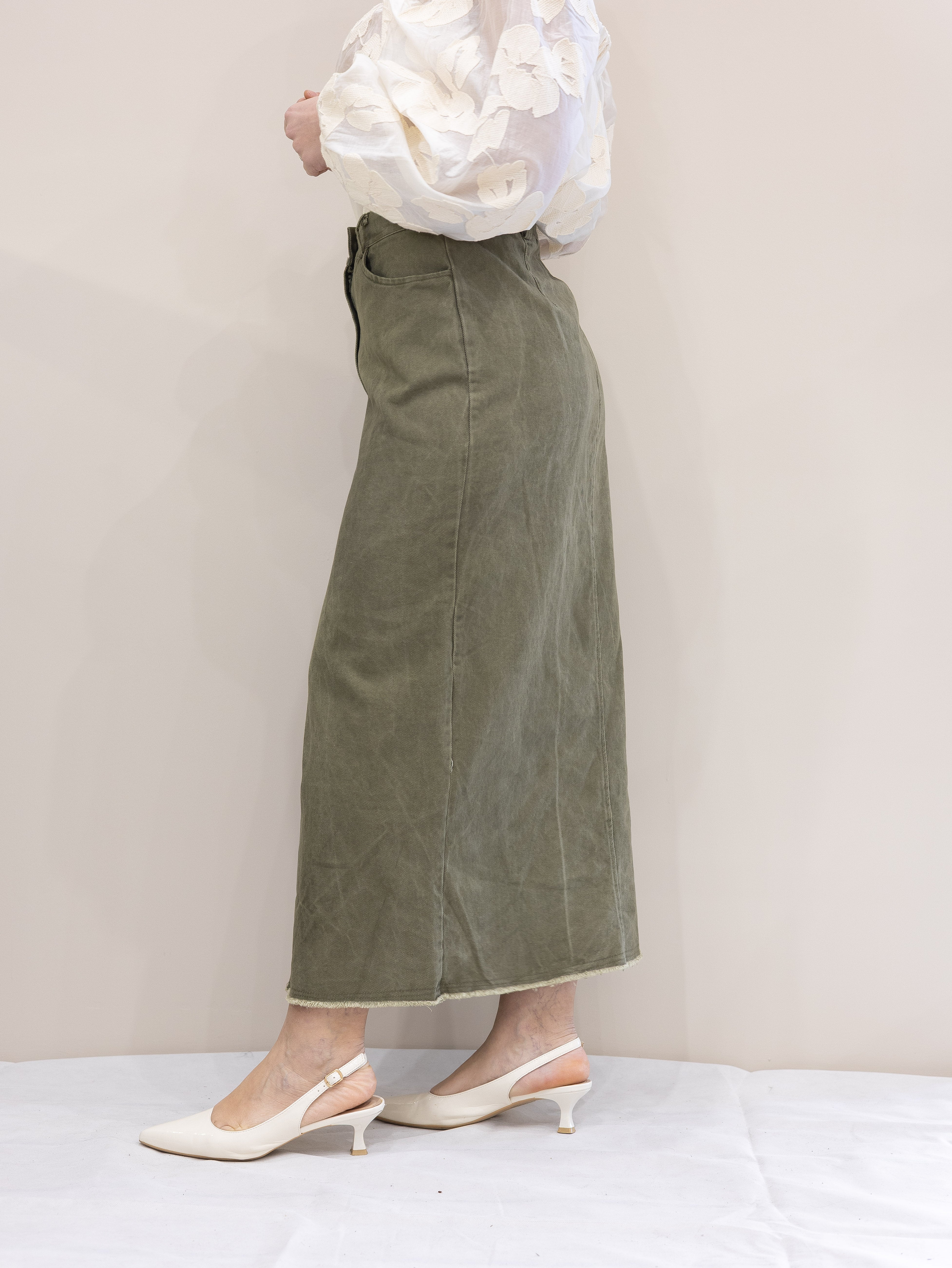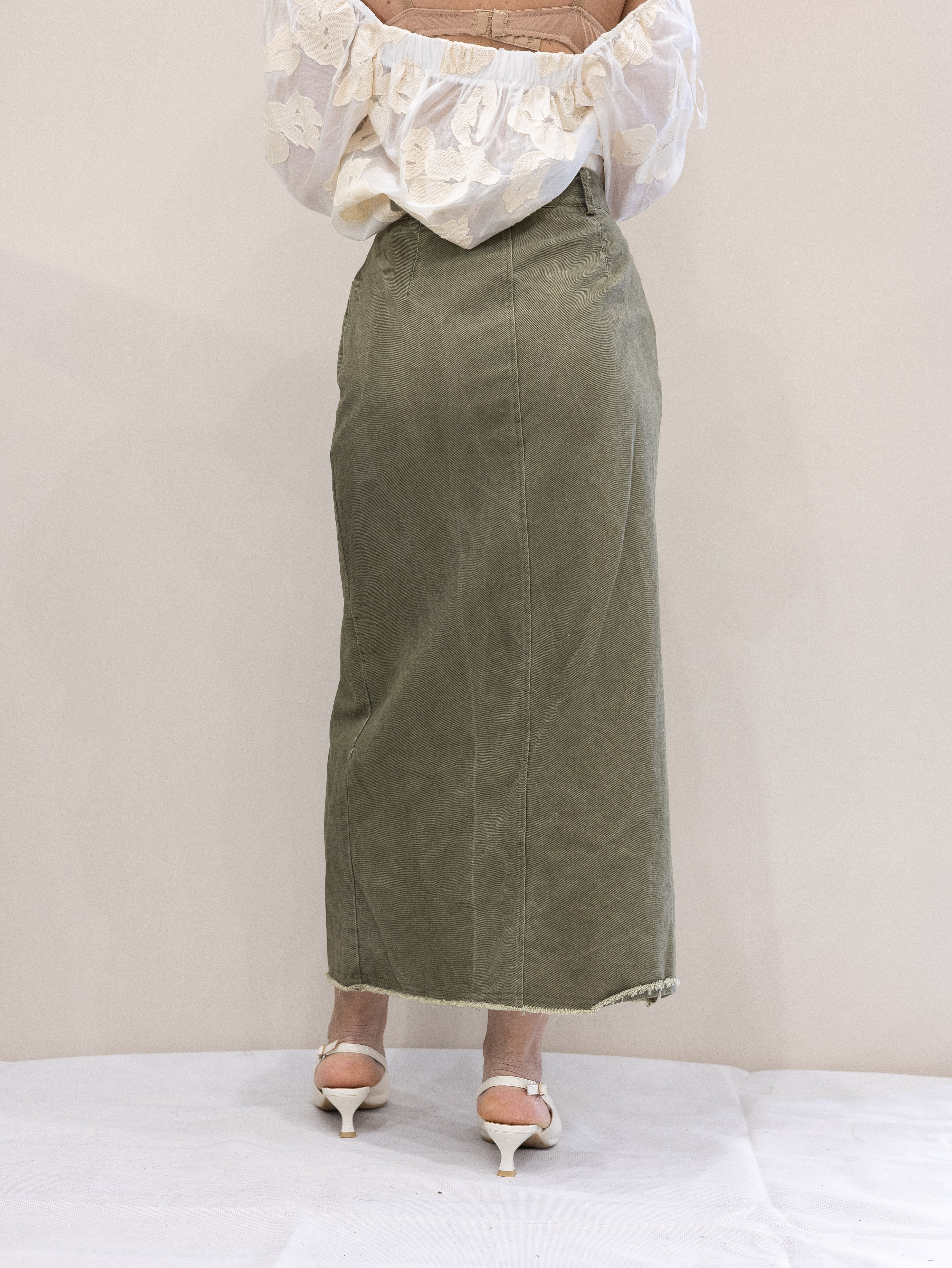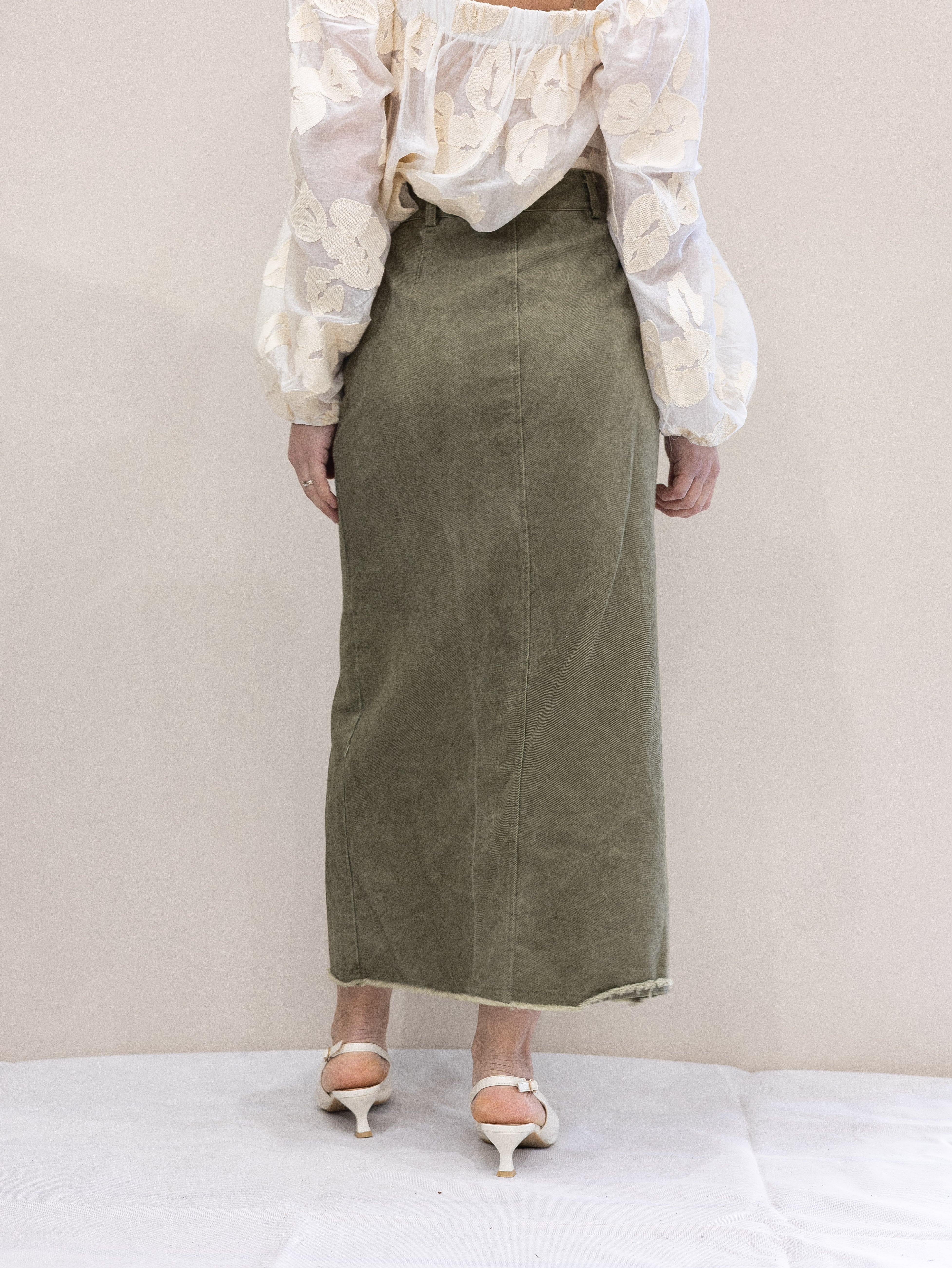 Gonna Midi Denim Verde Militare – Vita Alta con Spacco