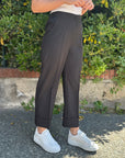 Scopri il perfetto equilibrio tra comfort e raffinatezza con questo elegante pantalone tinta unita.