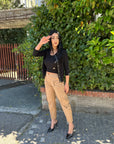 Il pantalone Salvador è un capo dallo stile pratico e contemporaneo, pensato per chi cerca comfort e versatilità. Realizzato con una vita alta elasticizzata, assicura una vestibilità comoda e adattabile. Le tasche francesi sul davanti aggiungono un tocco classico ed elegante, mentre i tasconi donano un look utility moderno e funzionale. Ideale per outfit casual ma curati, si abbina perfettamente a sneakers, sandali o scarpe flat, garantendo praticità e stile per ogni occasione quotidiana.